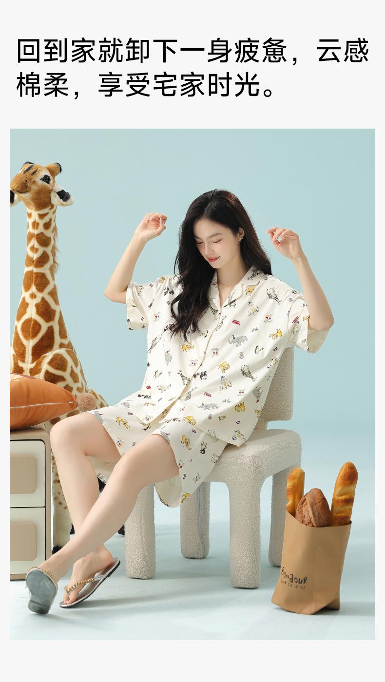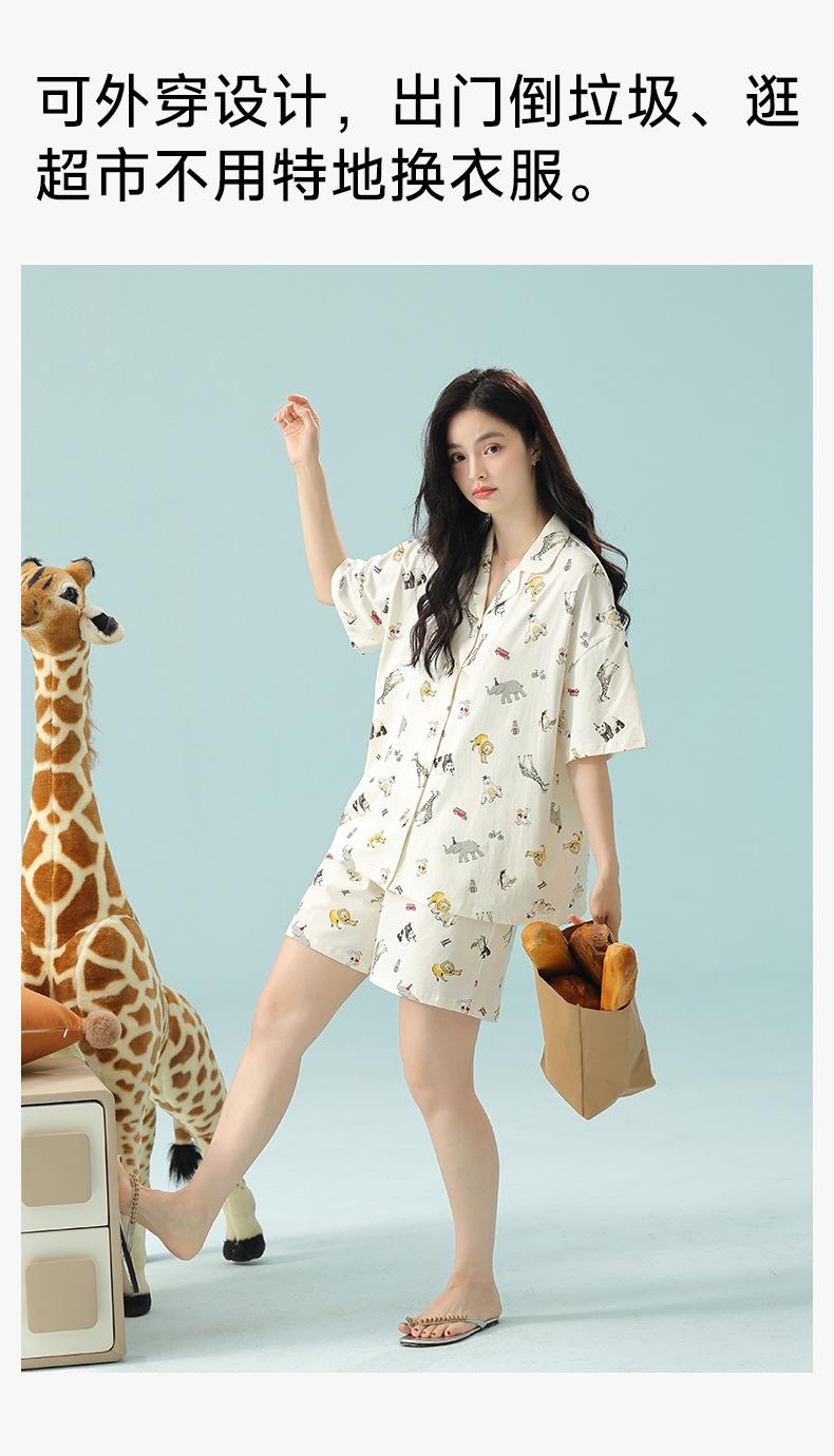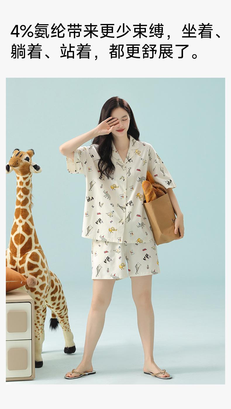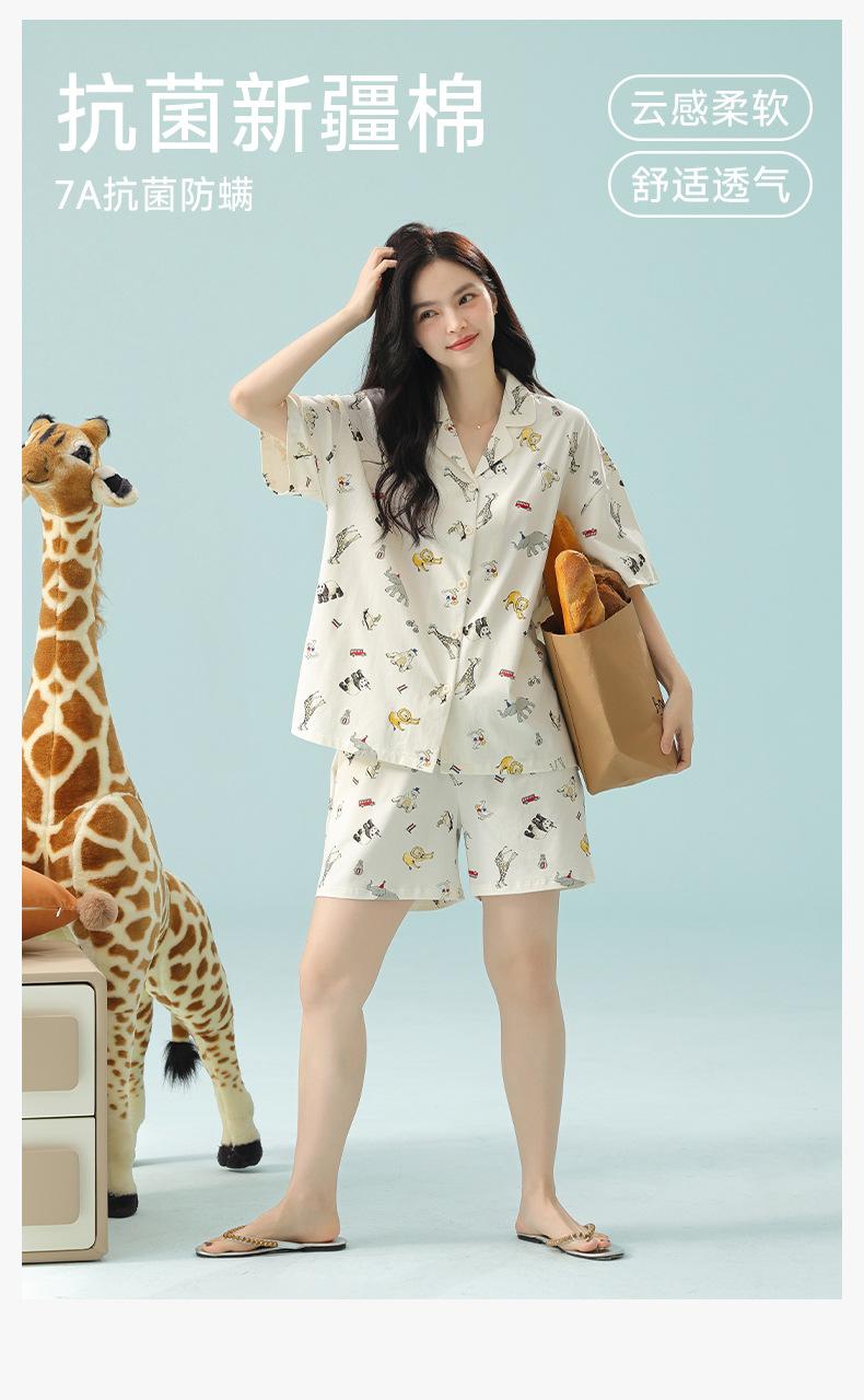 [Algodón Antibacteriano] Pijama de Algodón Puro para Primavera y Verano, Camisón para Mujer, Dibujo Animado de Animales, Lindo Ropa de Casa Fina de Manga Corta