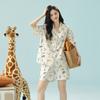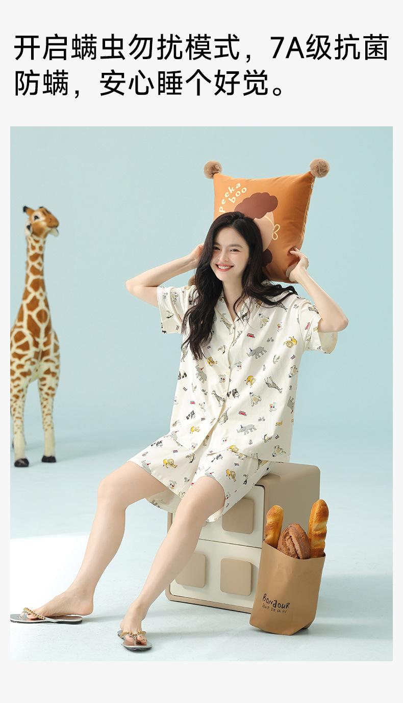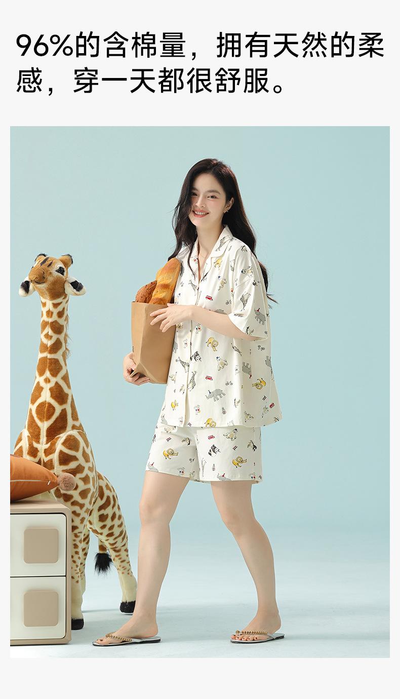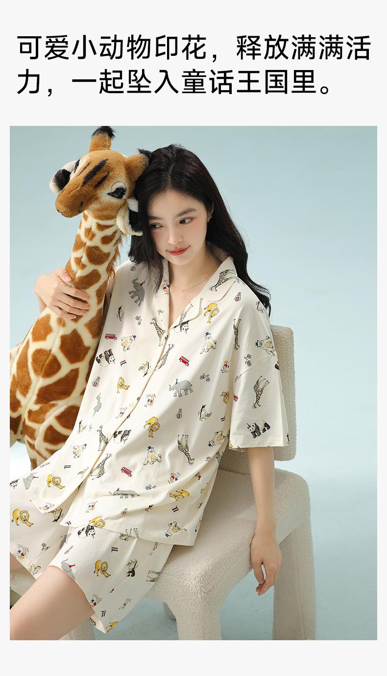 [Algodón Antibacteriano] Pijama de Algodón Puro para Primavera y Verano, Camisón para Mujer, Dibujo Animado de Animales, Lindo Ropa de Casa Fina de Manga Corta