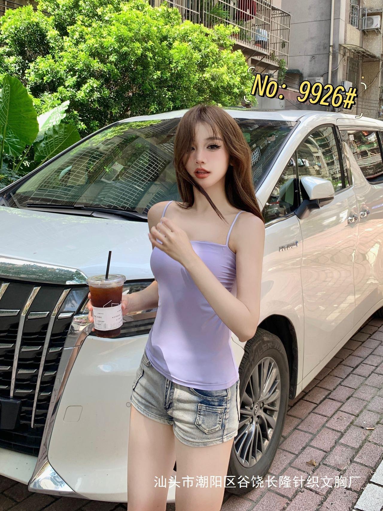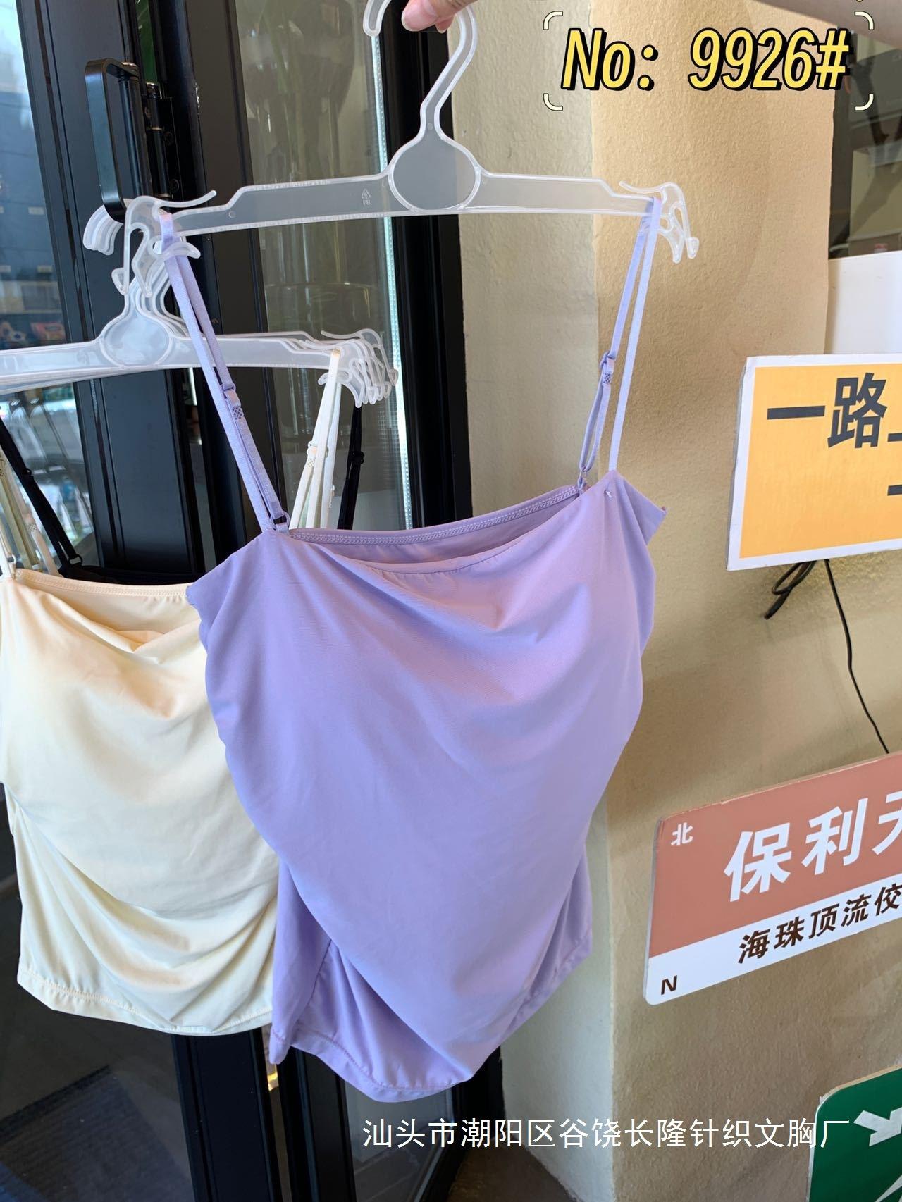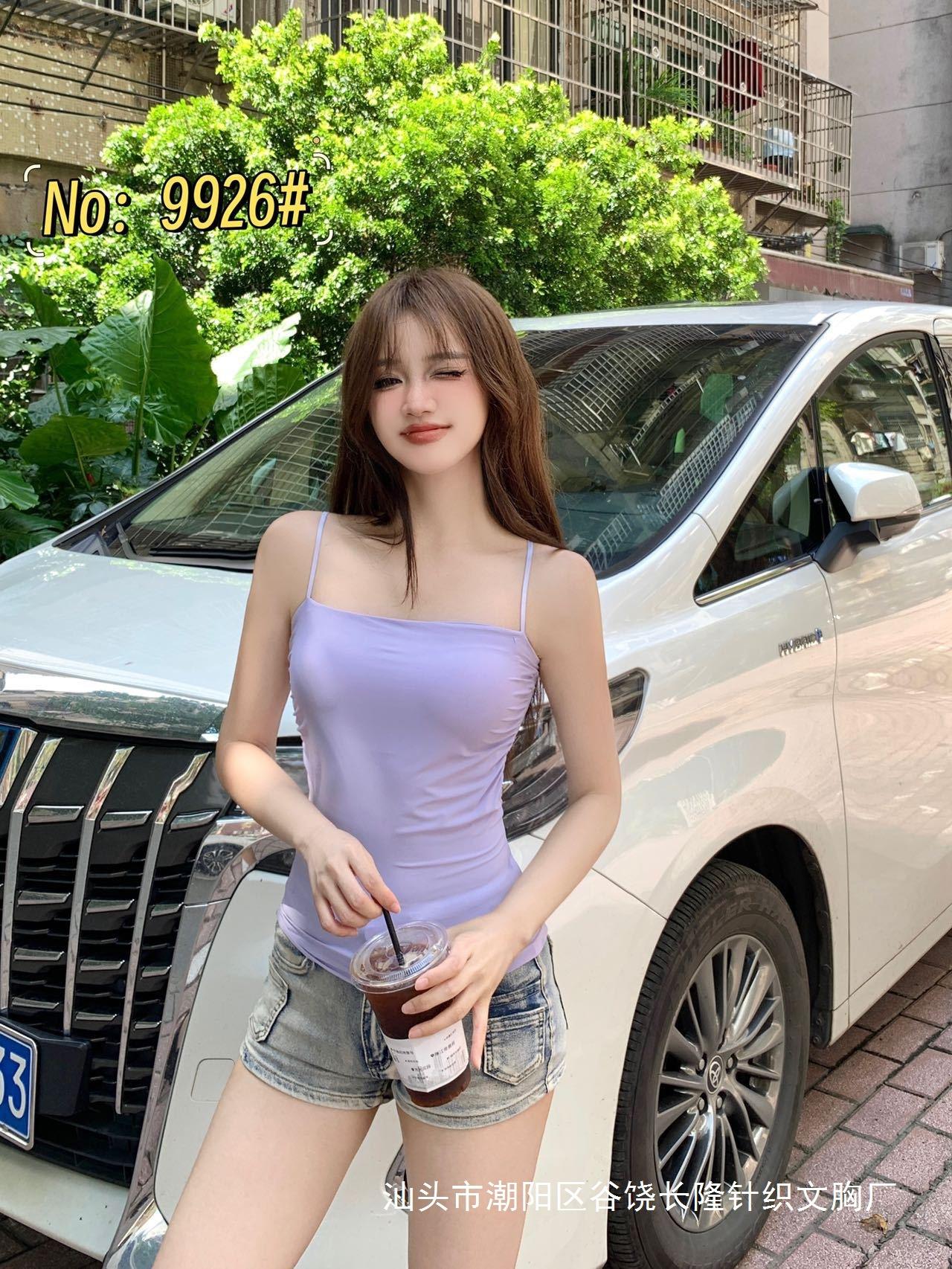Primavera y Verano Estilo Chica Caliente Camisola de Seda Helada Top Tubo Plisado Largo Ajustado Sexy Hermoso Tirantes Top con Almohadilla