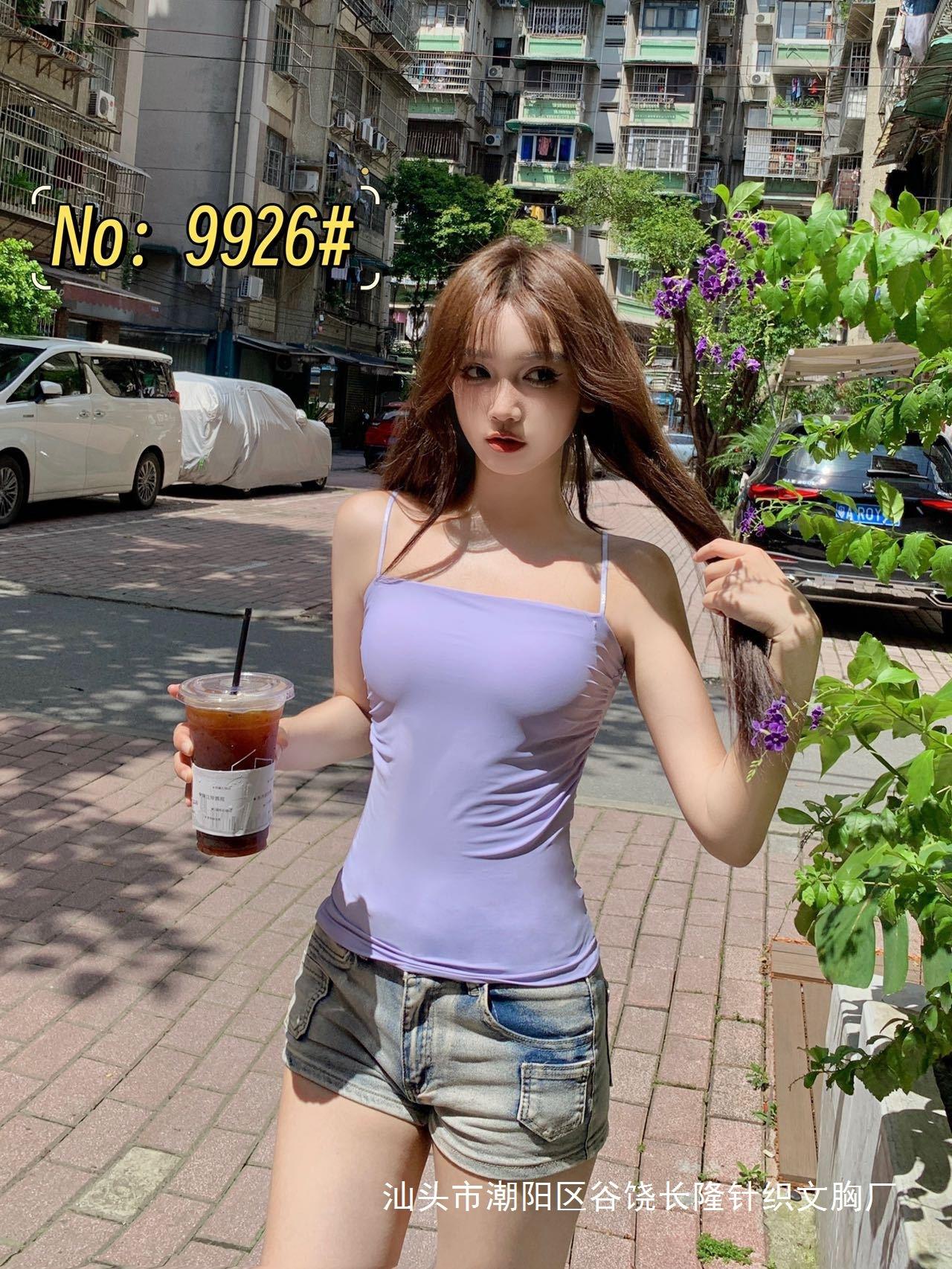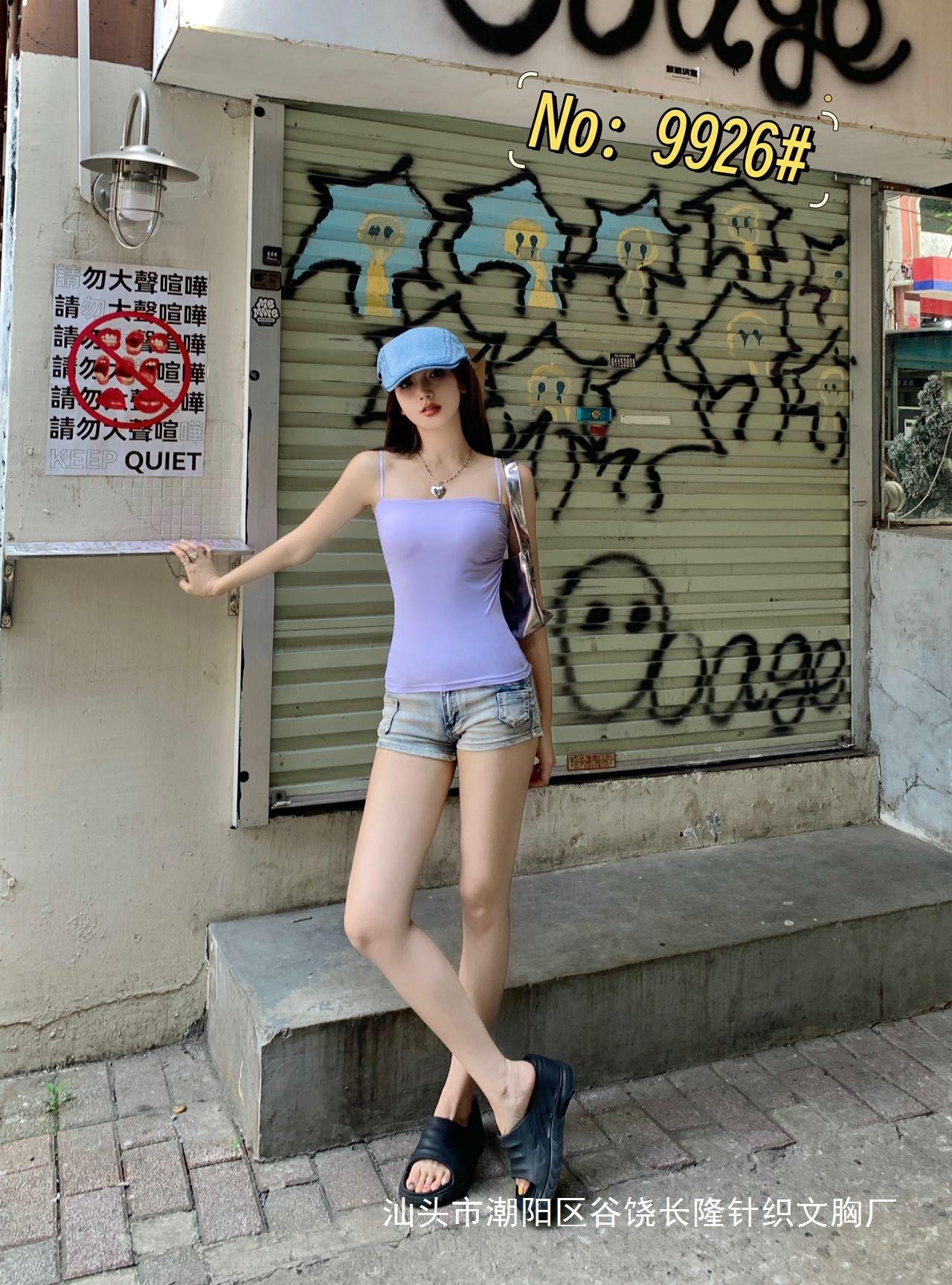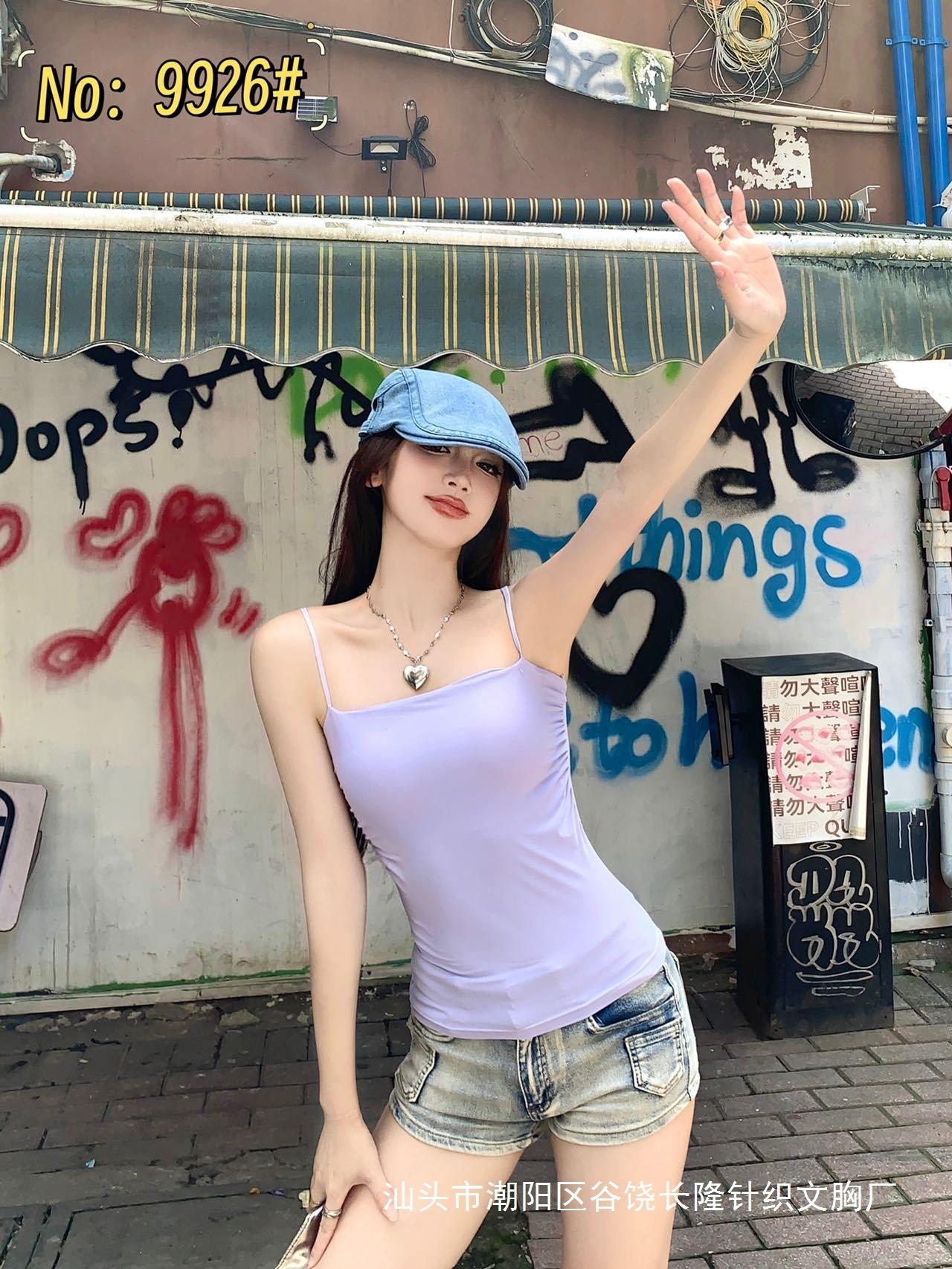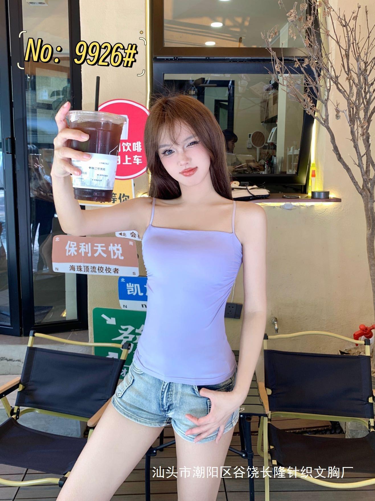 Primavera y Verano Estilo Chica Caliente Camisola de Seda Helada Top Tubo Plisado Largo Ajustado Sexy Hermoso Tirantes Top con Almohadilla