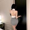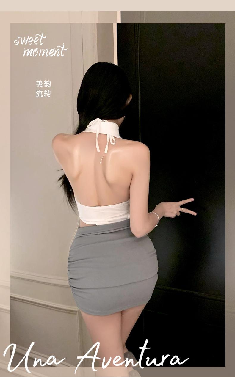 Vestido Sexy Puro Lujuria Escote en V Bajo Encaje Halterneck Sexy Recorte en la Cintura Plisado Ajustado Falda de Cadera