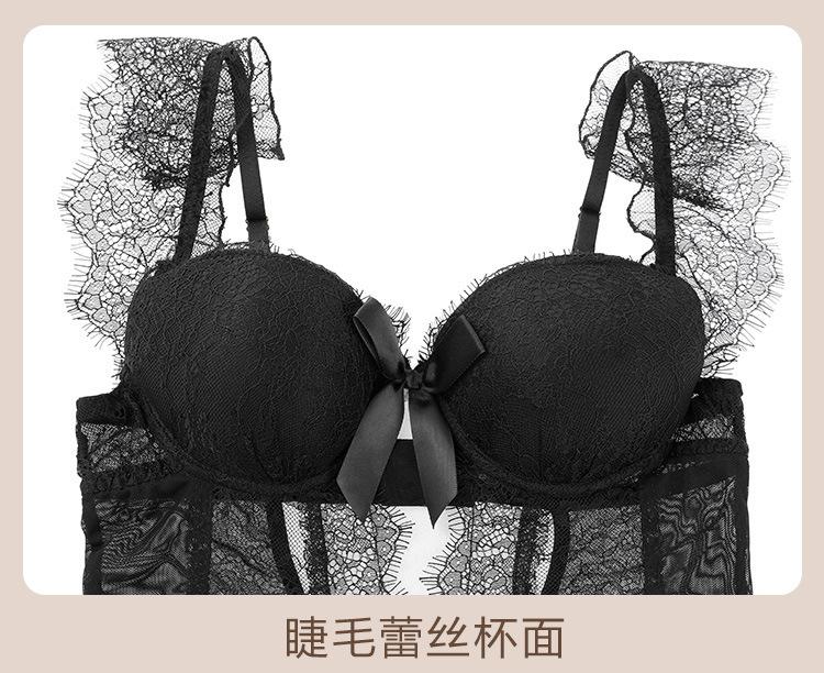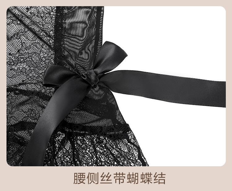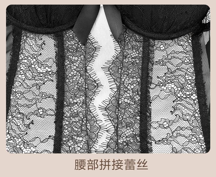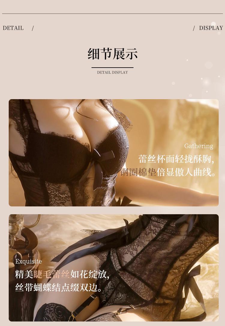 ◆M◆Negro【Chaleco de Algodón con Aros + Liguero*2+Pantaleta】+Guantes de Encaje Negro NY1GQT001710 (Precio Limitado: 78