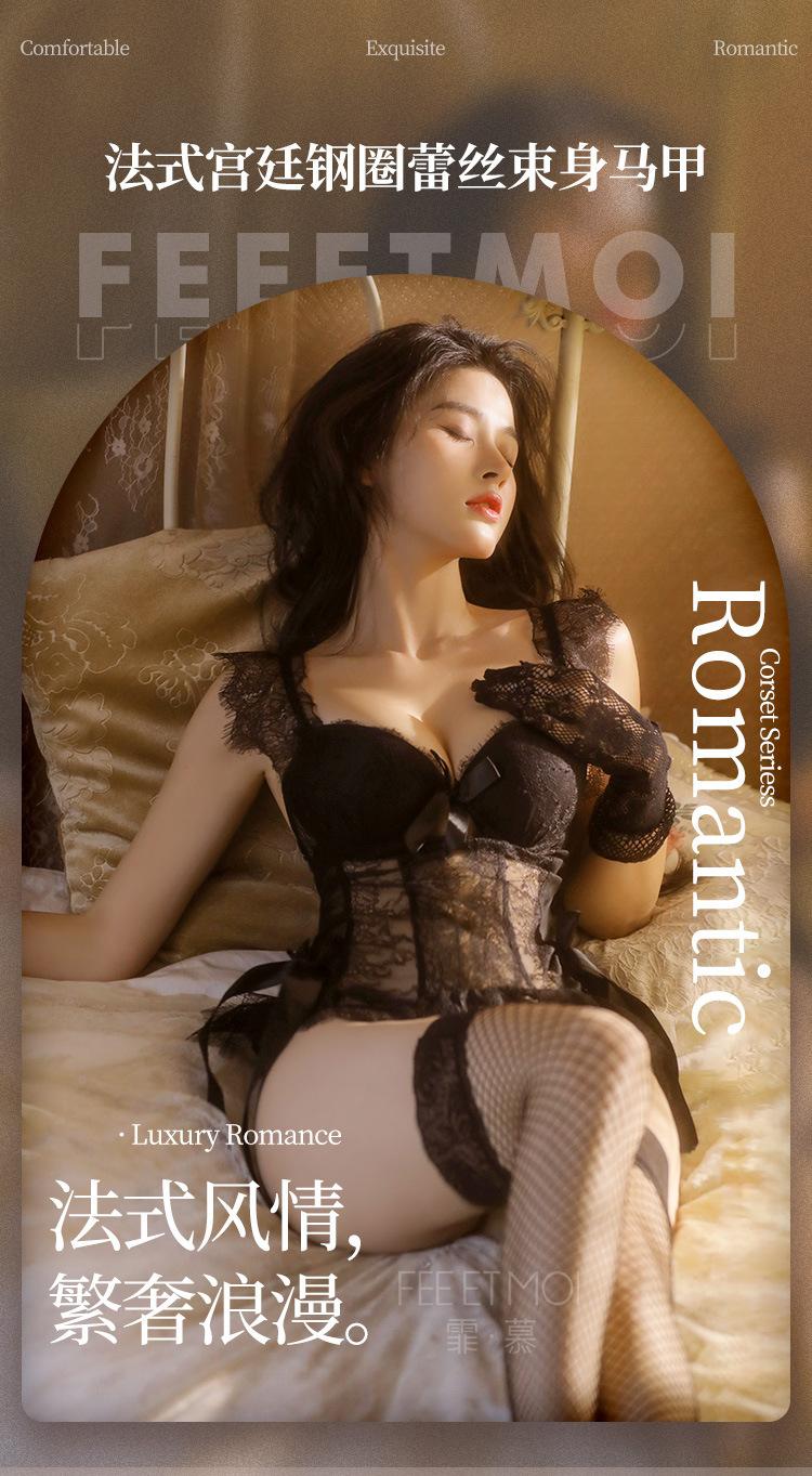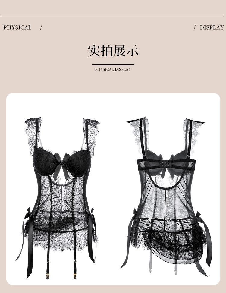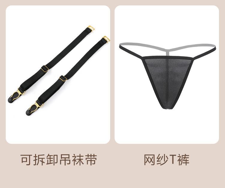 ◆M◆Negro【Chaleco de Algodón con Aros + Liguero*2+Pantaleta】+Medias de Red Negras NY1GQT001711 (Precio Limitado: 77.9