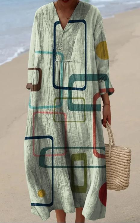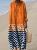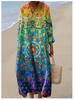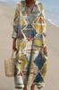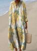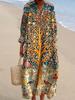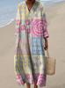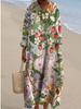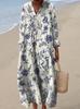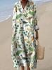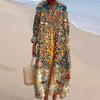 Estación Independiente Transfronteriza Amazon Vestido Camisero de Manga Larga para Mujer Casual Floral Manga Estampada en 3D Falda Larga E023