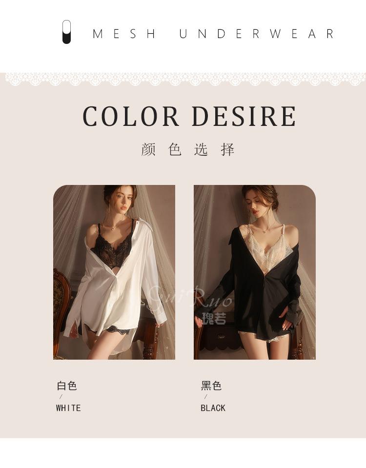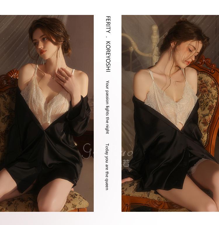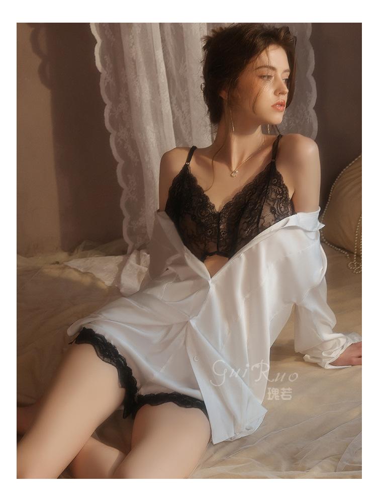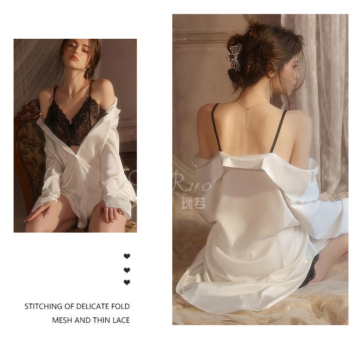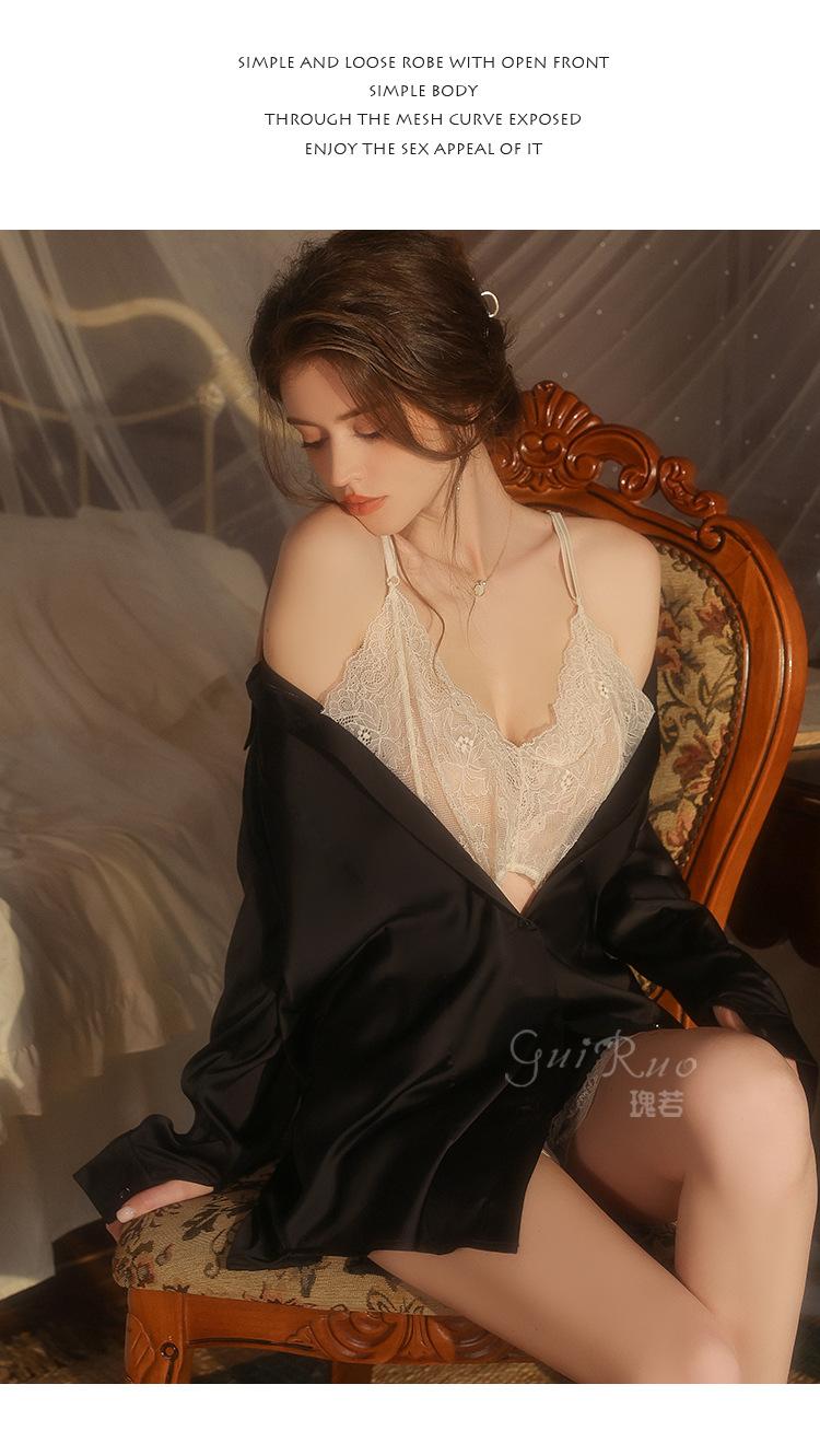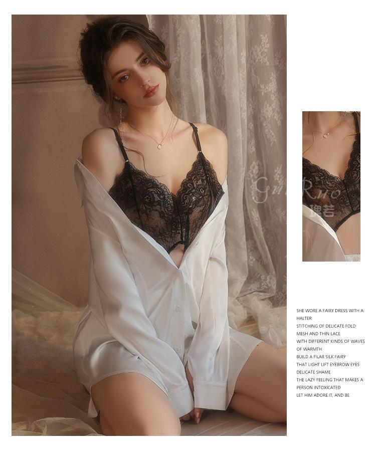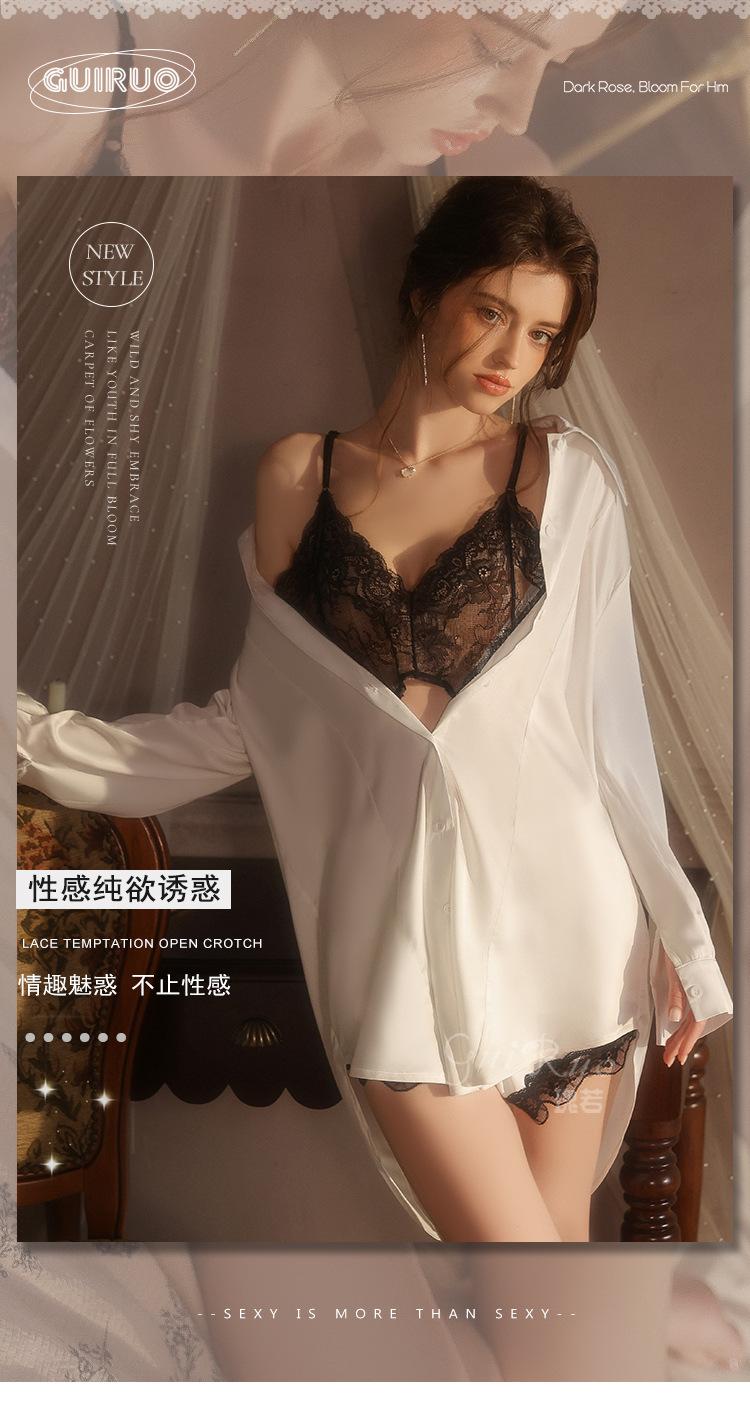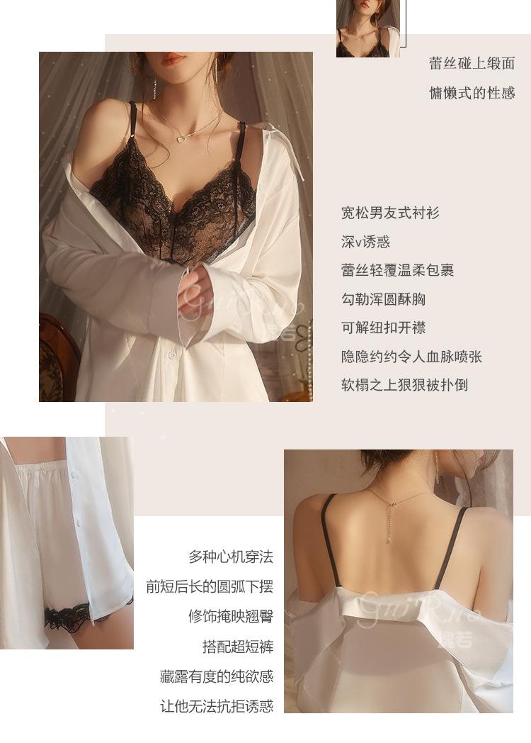 Íntimos Marca Guiruo Talla Grande Lujo Accesible Seda de Hielo Pasión Tentación Camisa Holgada Estilo Boyfriend Conjunto Ropa para Casa 5454