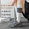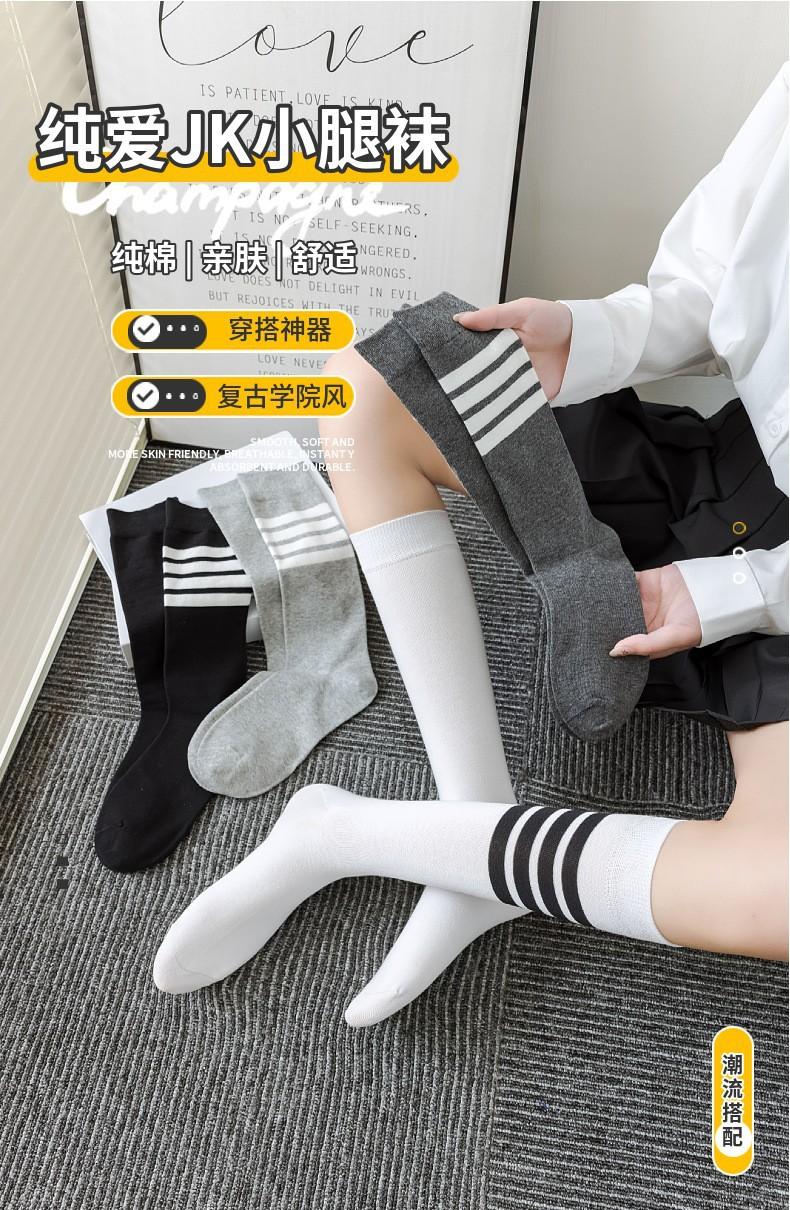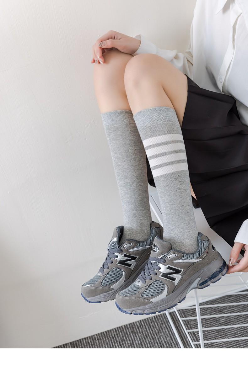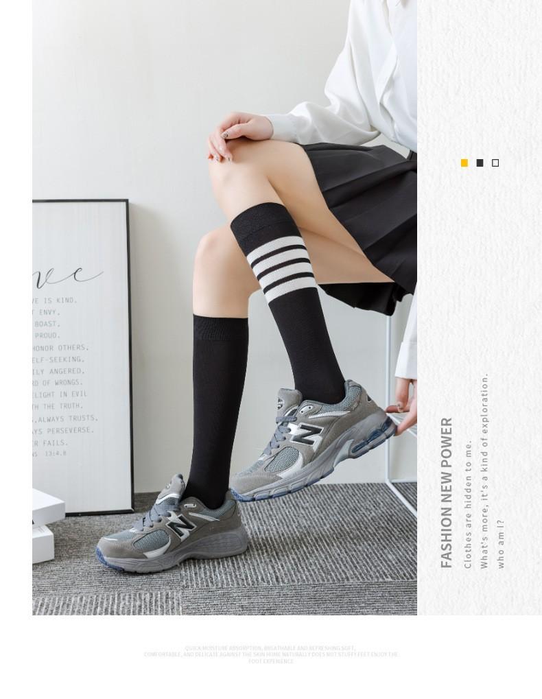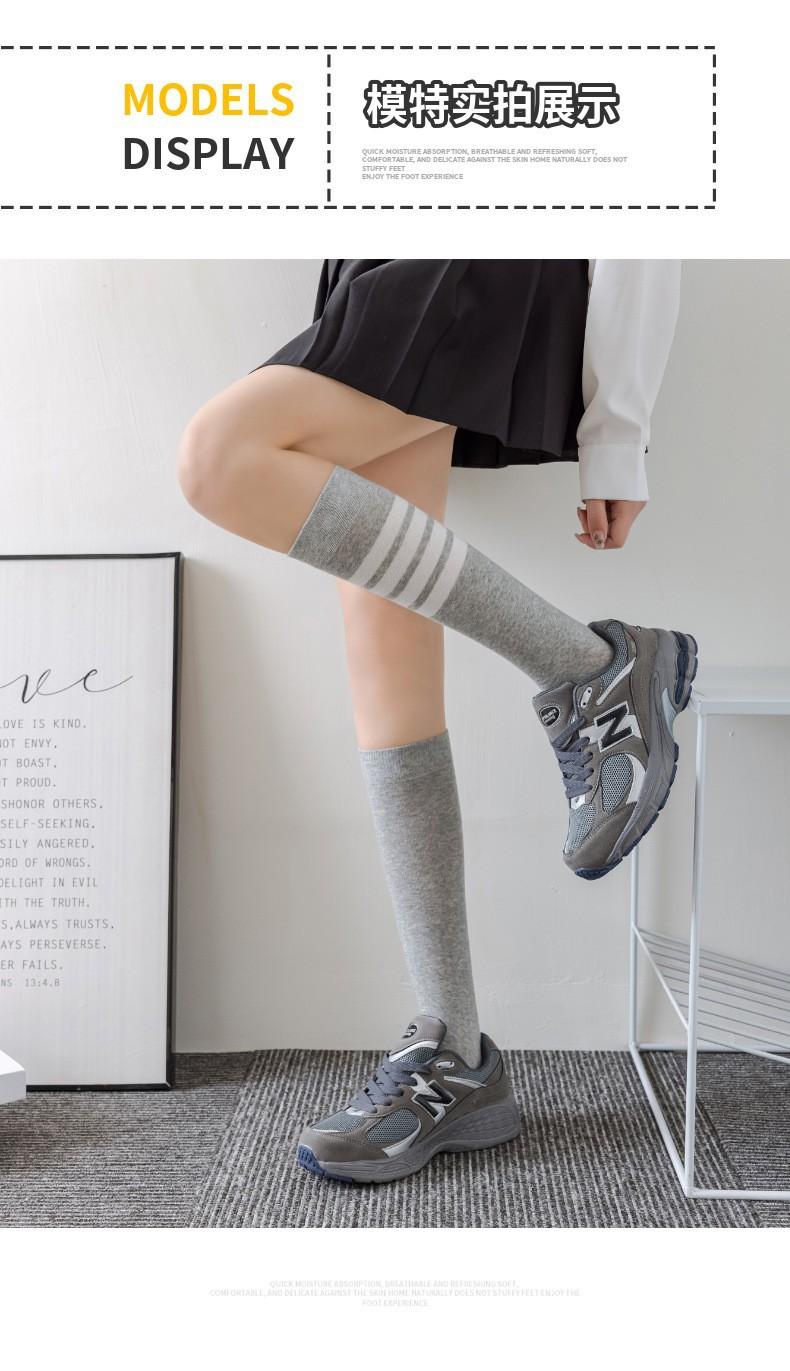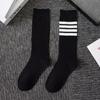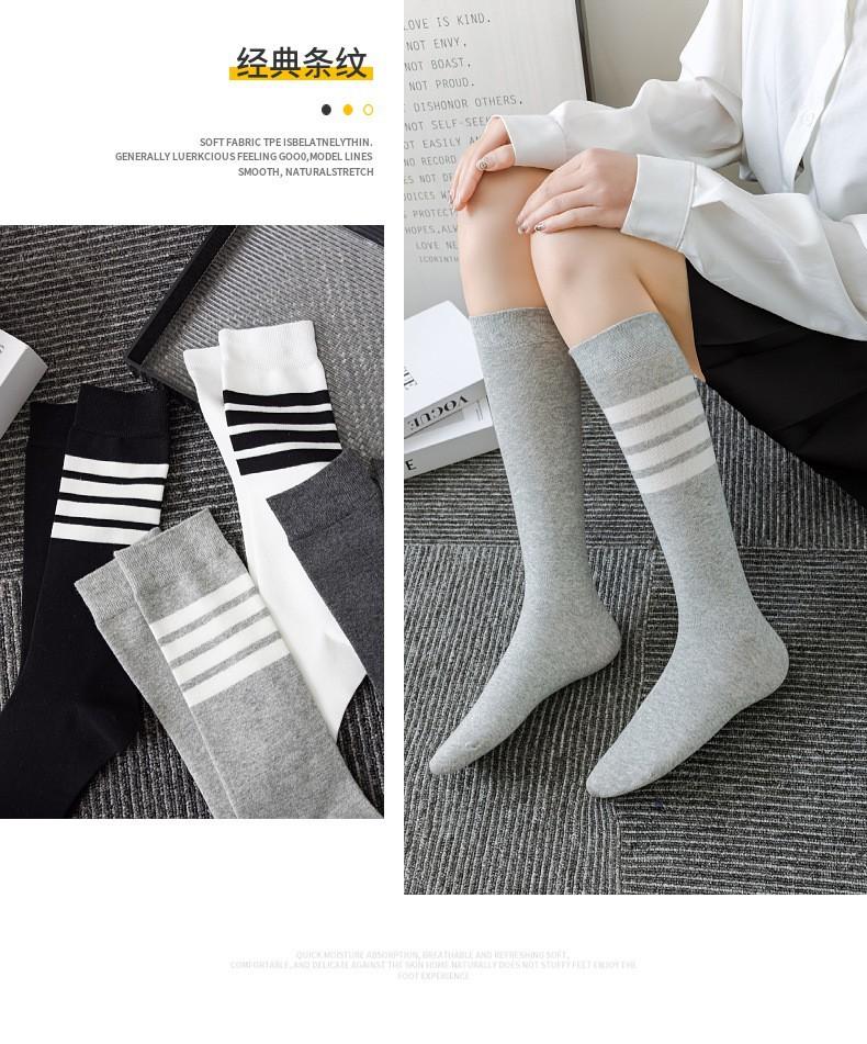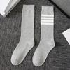 Calcetines de Compresión para Pantorrilla Tb para Mujer Negro y Blanco Gris Calcetines hasta la Rodilla Algodón Estilo Preppy Jk Rayas de Cuatro Barras Calcetines Deportivos Largos