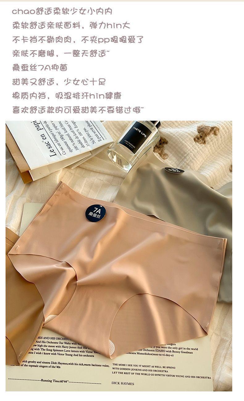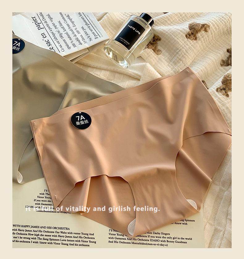 Nuevo Estilo Sin Costuras Seda de Hielo Entrepierna de Algodón Puro 7A Antibacteriano Ropa Interior Invisible Tipo Triángulo de Cintura Media para Mujer Joven