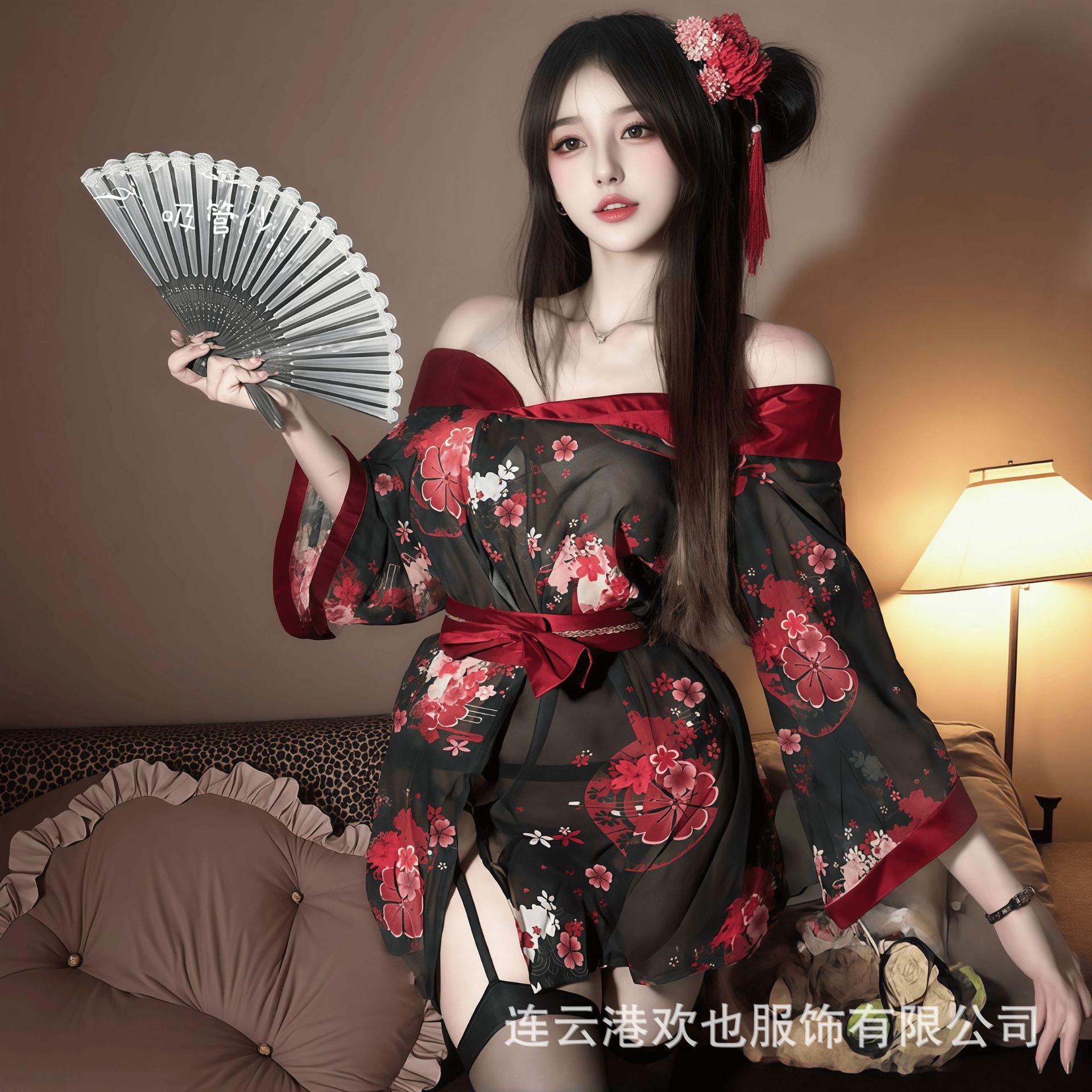Lencería Sexy Kimono Japonés con Hombros Descubiertos Cárdigan Transparente Cosplay 0328