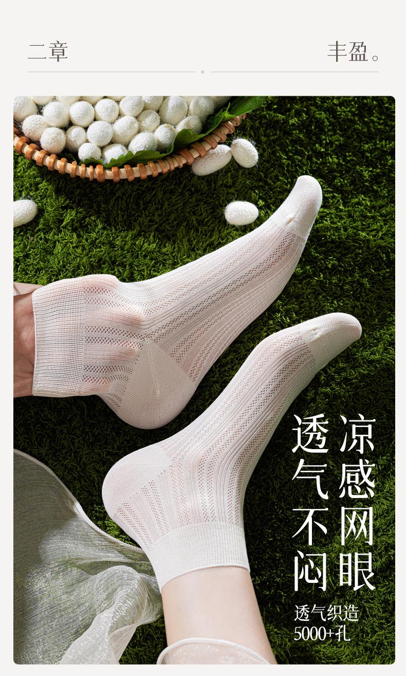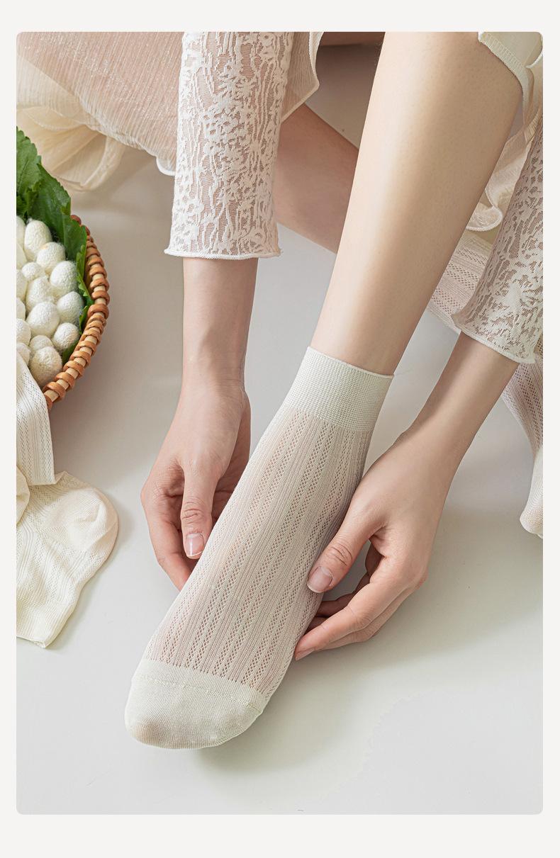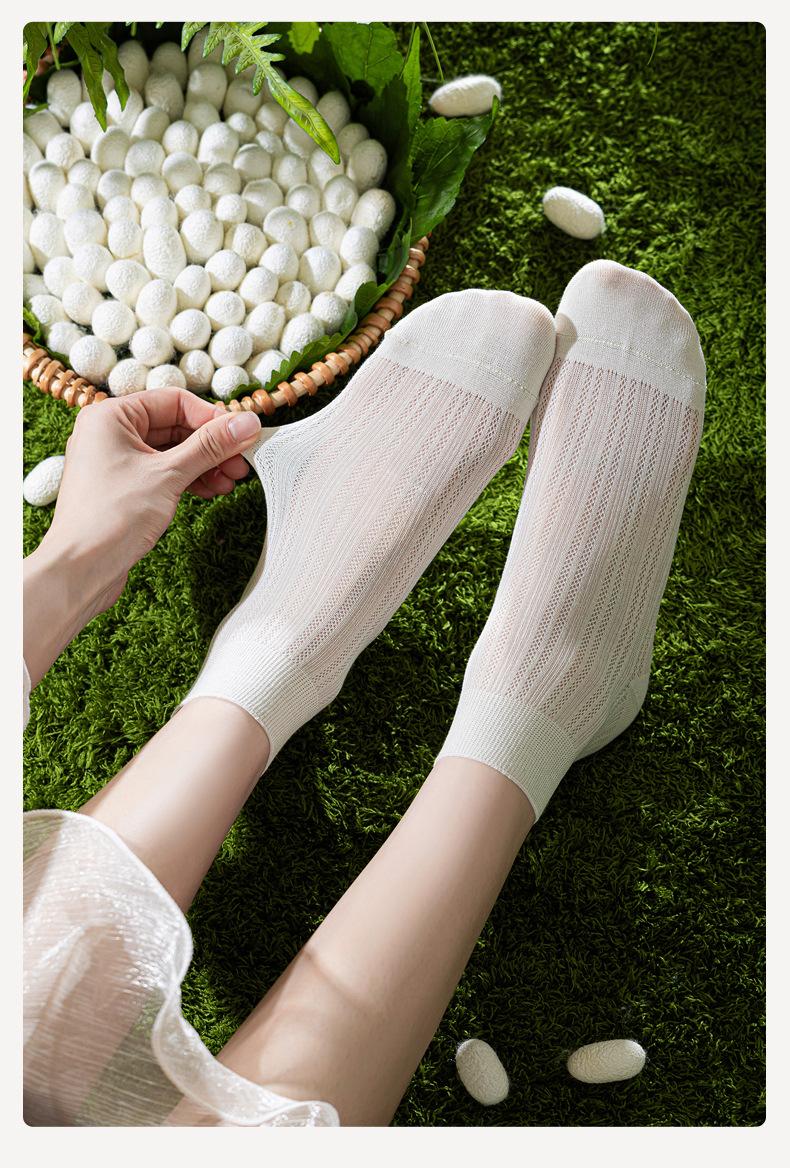 Calcetines finos antibacterianos de seda de morera para primavera y verano de Zhuji, simples, sin costuras, para niños, de malla transpirable, de color sólido, desodorantes
