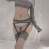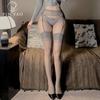 Medias hasta la rodilla sexy y seductoras de encaje con cordones a rayas transparentes con correas de contraste negras y rojas Medias Jk