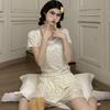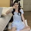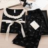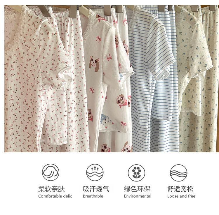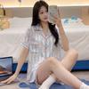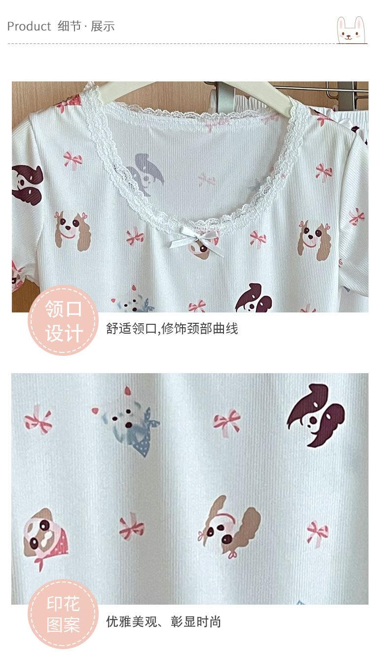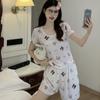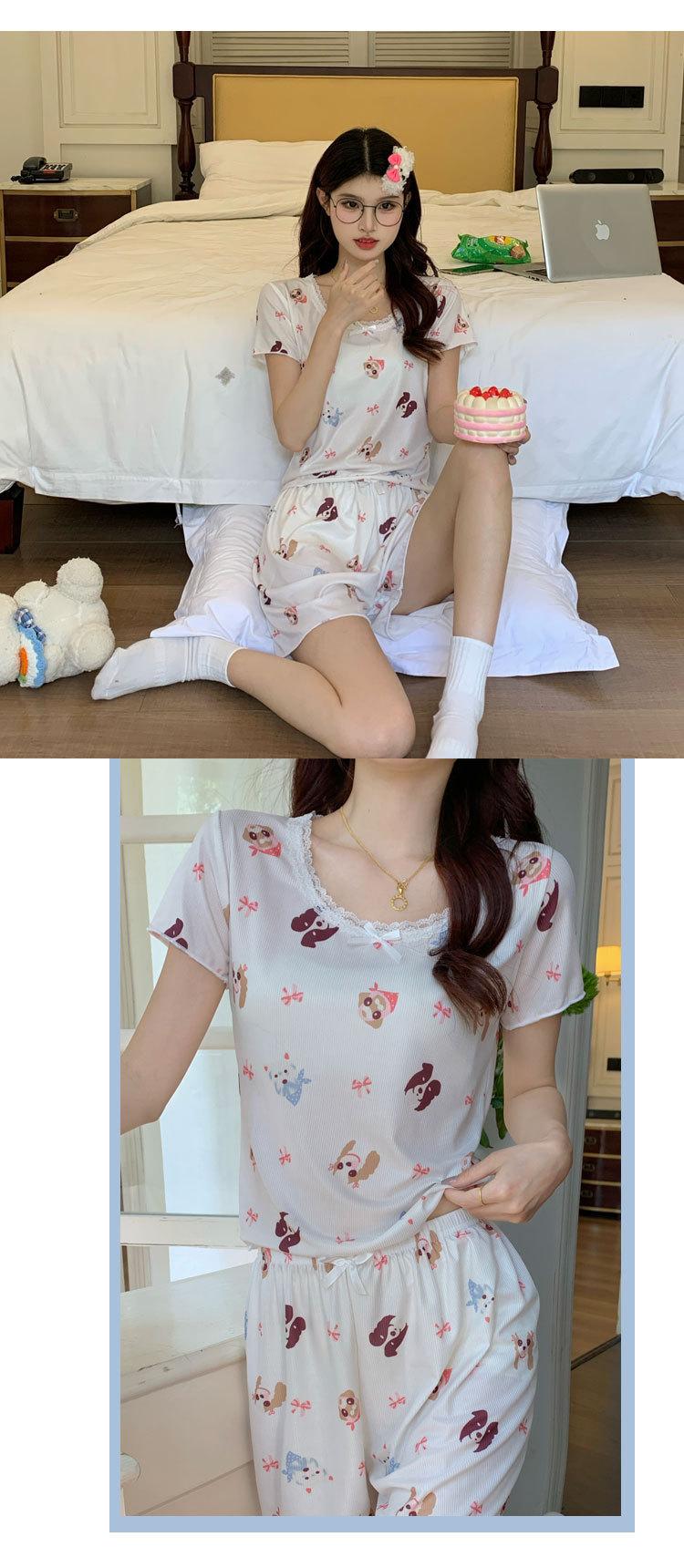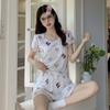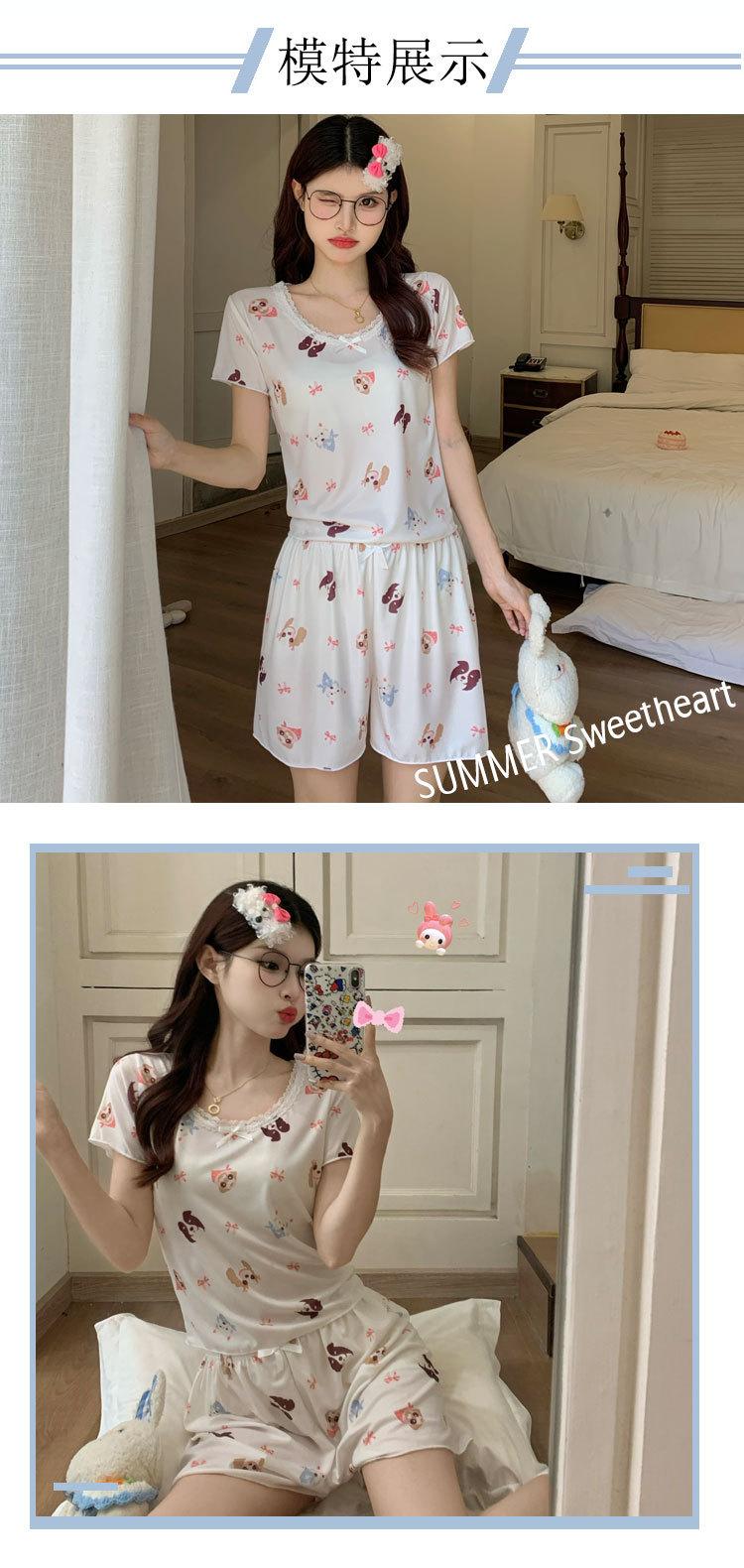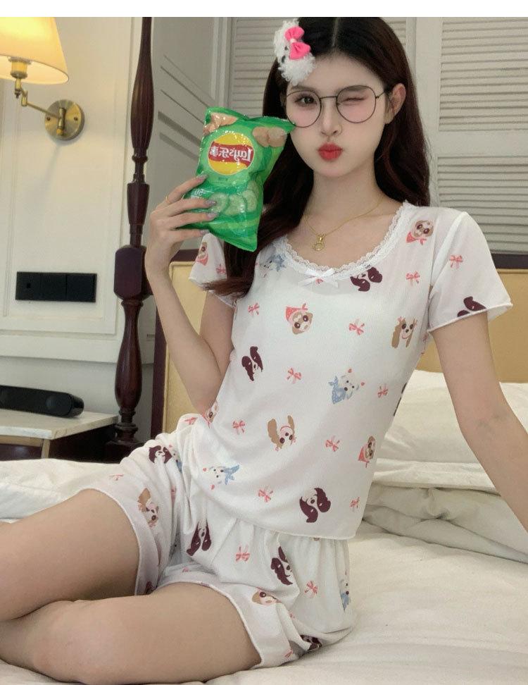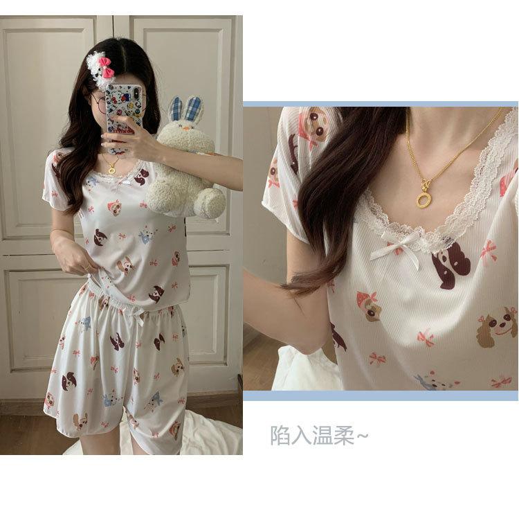 Pijama de Manga Corta para Mujer Verano Hilo de Seda de Hielo Estilo Coreano Encaje Shorts Ropa de Casa para Mujer de Dos Piezas