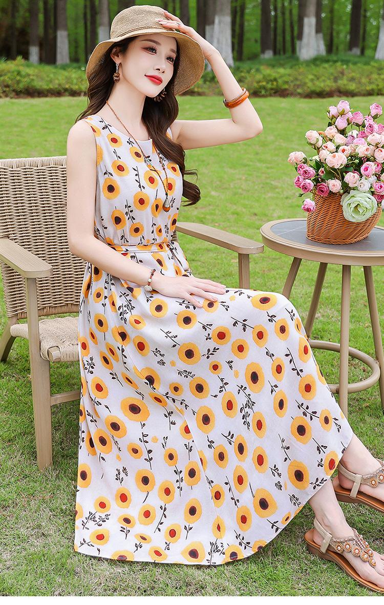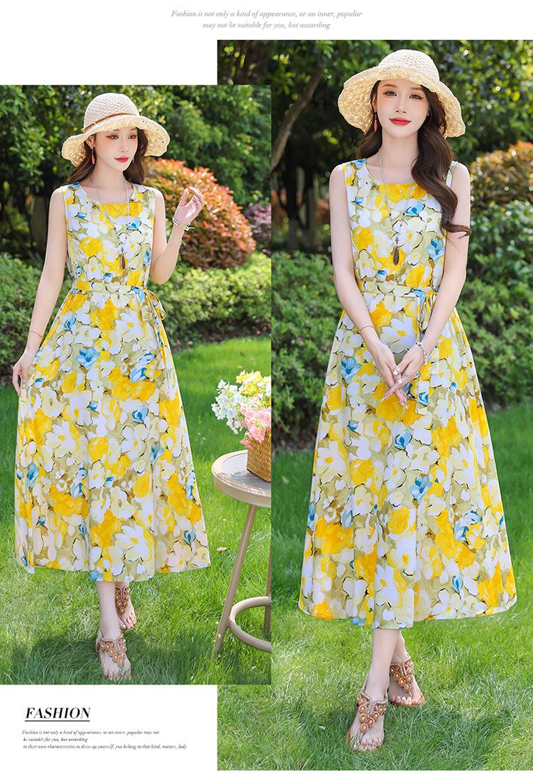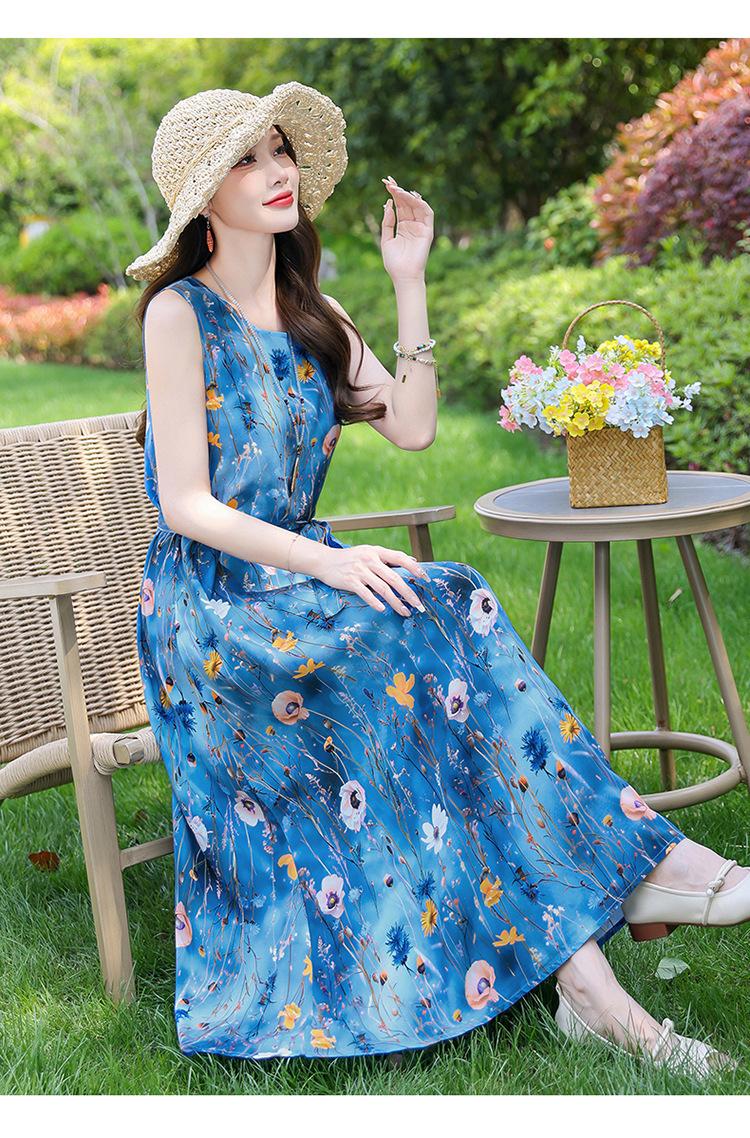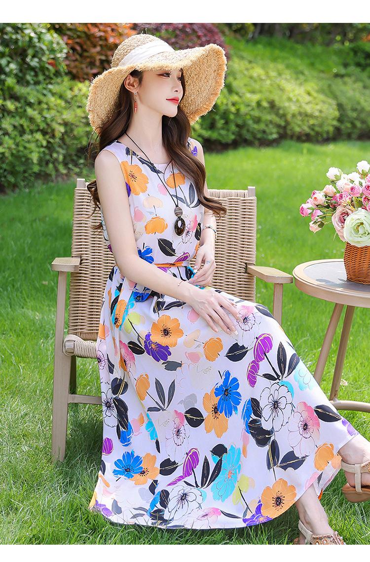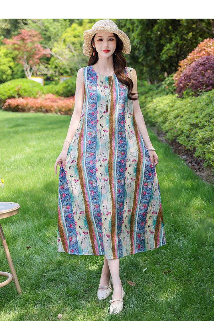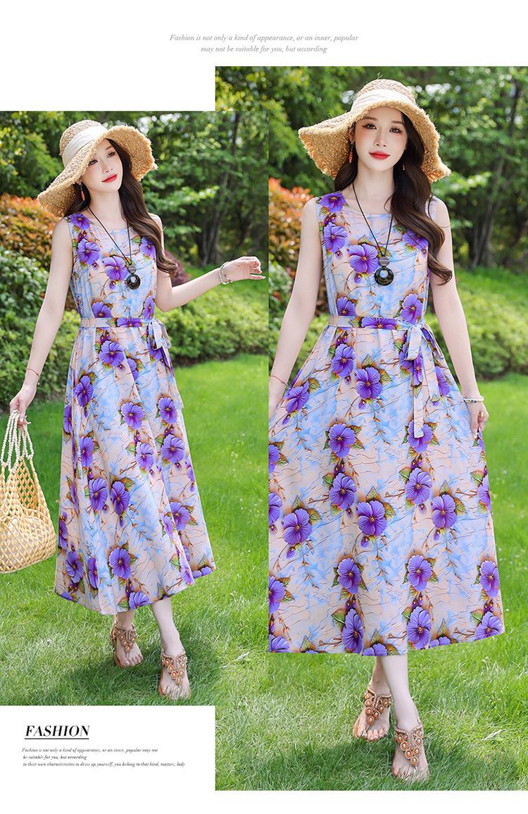 Nuevo Vestido sin Mangas de Algodón Seda Estilo Resort Costero Ceñido a la Cintura para Mujer Talla Extra Look Adelgazante Gordo mm Playa Tirantes Falda Larga