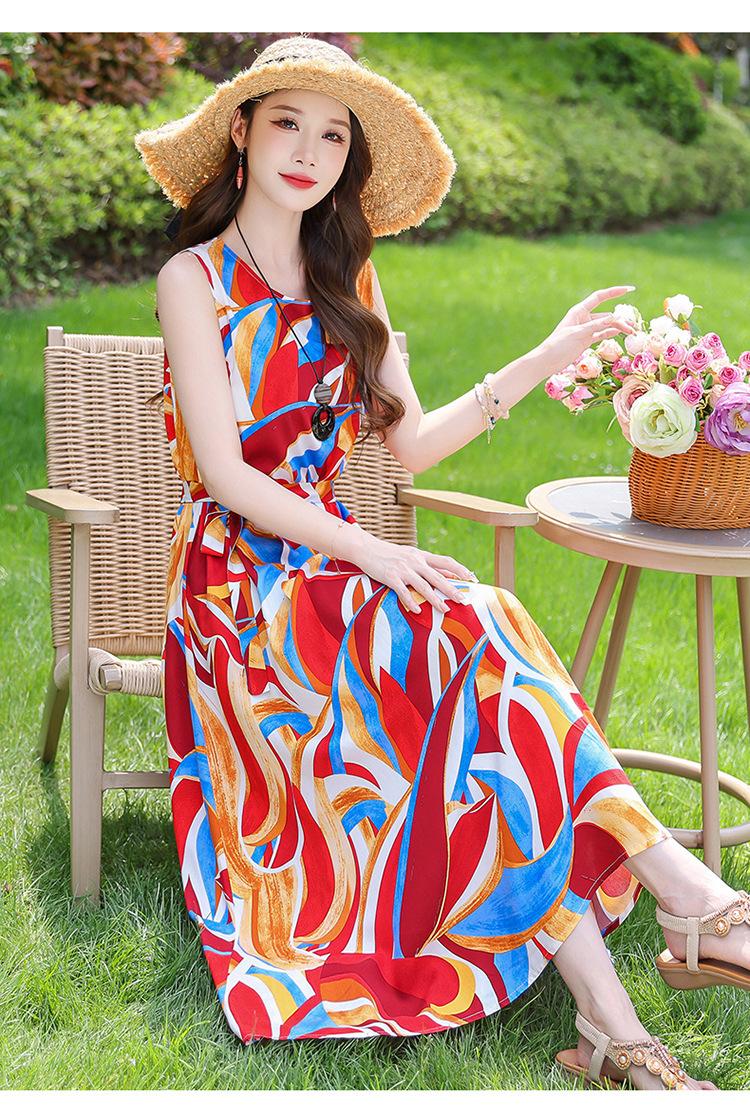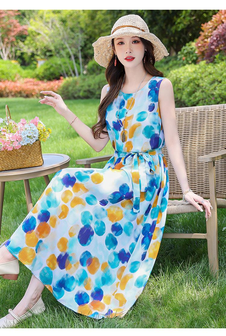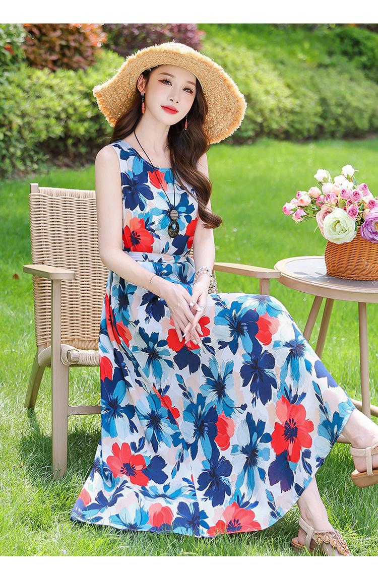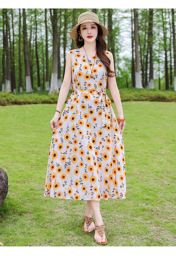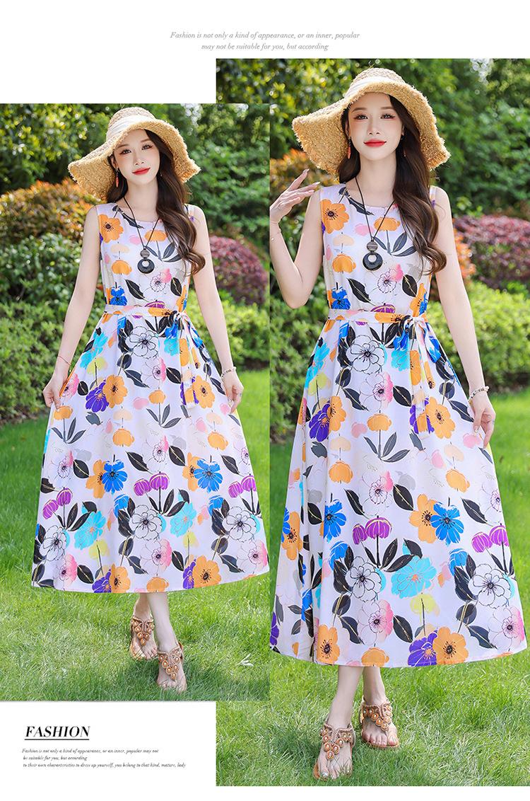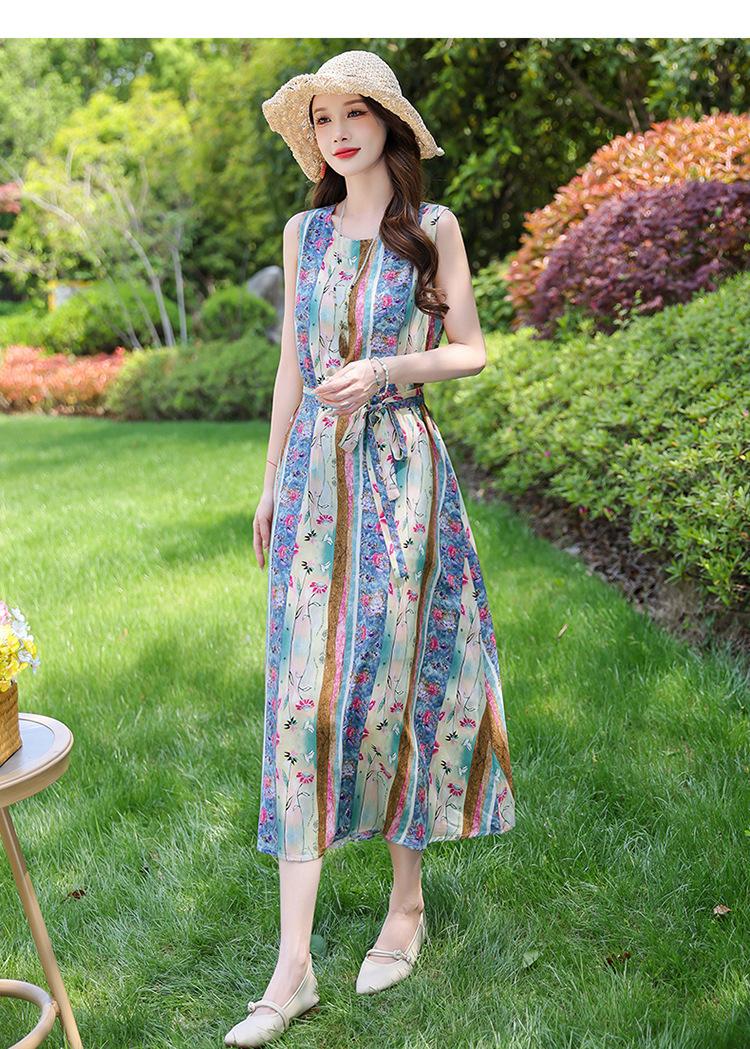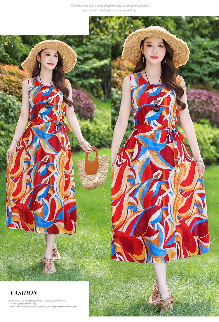 Nuevo Vestido sin Mangas de Algodón Seda Estilo Resort Costero Ceñido a la Cintura para Mujer Talla Extra Look Adelgazante Gordo mm Playa Tirantes Falda Larga