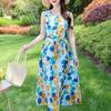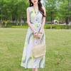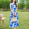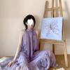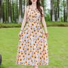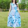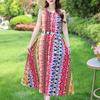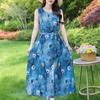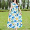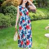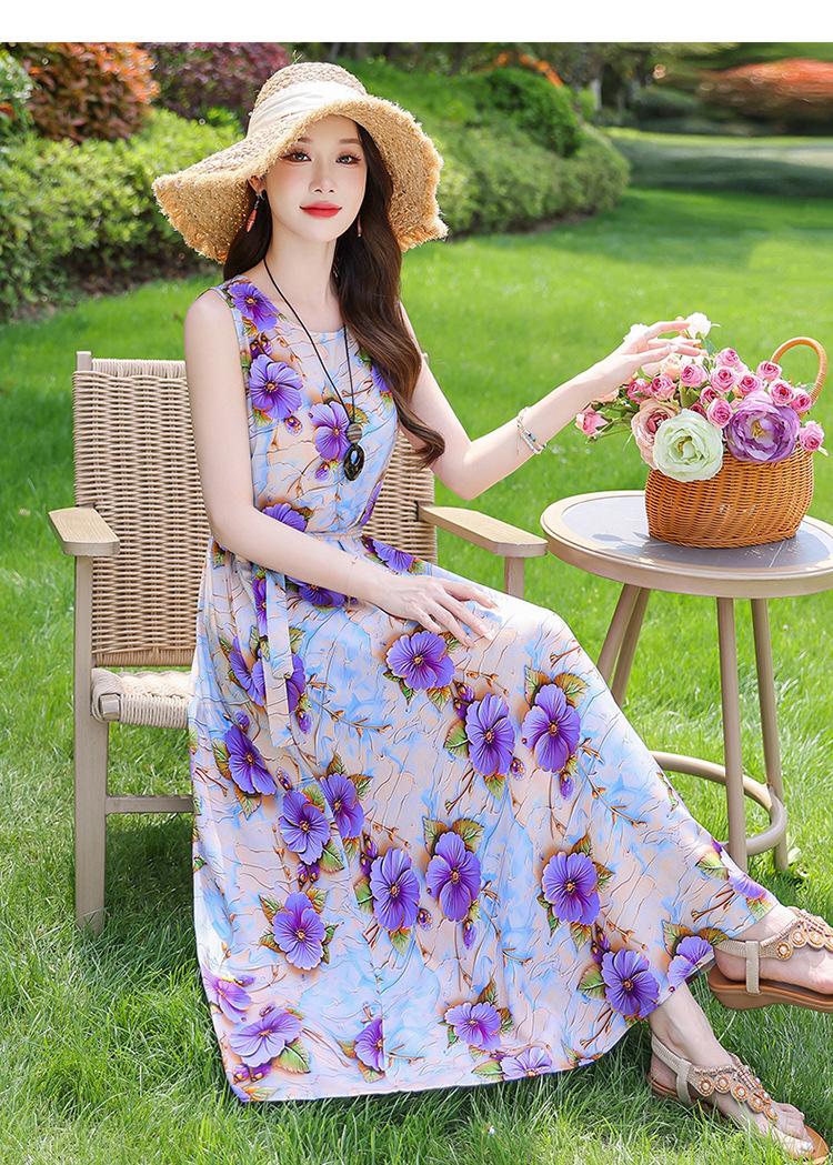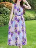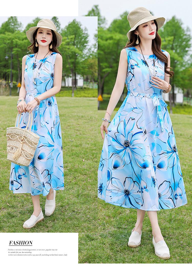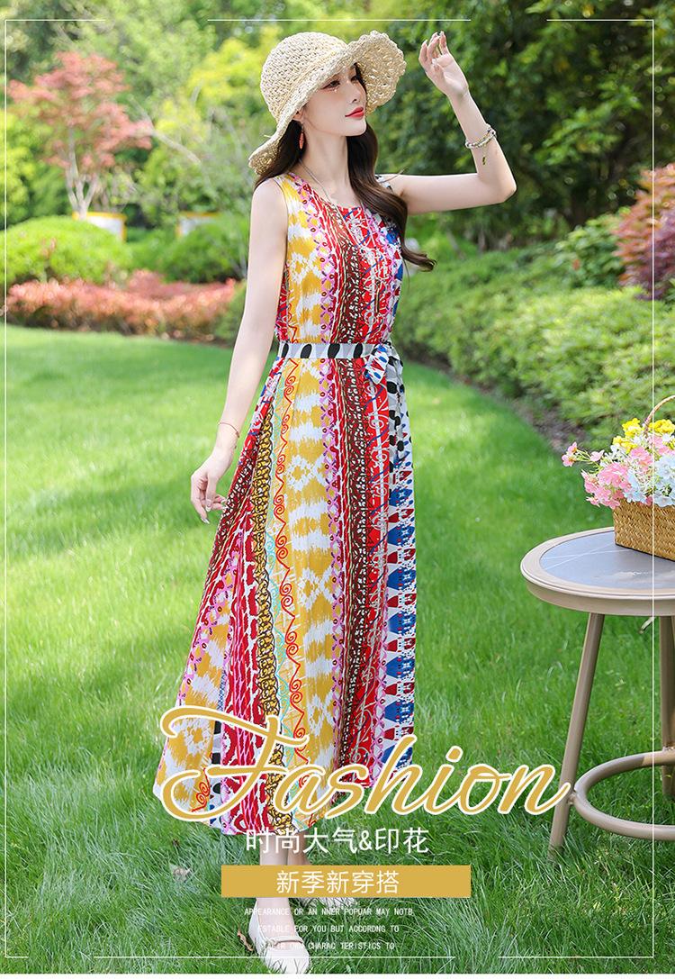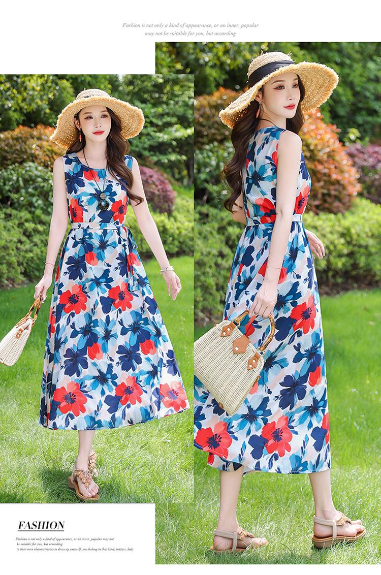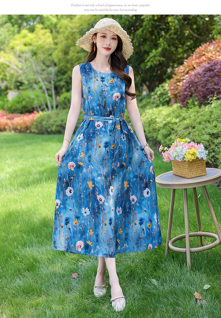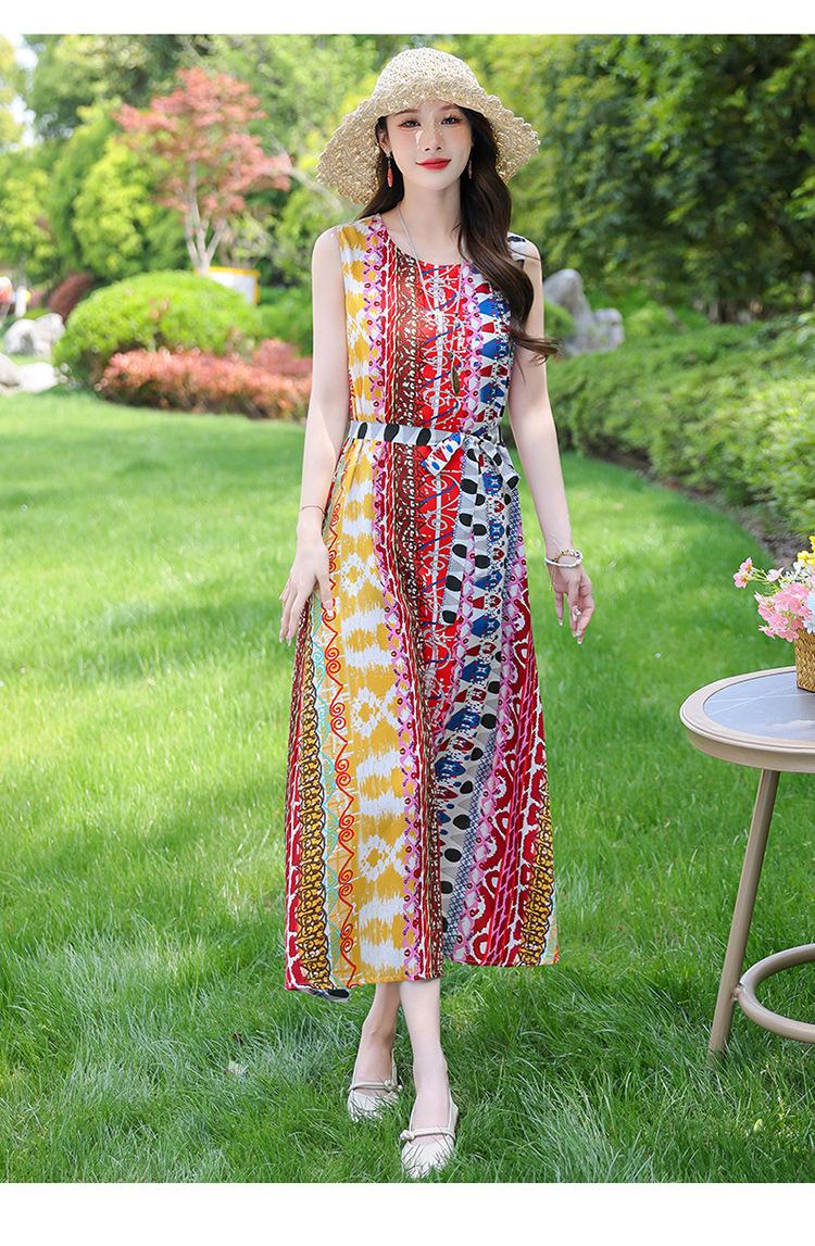 Nuevo Vestido sin Mangas de Algodón Seda Estilo Resort Costero Ceñido a la Cintura para Mujer Talla Extra Look Adelgazante Gordo mm Playa Tirantes Falda Larga