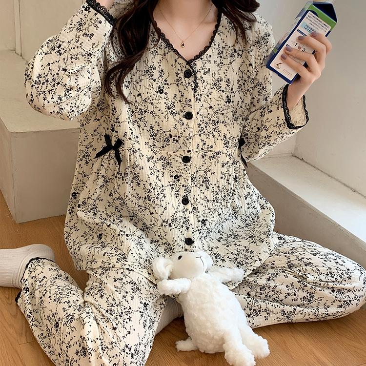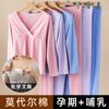 Ropa Postparto de Alta Gama, Pijama de Maternidad de Gasa de Algodón Fino para Primavera y Verano, Ropa para el Hogar de Lactancia Absorbente del Sudor para Mujeres Embarazadas