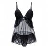 Camisón Sexy de Encaje de Mariposa Dulce de Talla Grande con Escote en V Profundo, Acolchado, con Abertura y Bata Camisola para Estar en Casa
