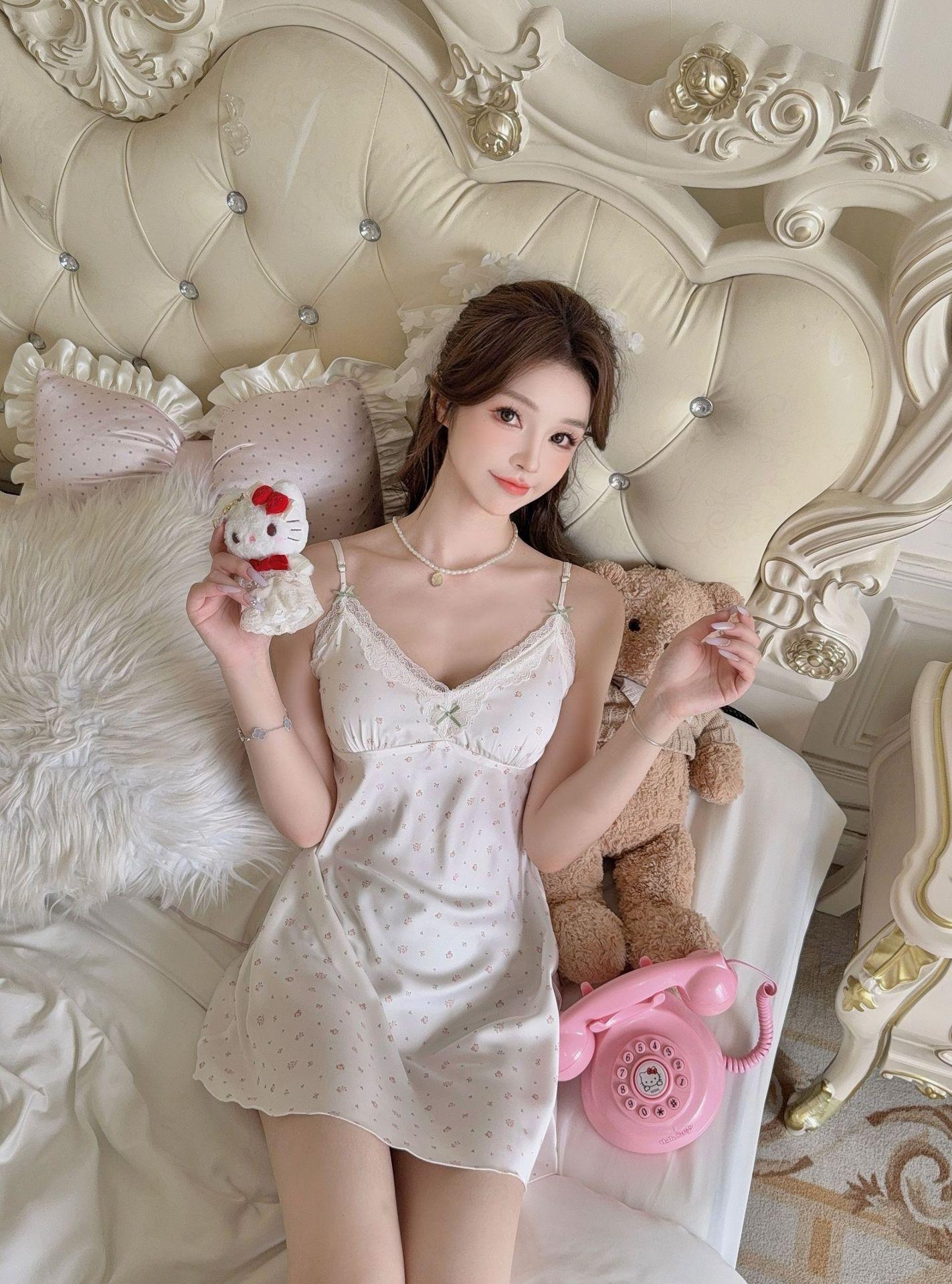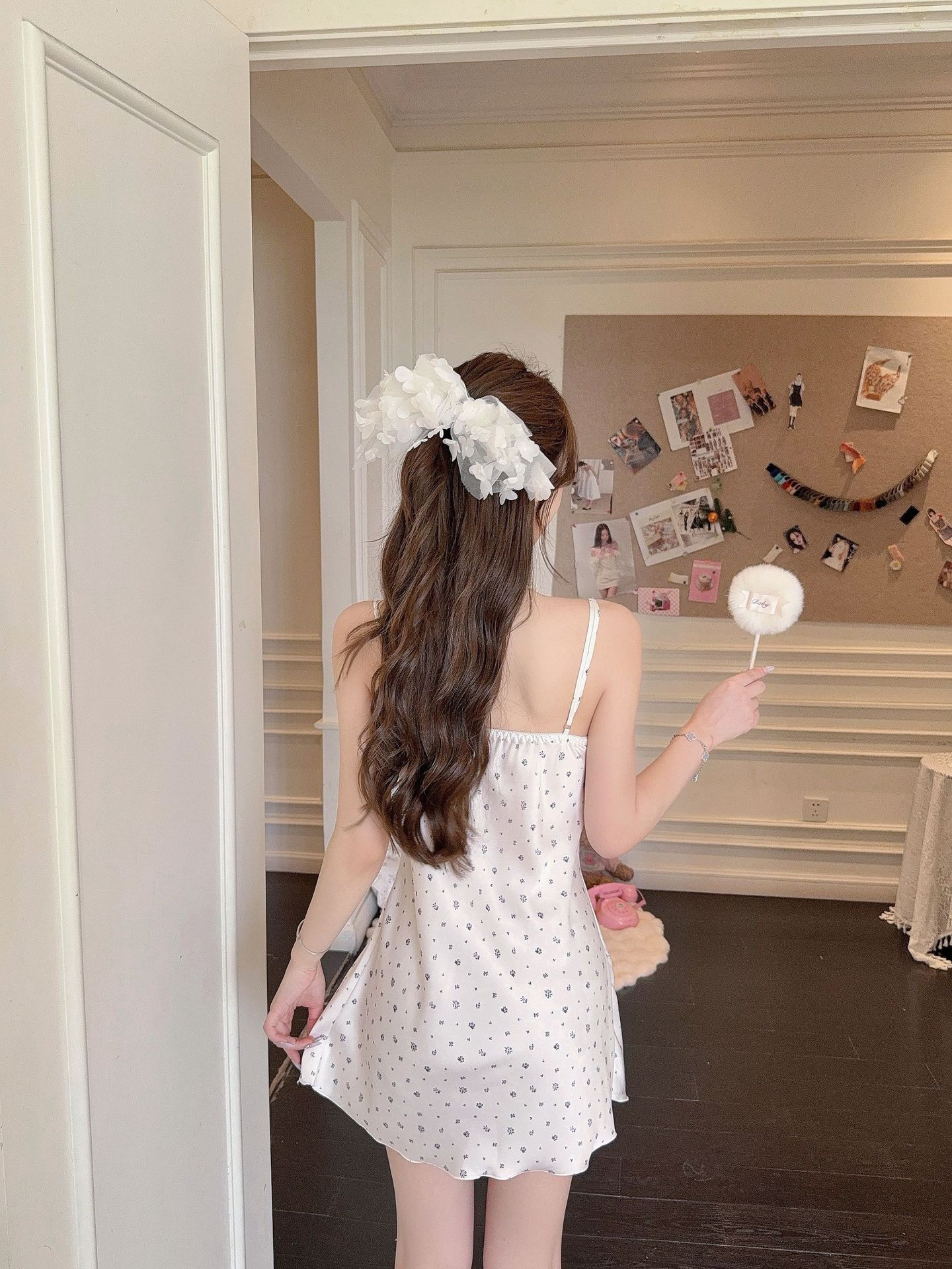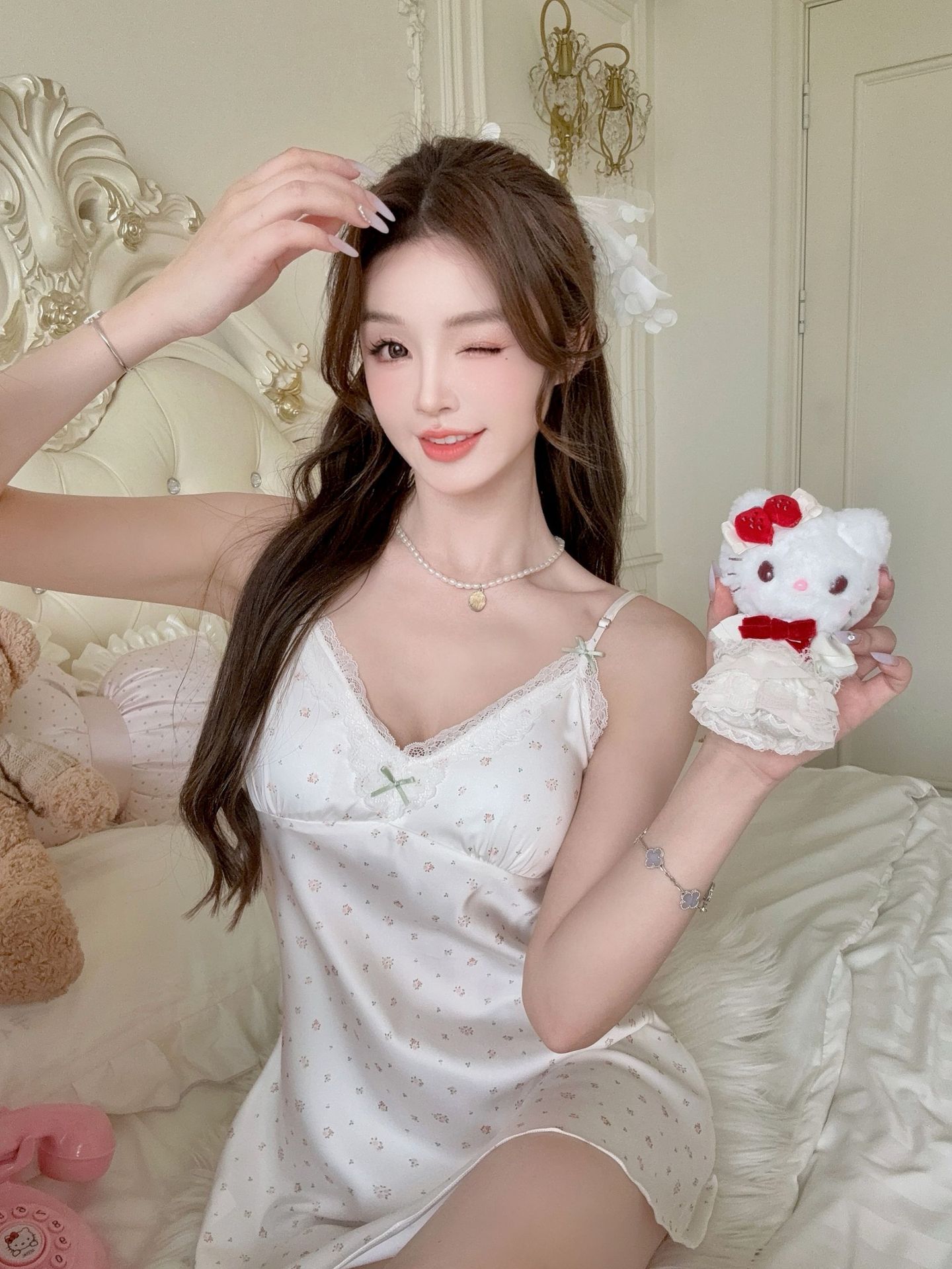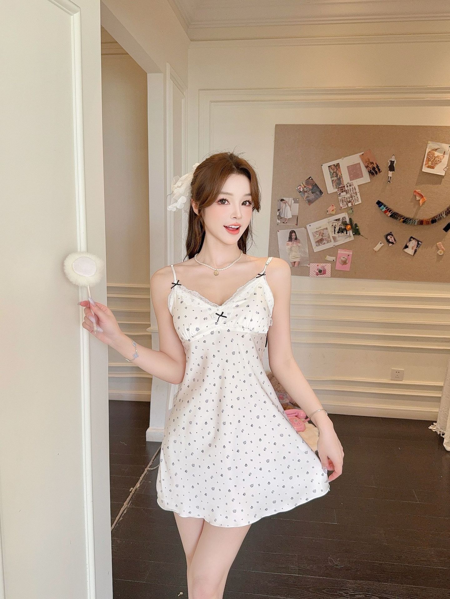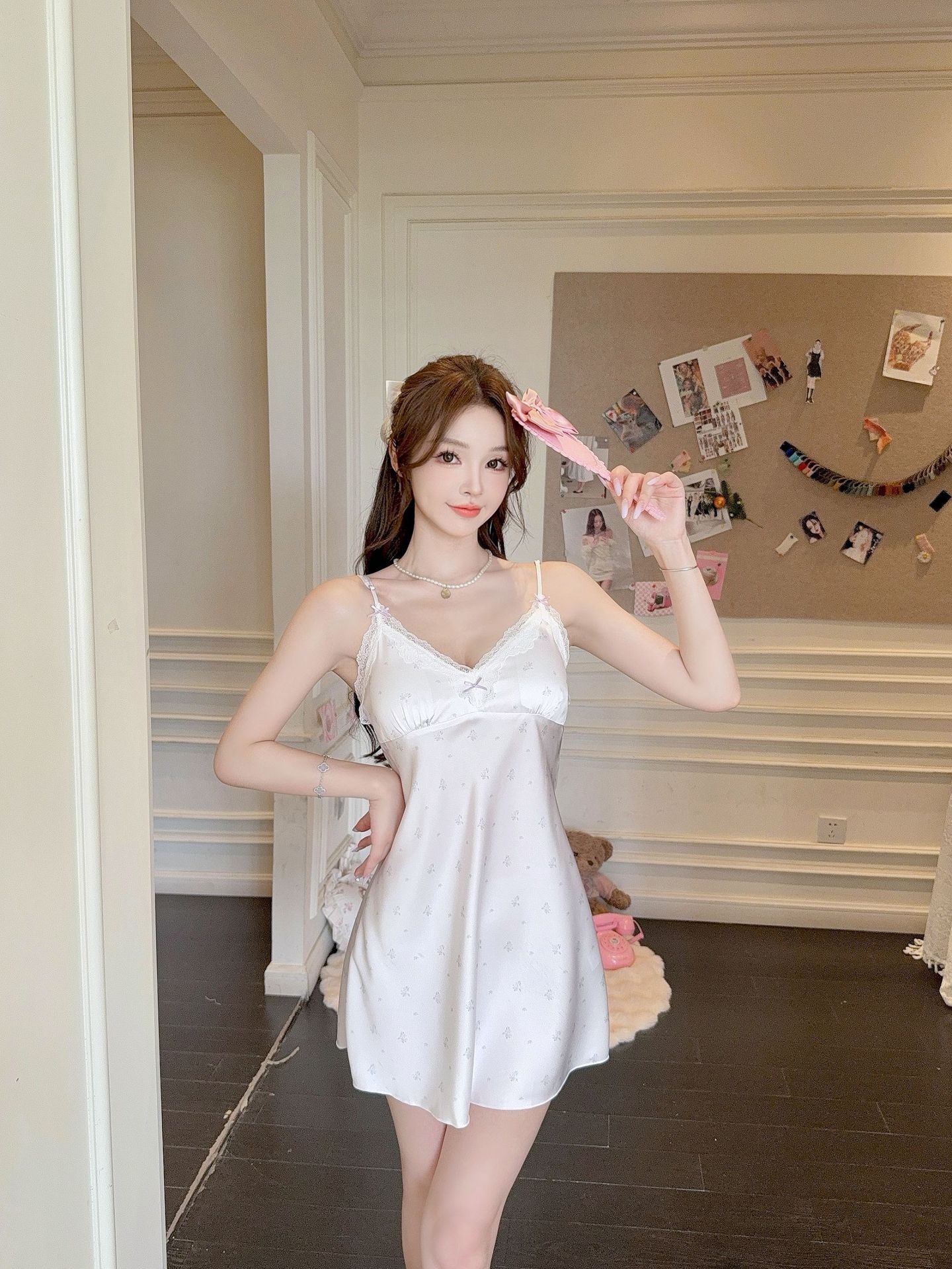 Pijama Sexy para Mujer de Seda de Hielo Estilo Fino con Almohadilla para el Pecho 2025 Primavera y Verano Nuevo Camisón de Tirantes Estampado Ropa de Casa de Seda
