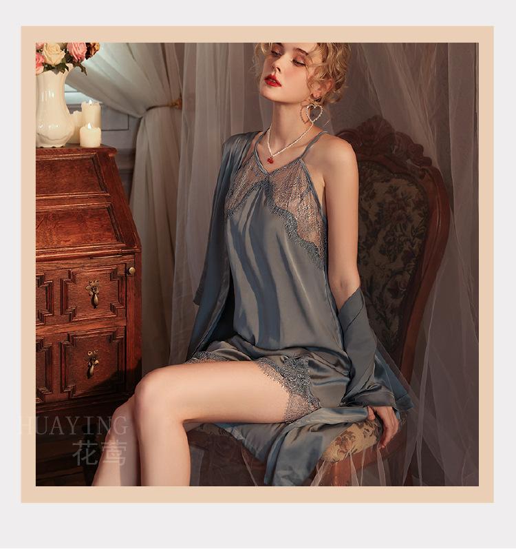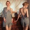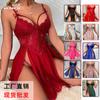 Lencería Sexy Camisón Transparente de Encaje y Malla para Mujer Tentación Deseo Puro Falda Descubierta Ropa Holgada para el Hogar 1655