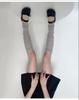 Calcetines altos hasta la rodilla de pelo blanco y negro para niños otoño e invierno populares en línea ins sexy coreanos de punto altos largos jk hasta el muslo