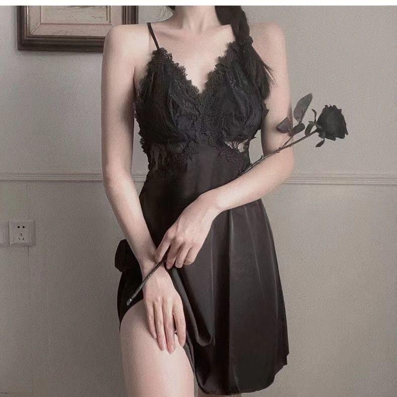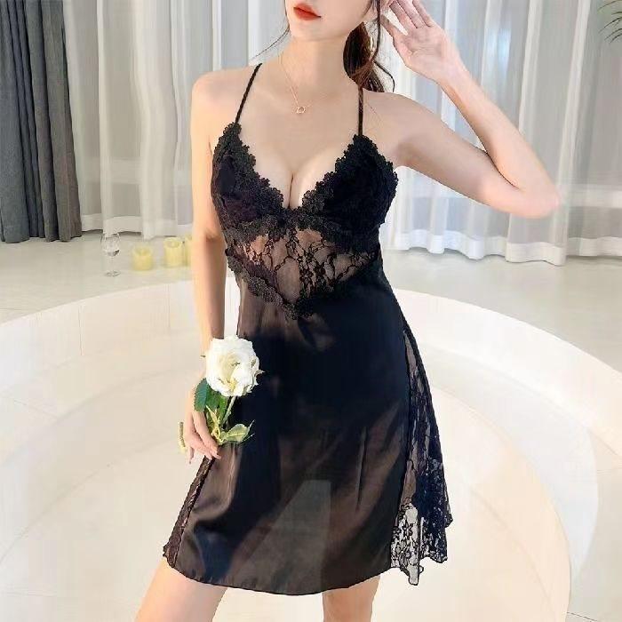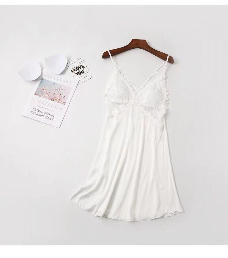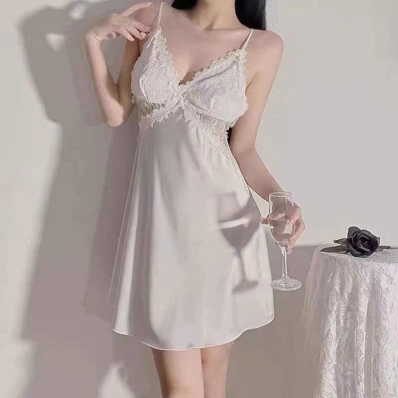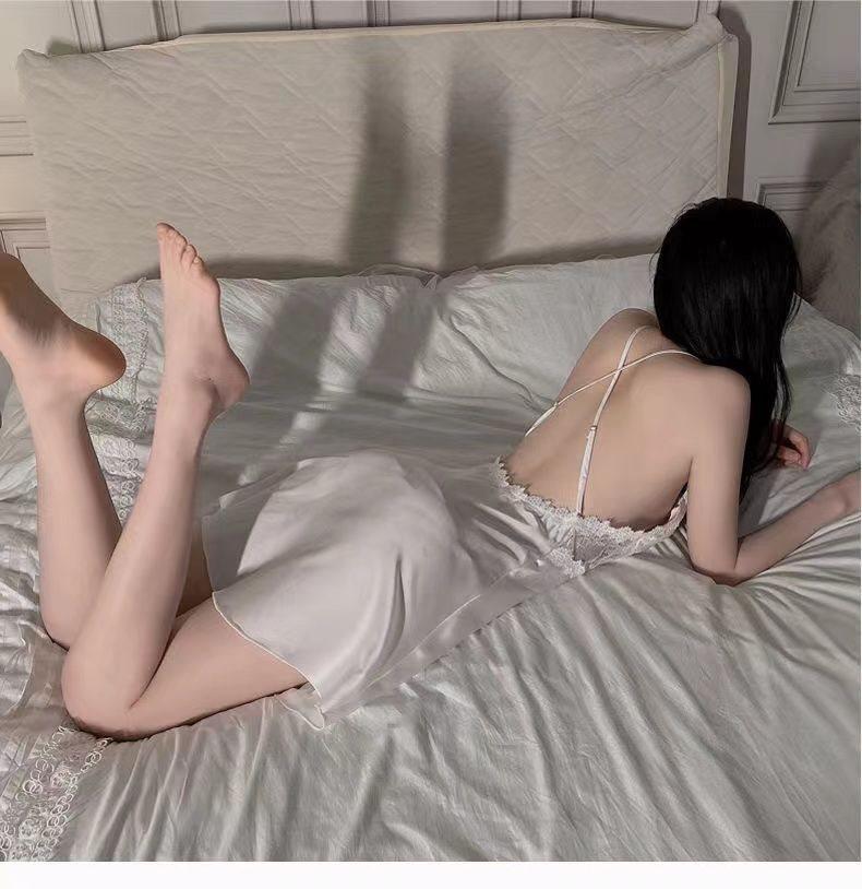Pijama para Mujer Verano Seda de Hielo con Almohadillas en el Busto Encaje Delgado Espalda Hermosa Sexy Camisón con Tirantes Estilo Ins Sexy Estilo Lujuria Pura
