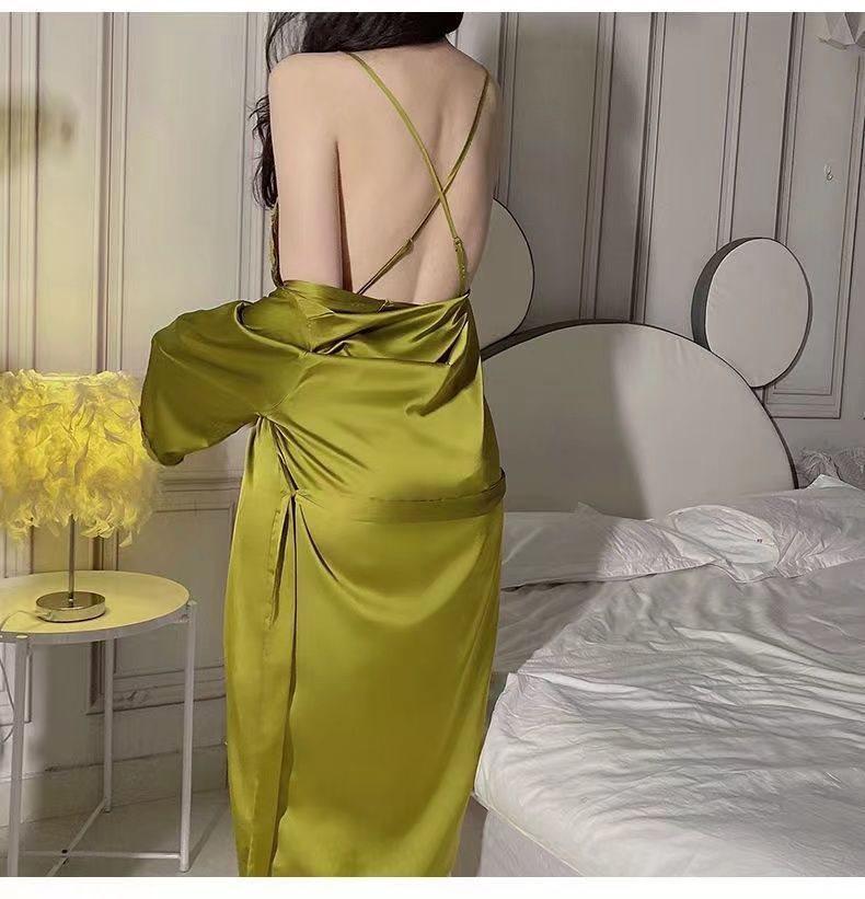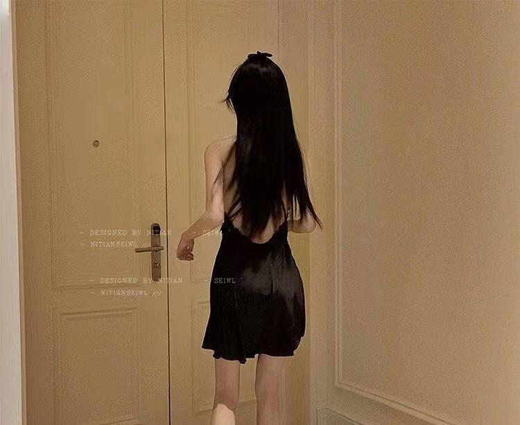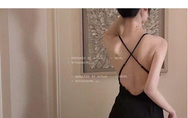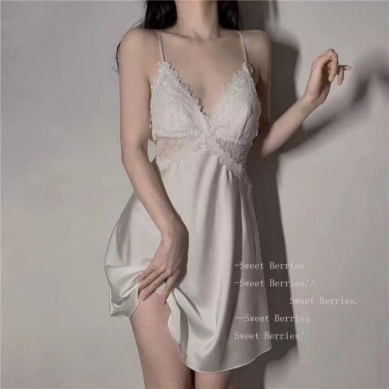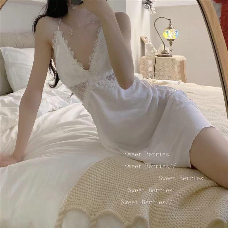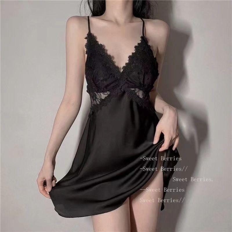 Pijama para Mujer Verano Seda de Hielo con Almohadillas en el Busto Encaje Delgado Espalda Hermosa Sexy Camisón con Tirantes Estilo Ins Sexy Estilo Lujuria Pura