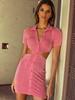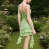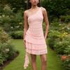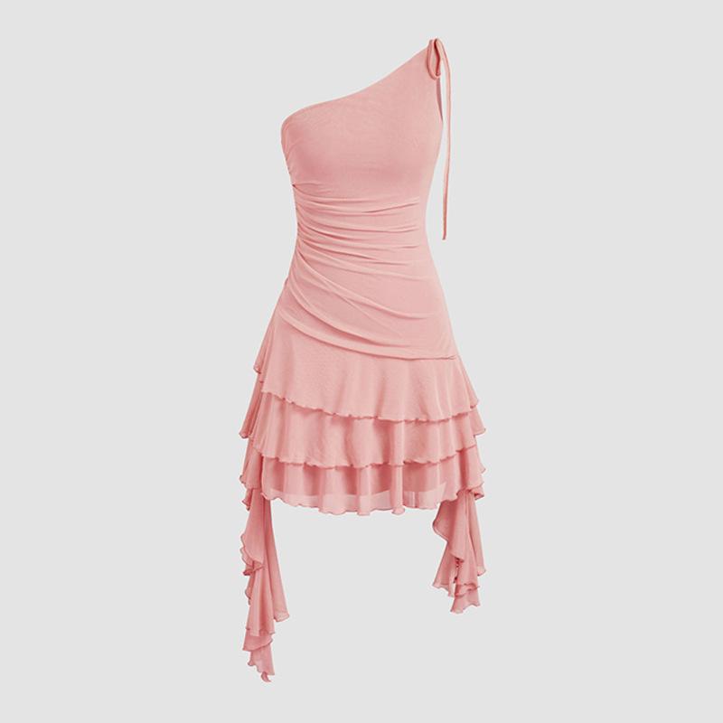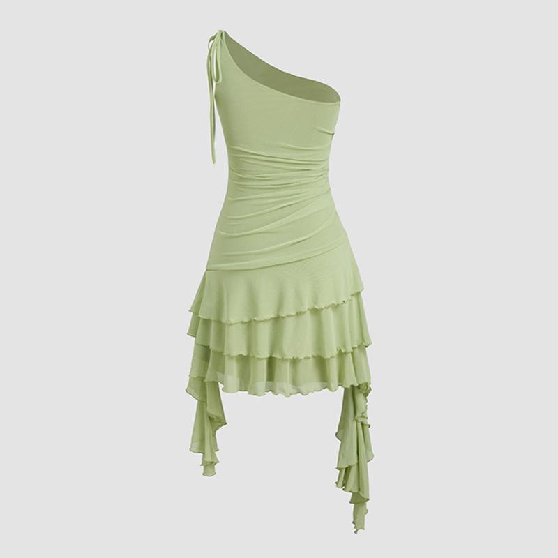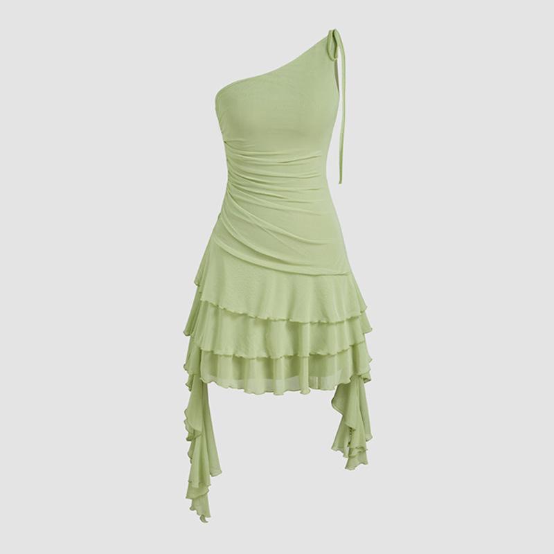 2025 Moda Nueva de Verano Europea y Americana Vestido Corto Ajustado Sexy para Chica Caliente con Volantes Cubre Caderas Cuello Inclinado Sin Mangas