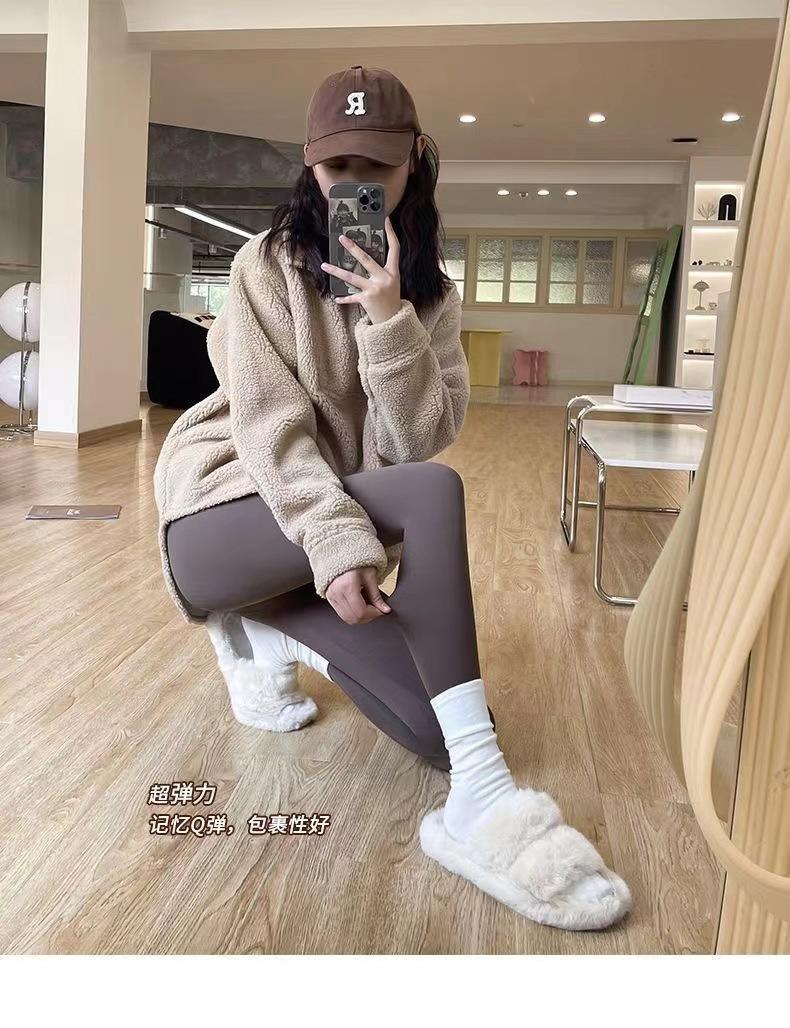 Pantalones Delgados de Terciopelo de Tiburón para Mujer, Ropa Exterior, Control de Abdomen, Pantalones Gruesos de Lana para Otoño e Invierno, Capa Base Cálida, Yoga Cintura Alta