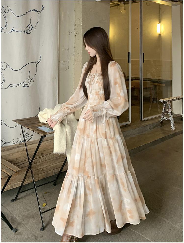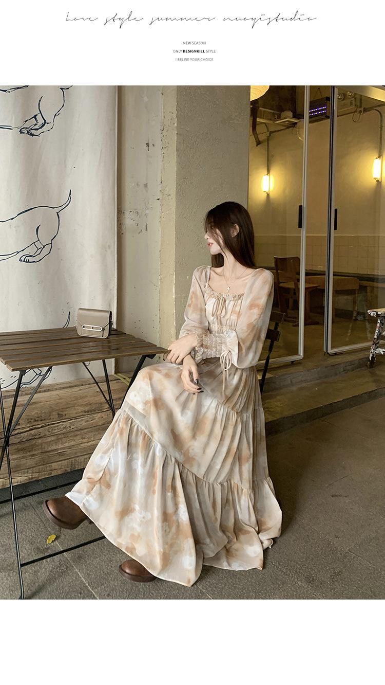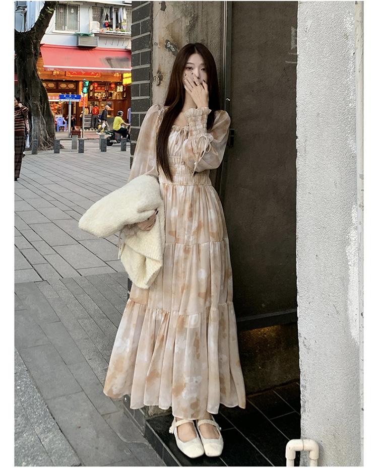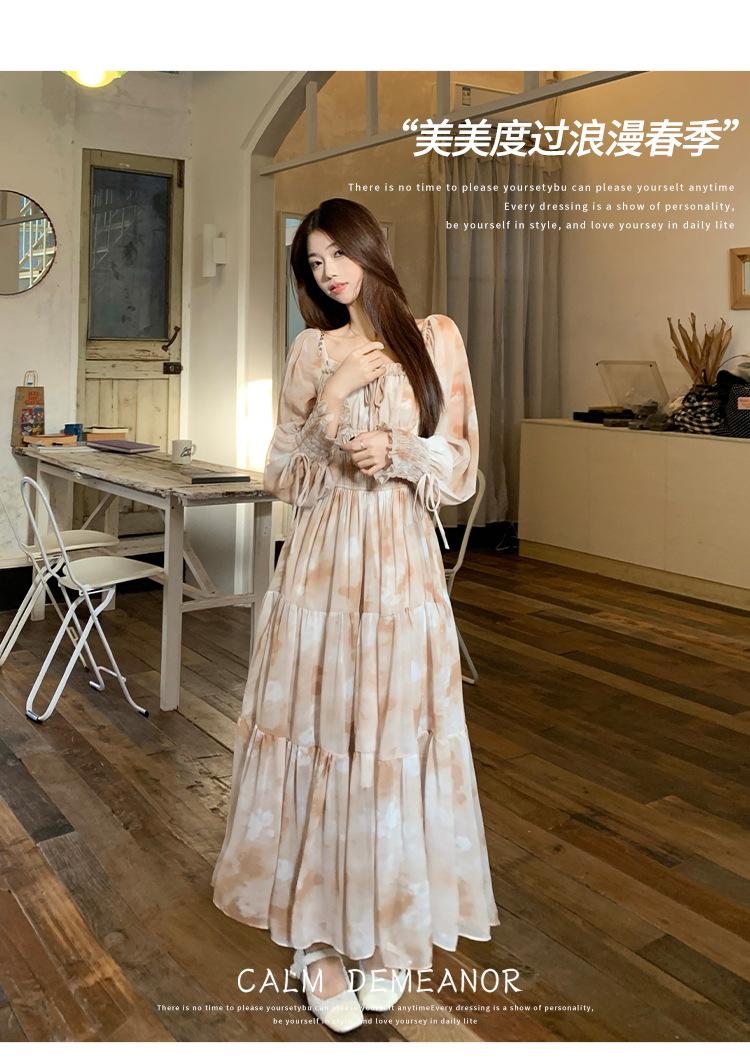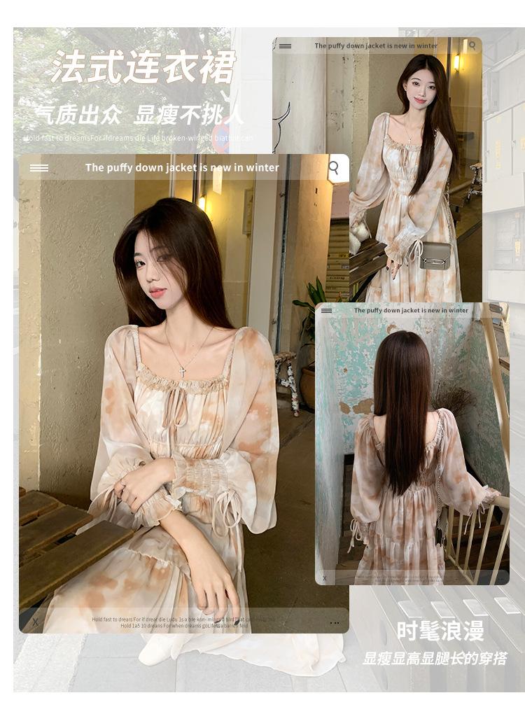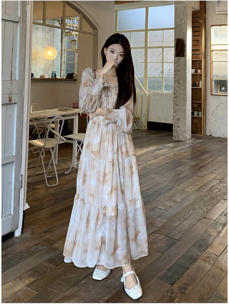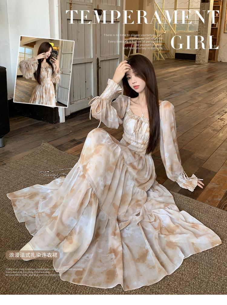 Vestido Retro Francés de Cuello Cuadrado Talla Grande 2025 Nuevo Primavera Adelgazante Suave Sobre la Rodilla Floral