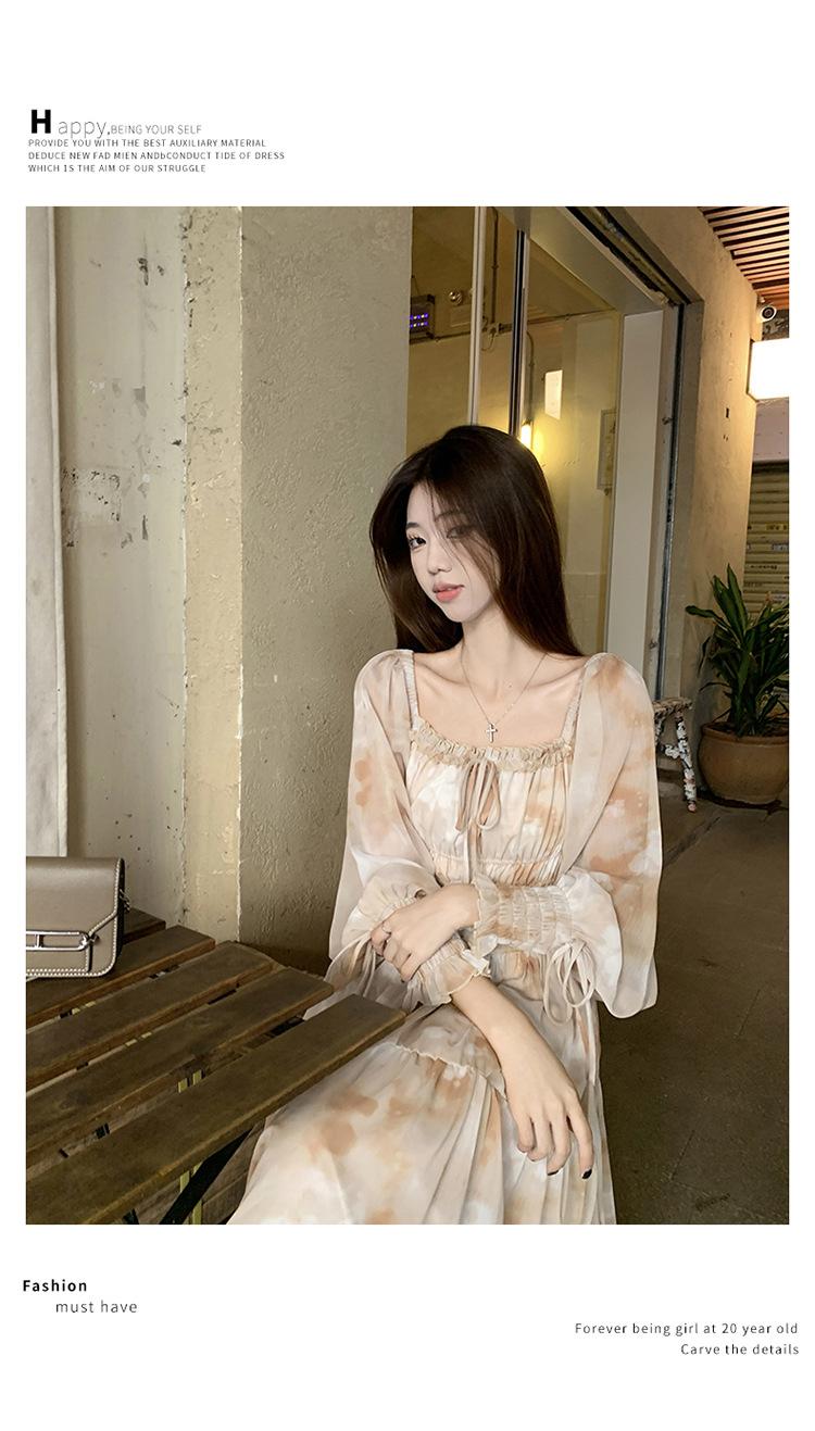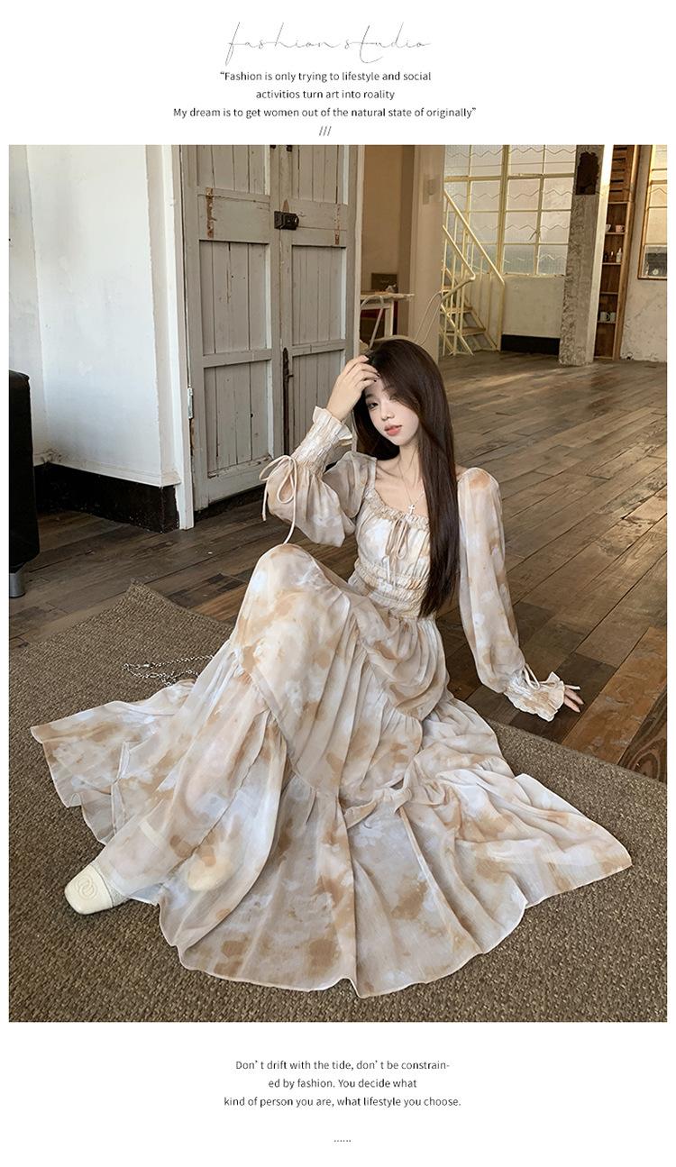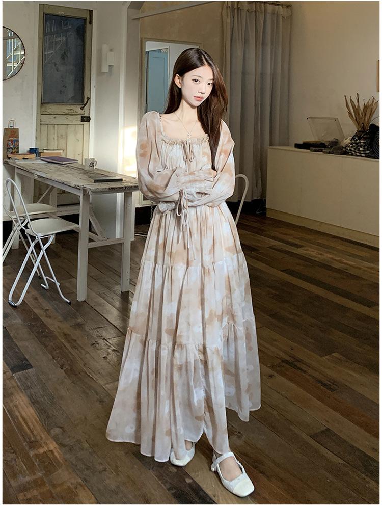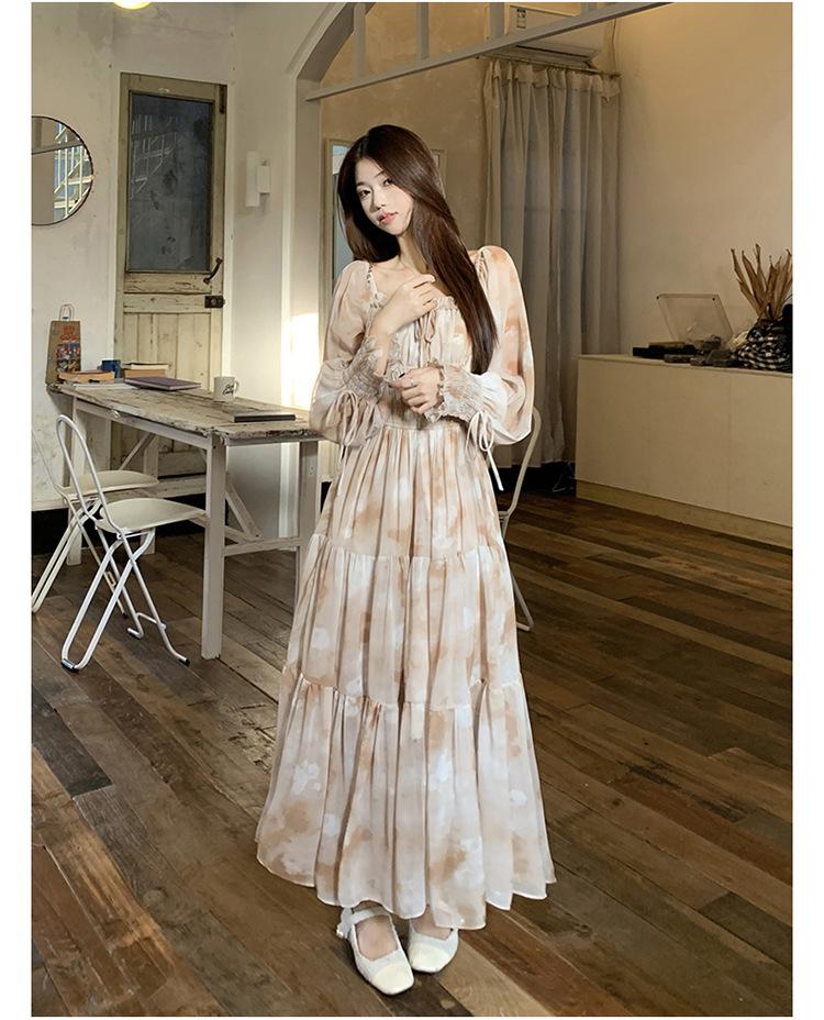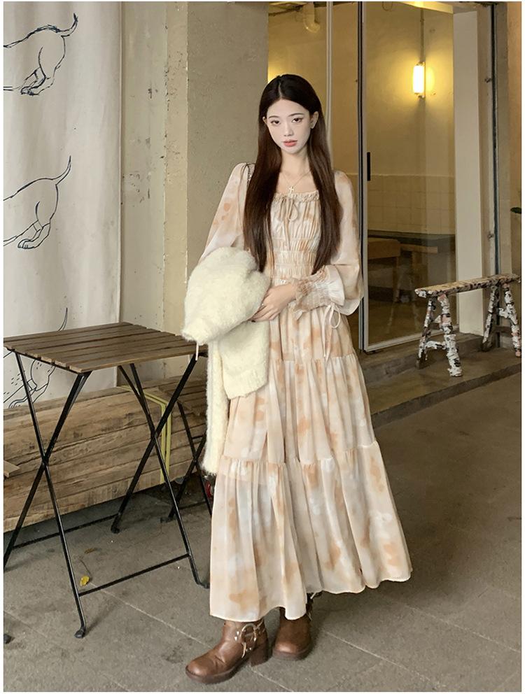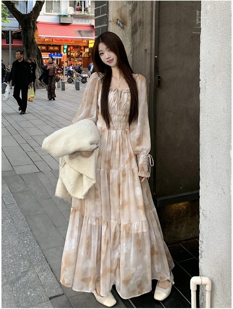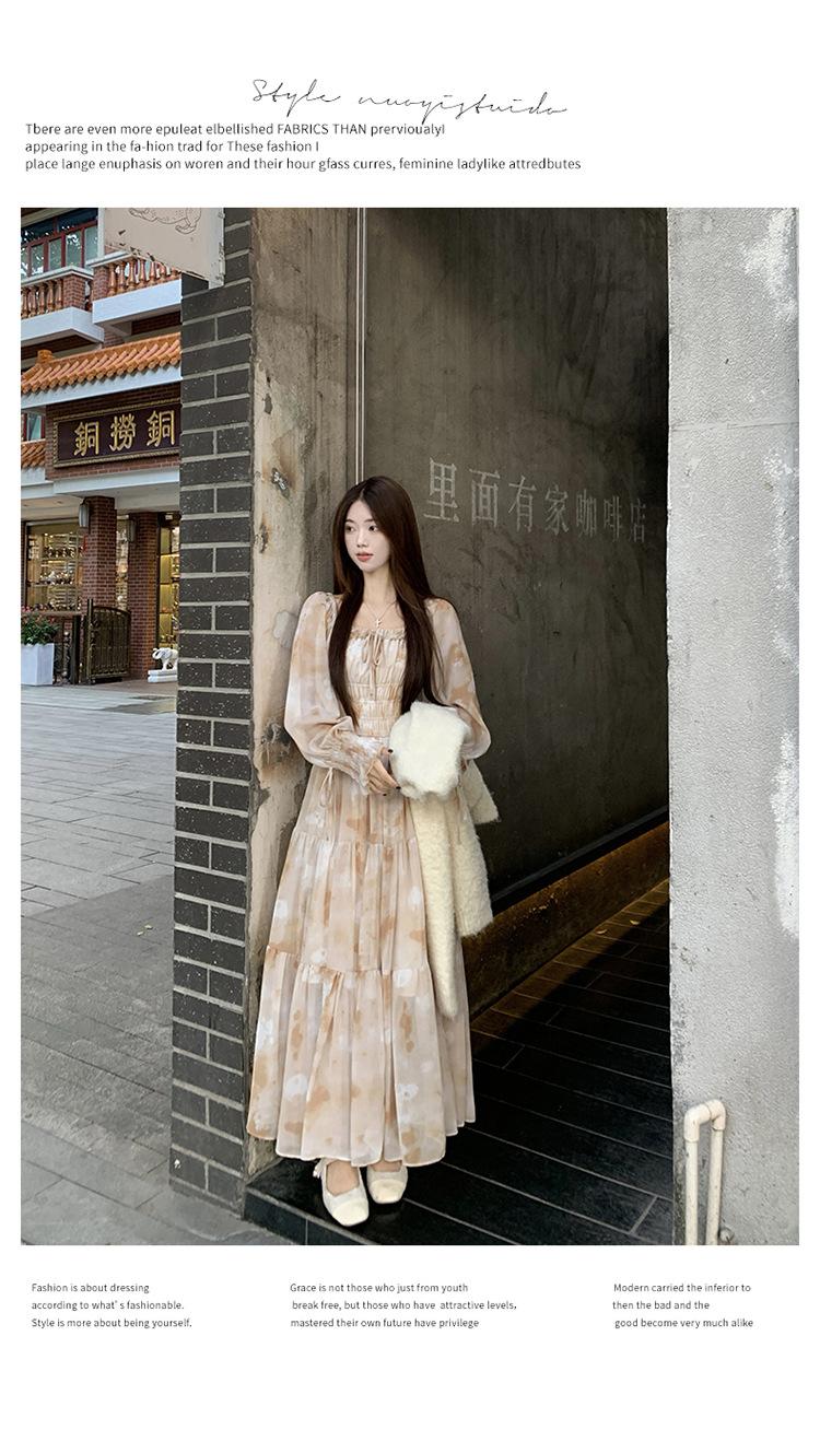 Vestido Retro Francés de Cuello Cuadrado Talla Grande 2025 Nuevo Primavera Adelgazante Suave Sobre la Rodilla Floral