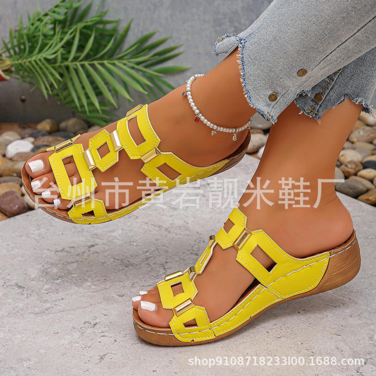 Pantuflas Europeas y Americanas de Talla Grande Transfronterizas de Color Puro para Mujer 2025 Nuevo Boca de Pez Suela Gruesa Moda Hebilla de Cinturón Sandalias de Una Línea