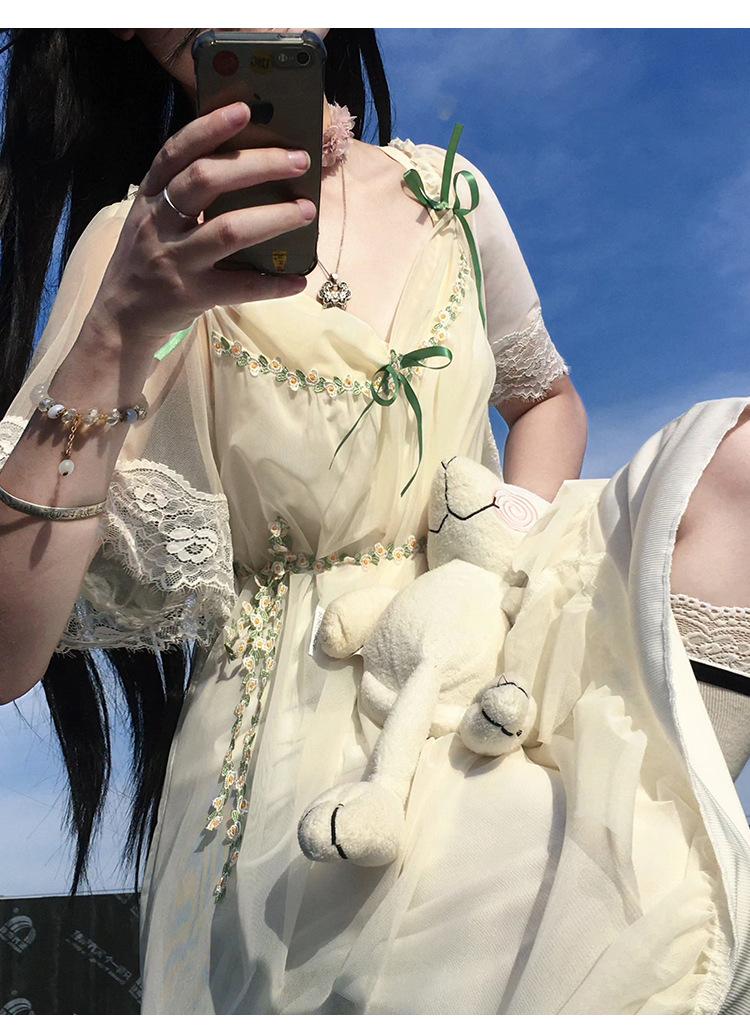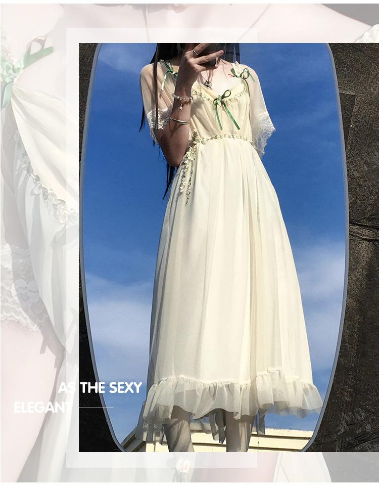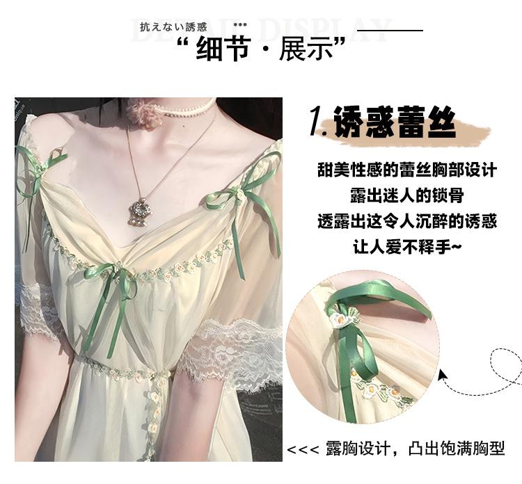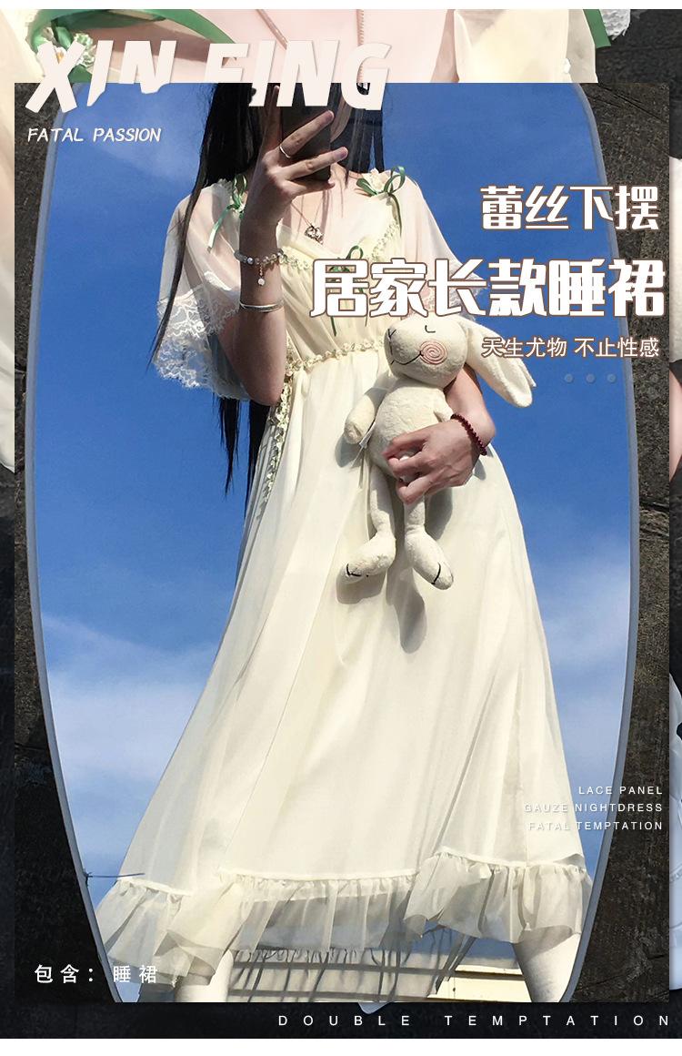 Pijamas Sexy para Mujer Verano Encaje Malla Ropa Interior Camisón Privado con Tirantes Celebridad de Internet Lazo Sexy Ropa de Casa al Por Mayor