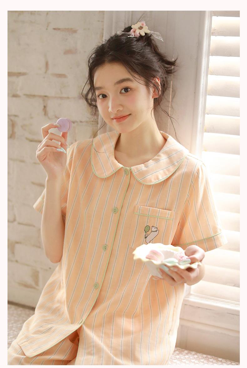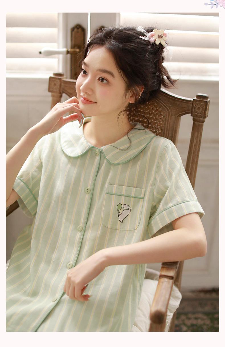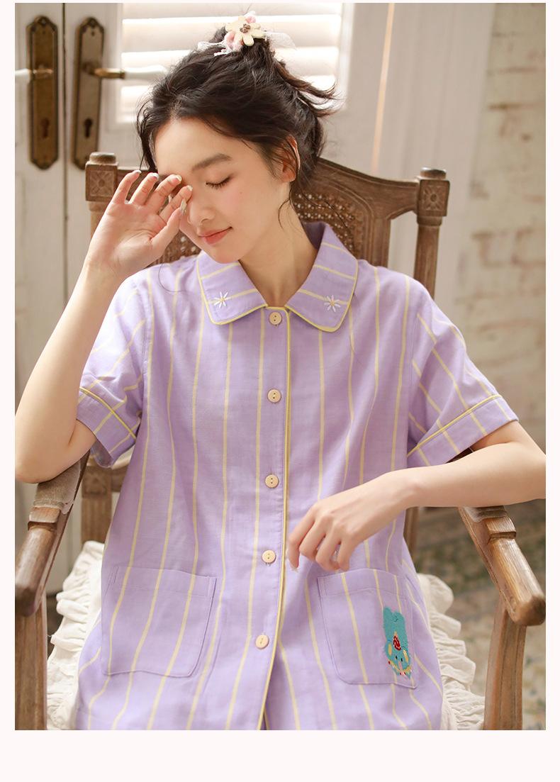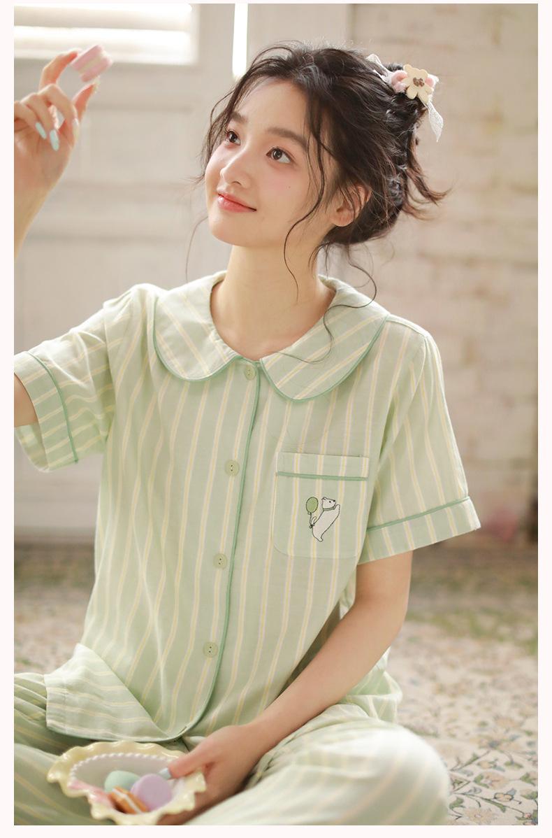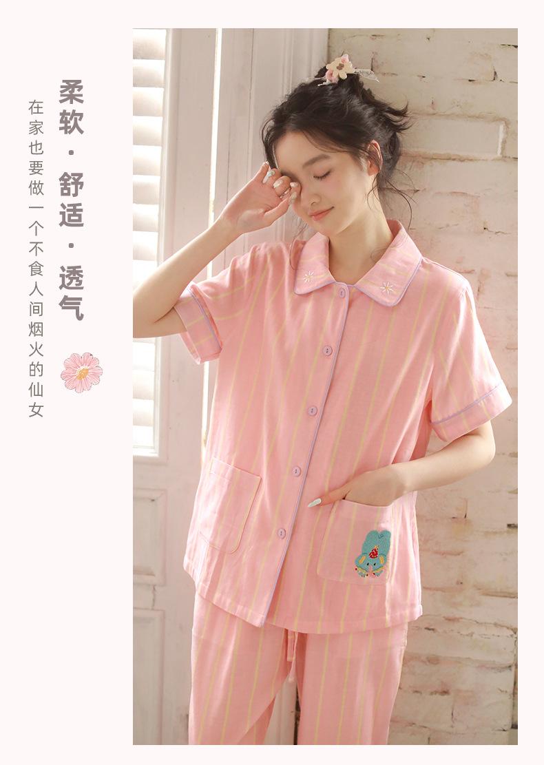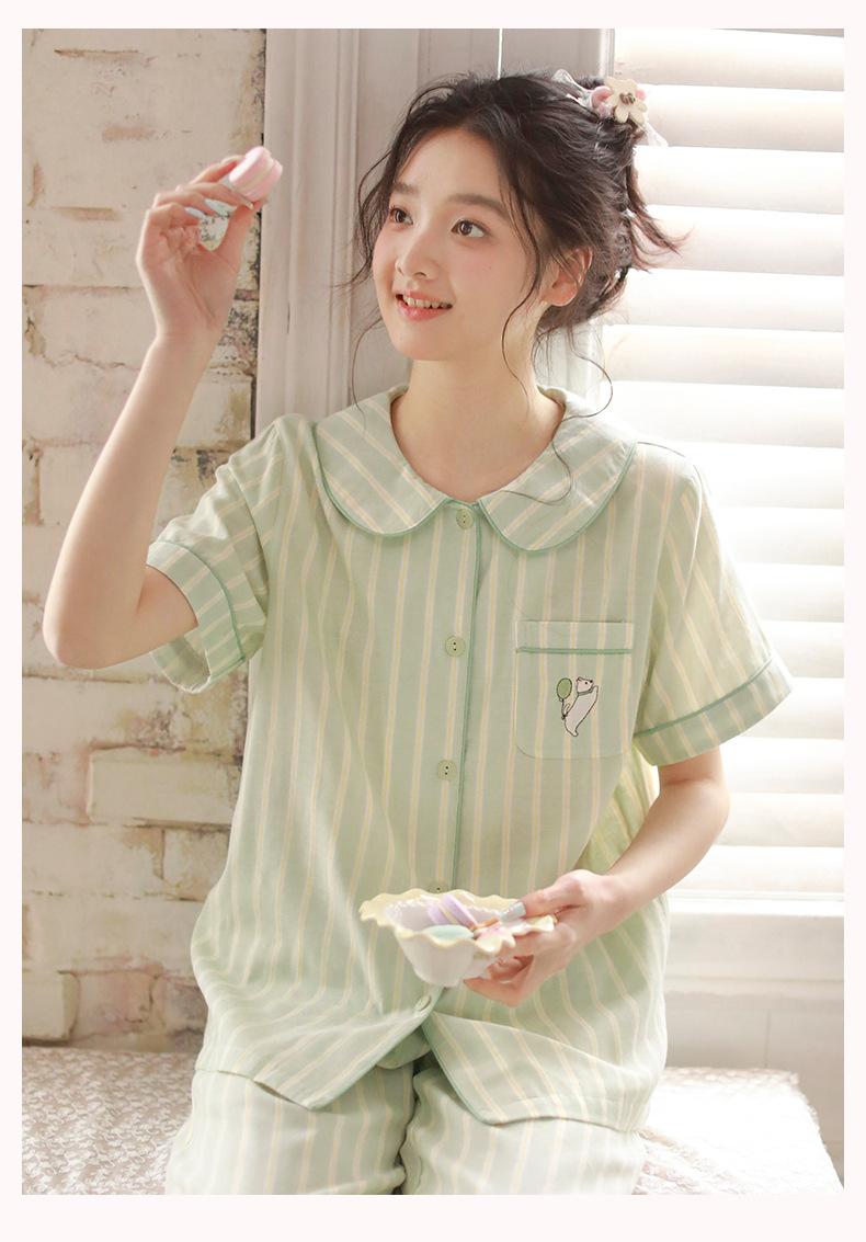 Pijama de rayas Sweet Dopamine para mujer de verano de gasa de algodón de manga corta para el hogar, traje de algodón fino