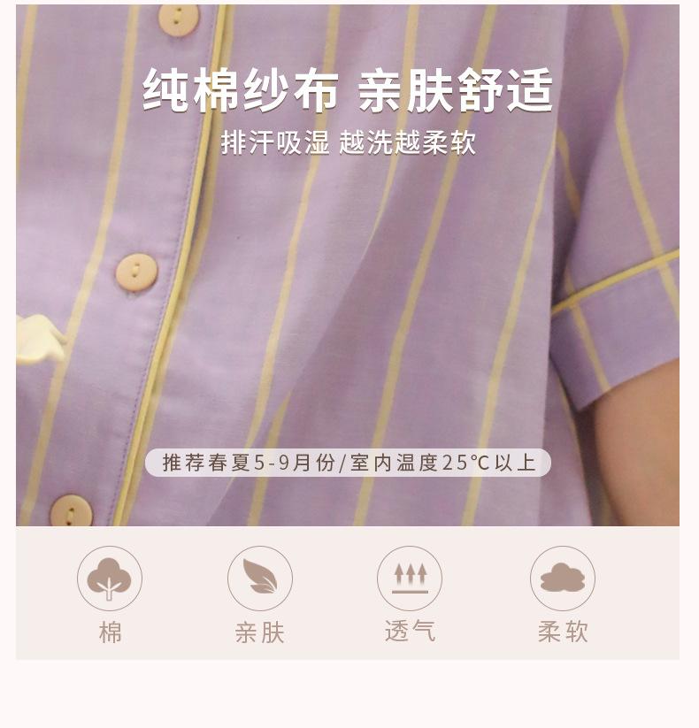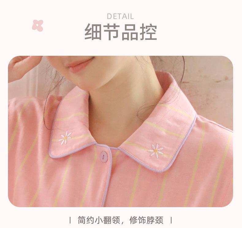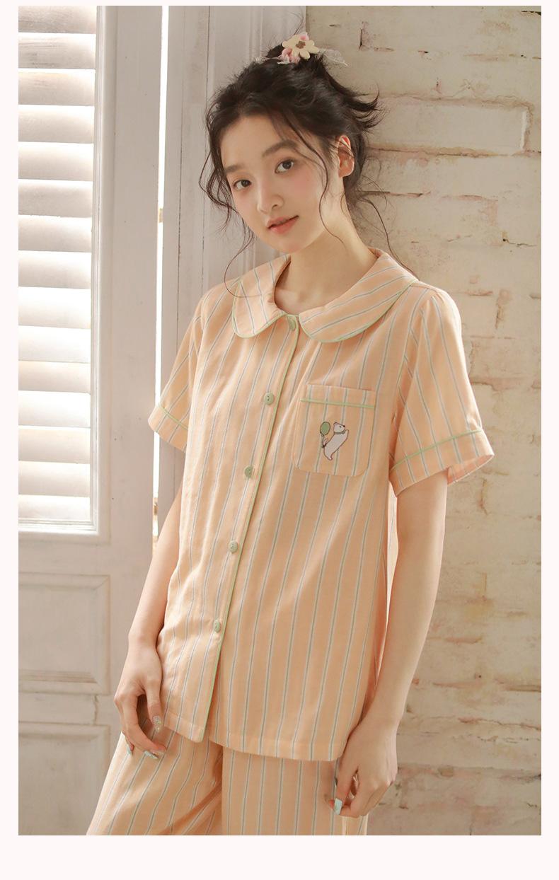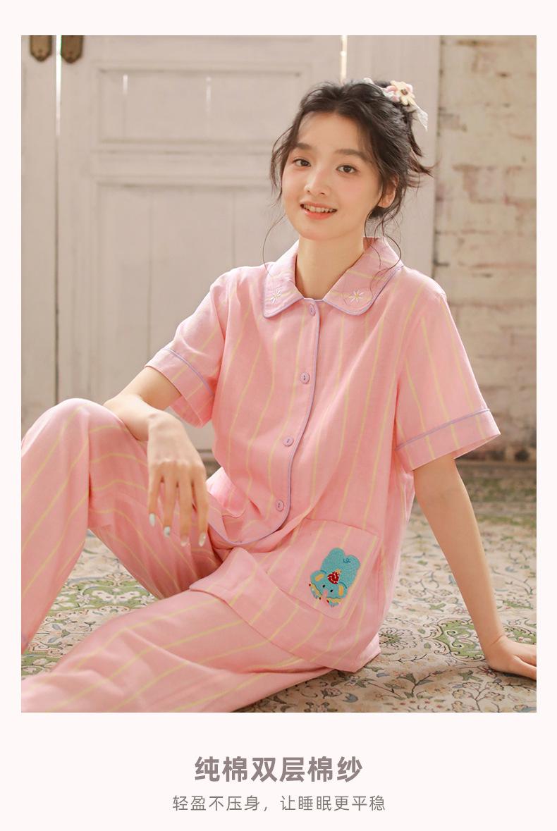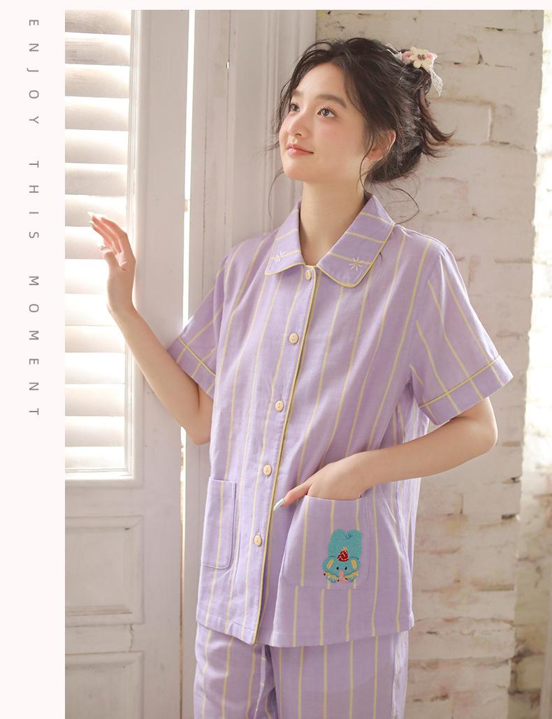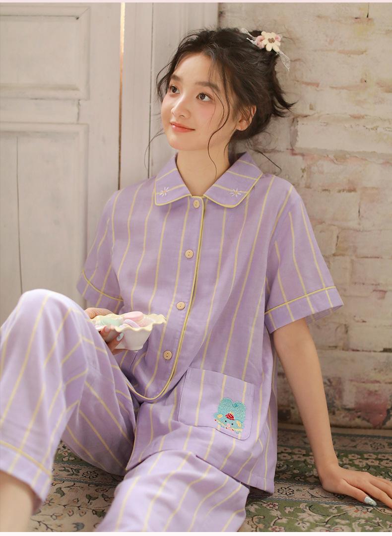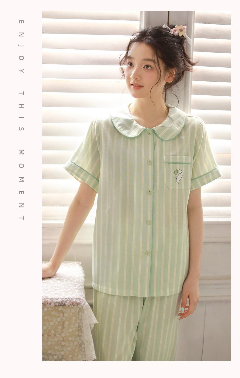 Pijama de rayas Sweet Dopamine para mujer de verano de gasa de algodón de manga corta para el hogar, traje de algodón fino