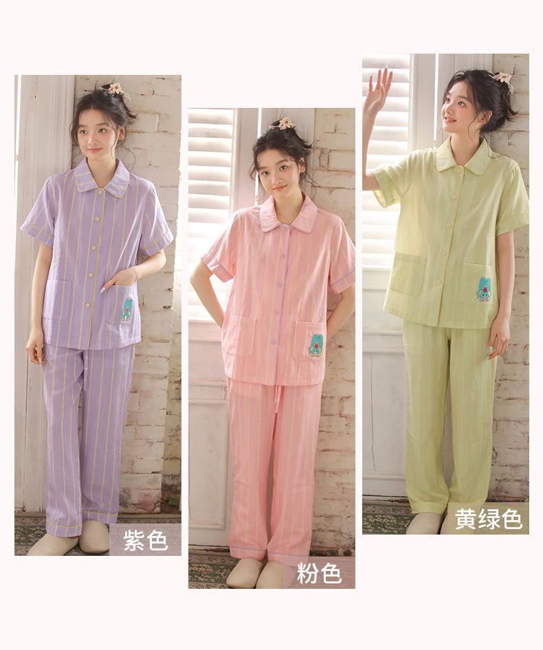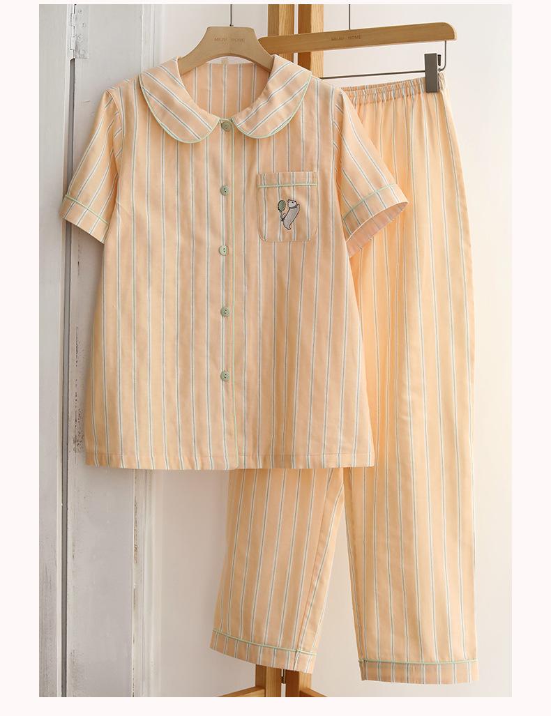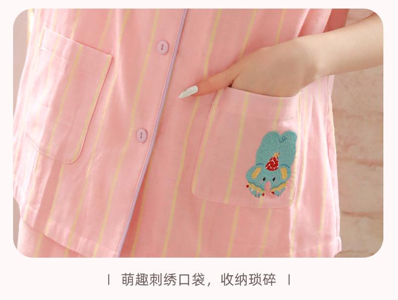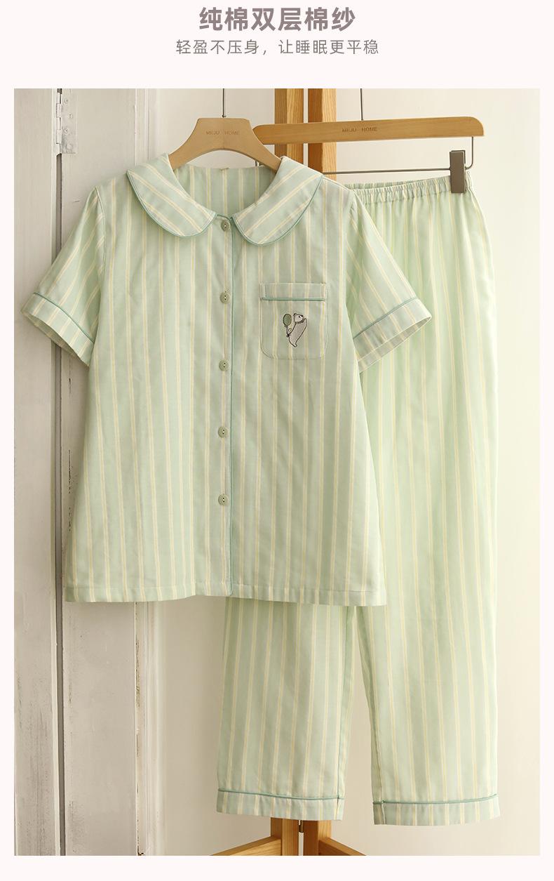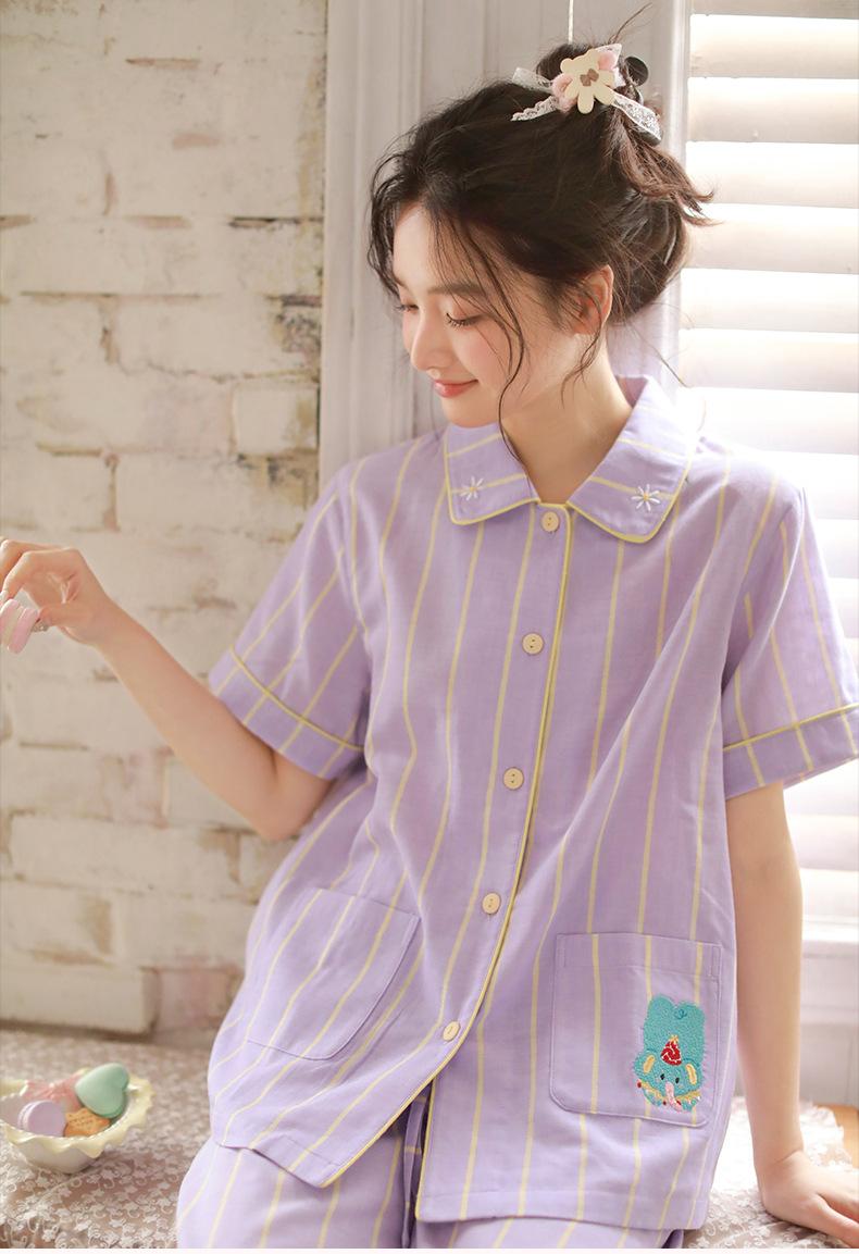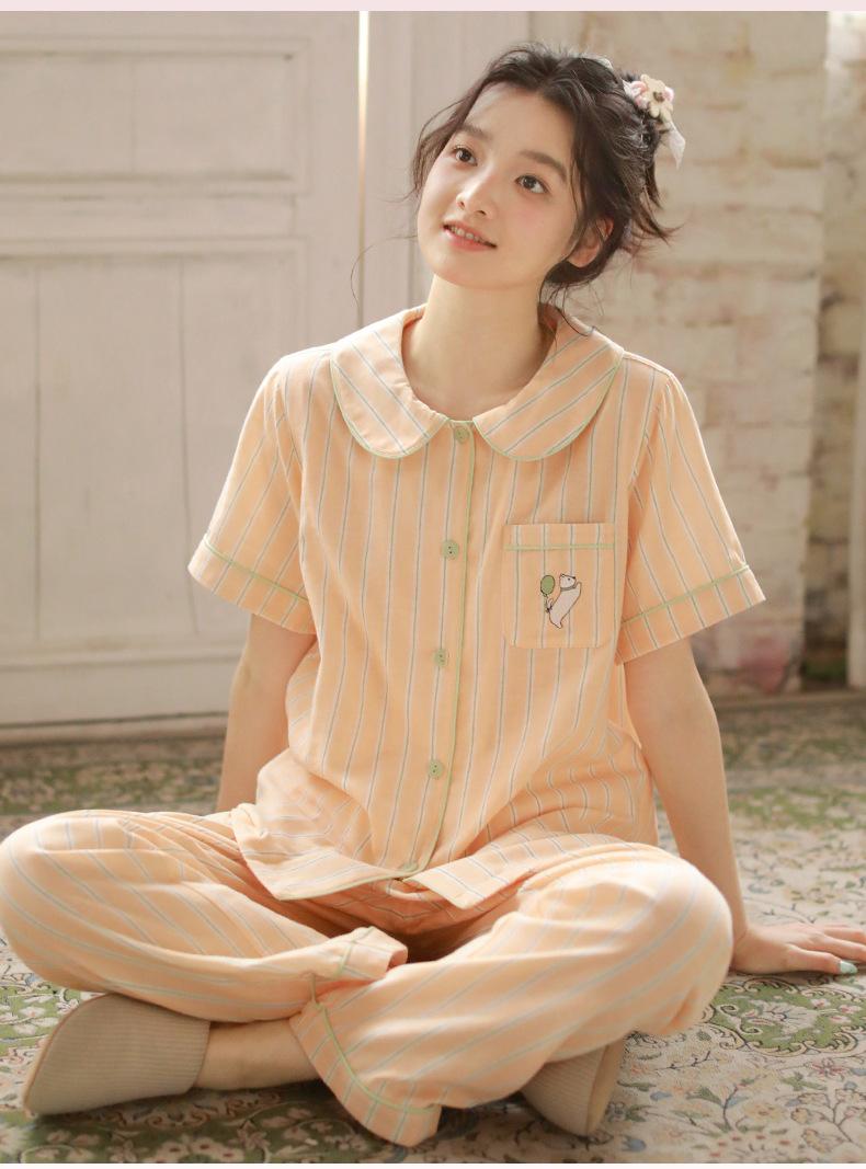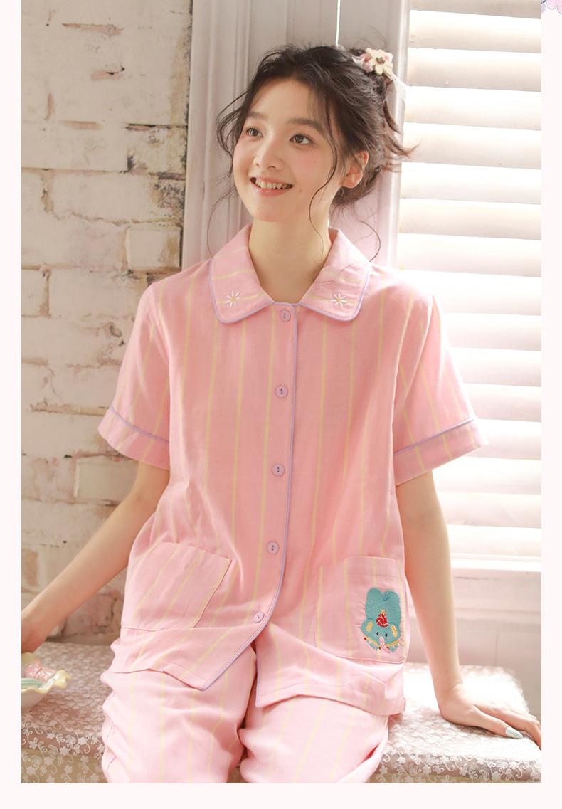 Pijama de rayas Sweet Dopamine para mujer de verano de gasa de algodón de manga corta para el hogar, traje de algodón fino