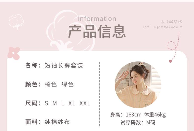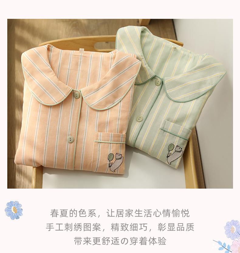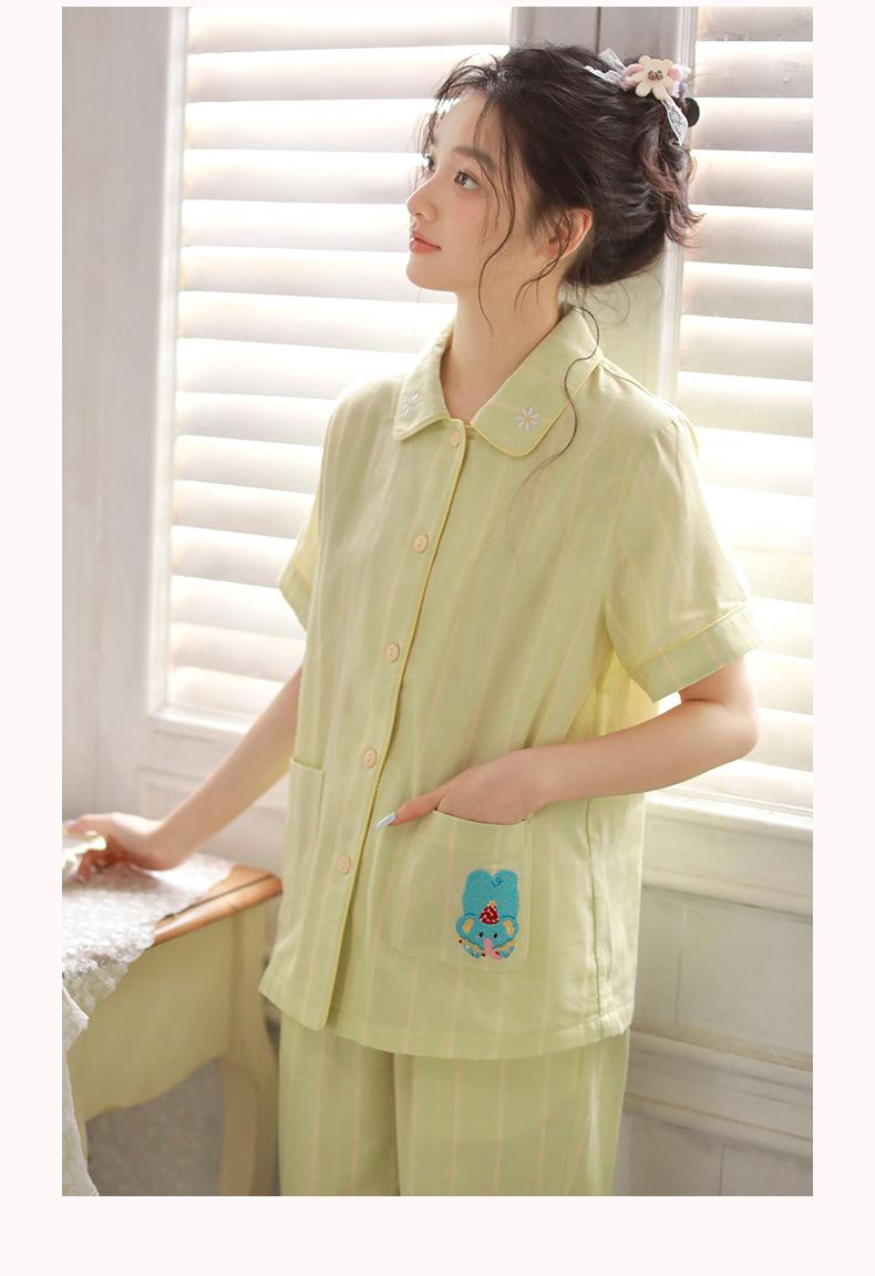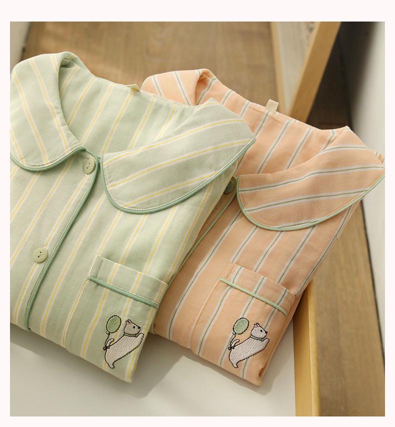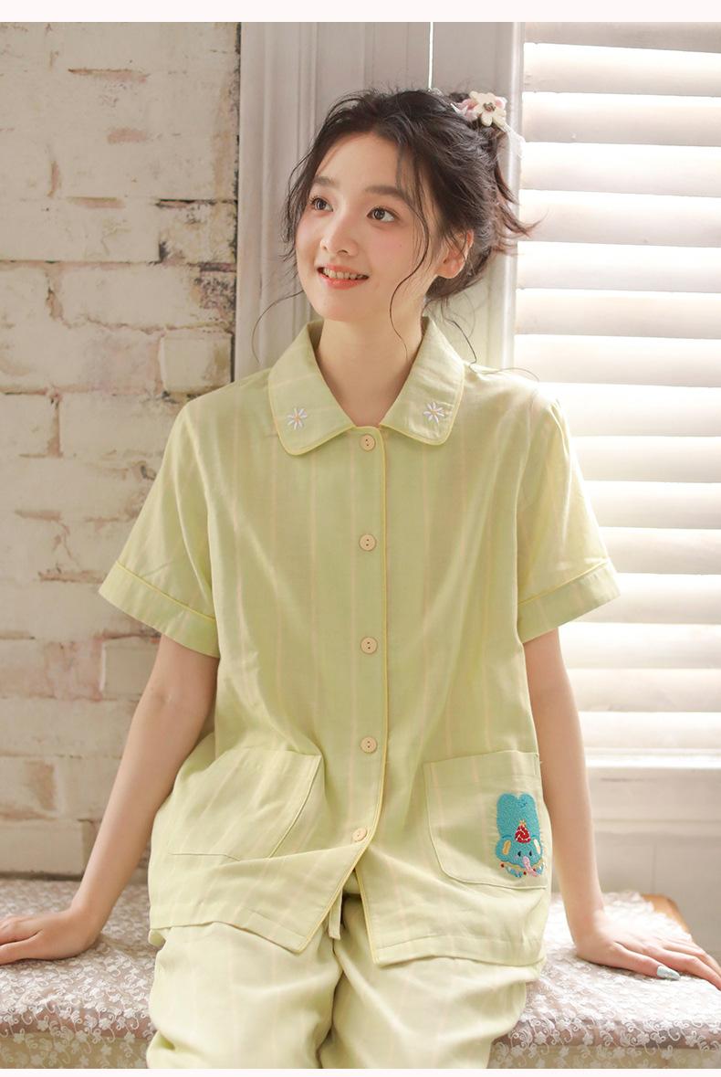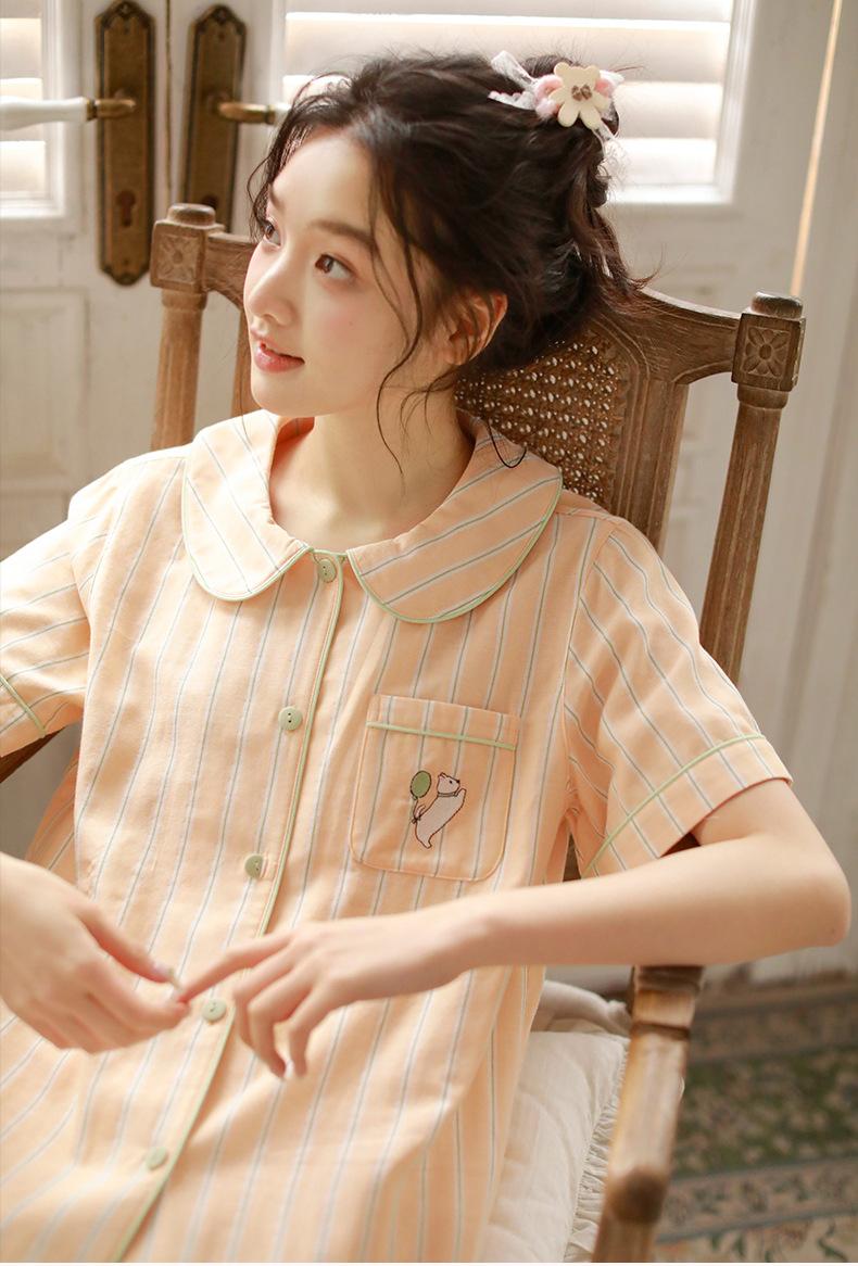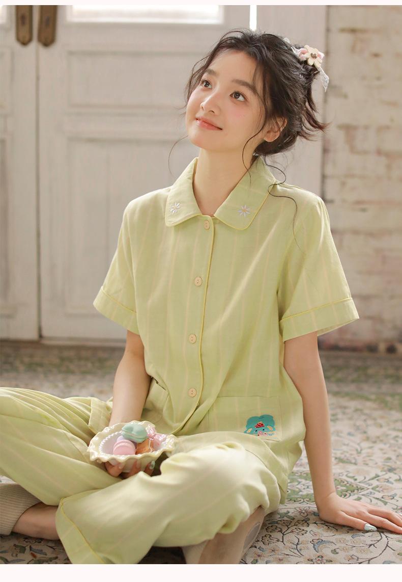 Pijama de rayas Sweet Dopamine para mujer de verano de gasa de algodón de manga corta para el hogar, traje de algodón fino