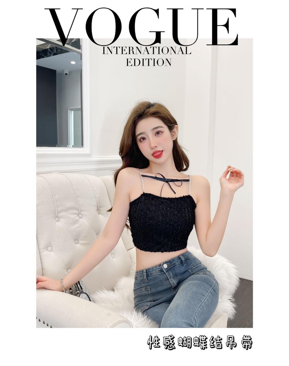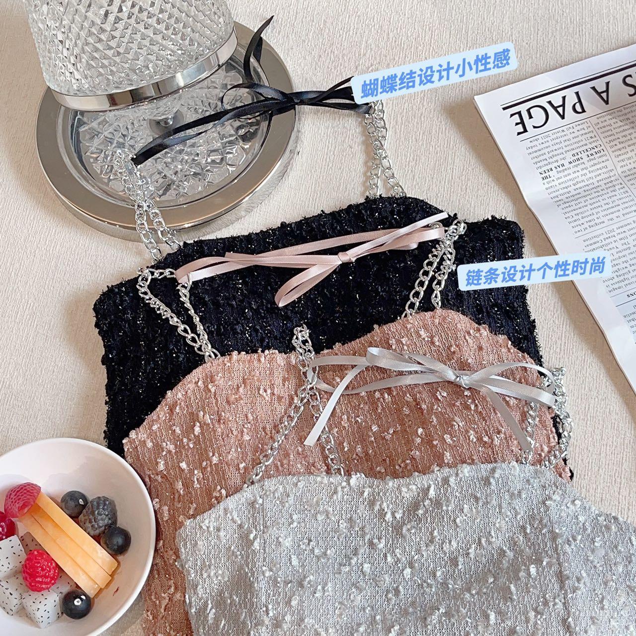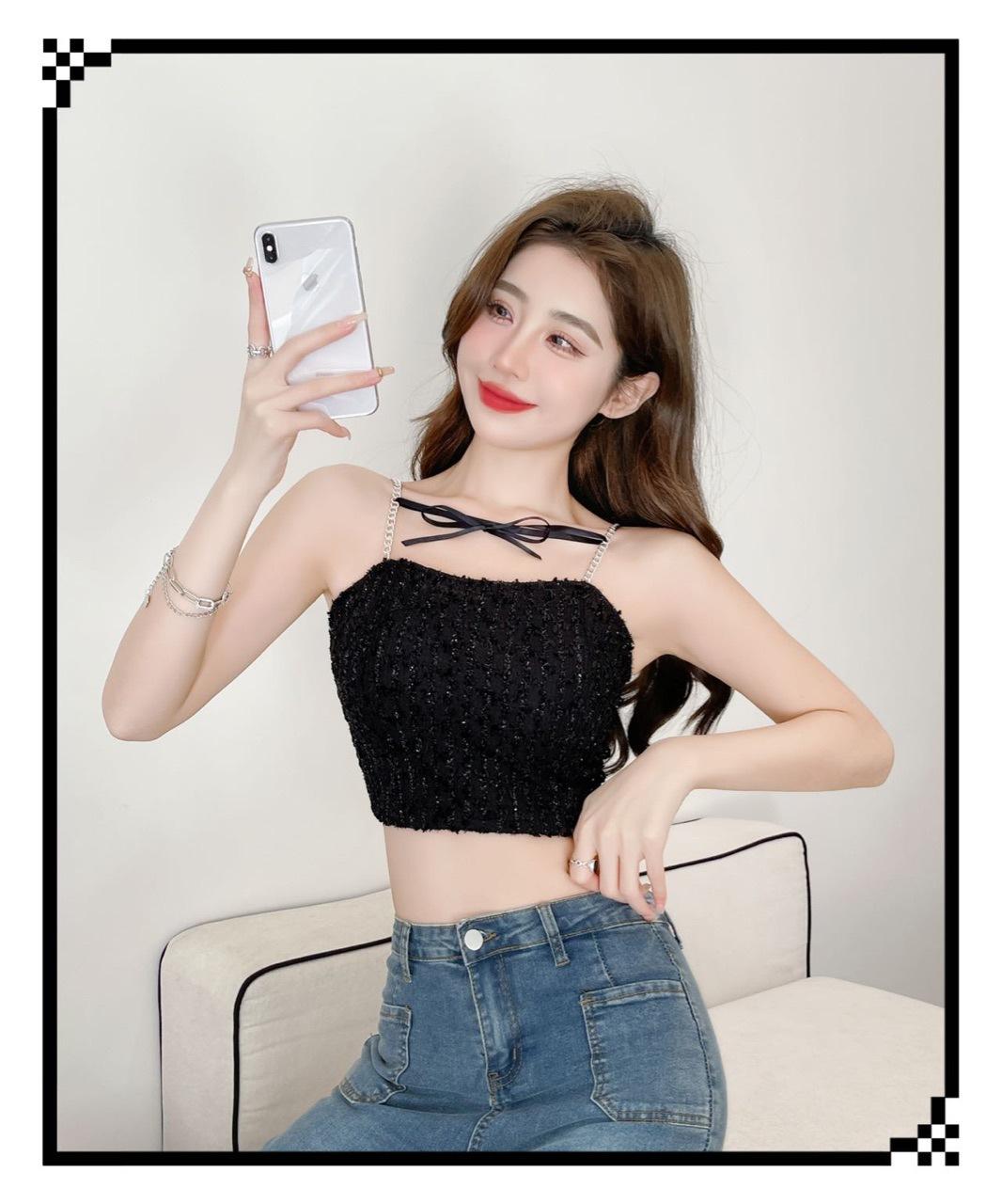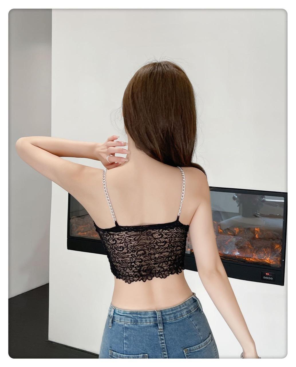 Top Camisola Sexy de Encaje con Cadena Estilo Francés para Mujer con Almohadillas en el Pecho, Se Puede Usar como Capa Interior o Exterior, Top Camisola, Estilo Bandeau
