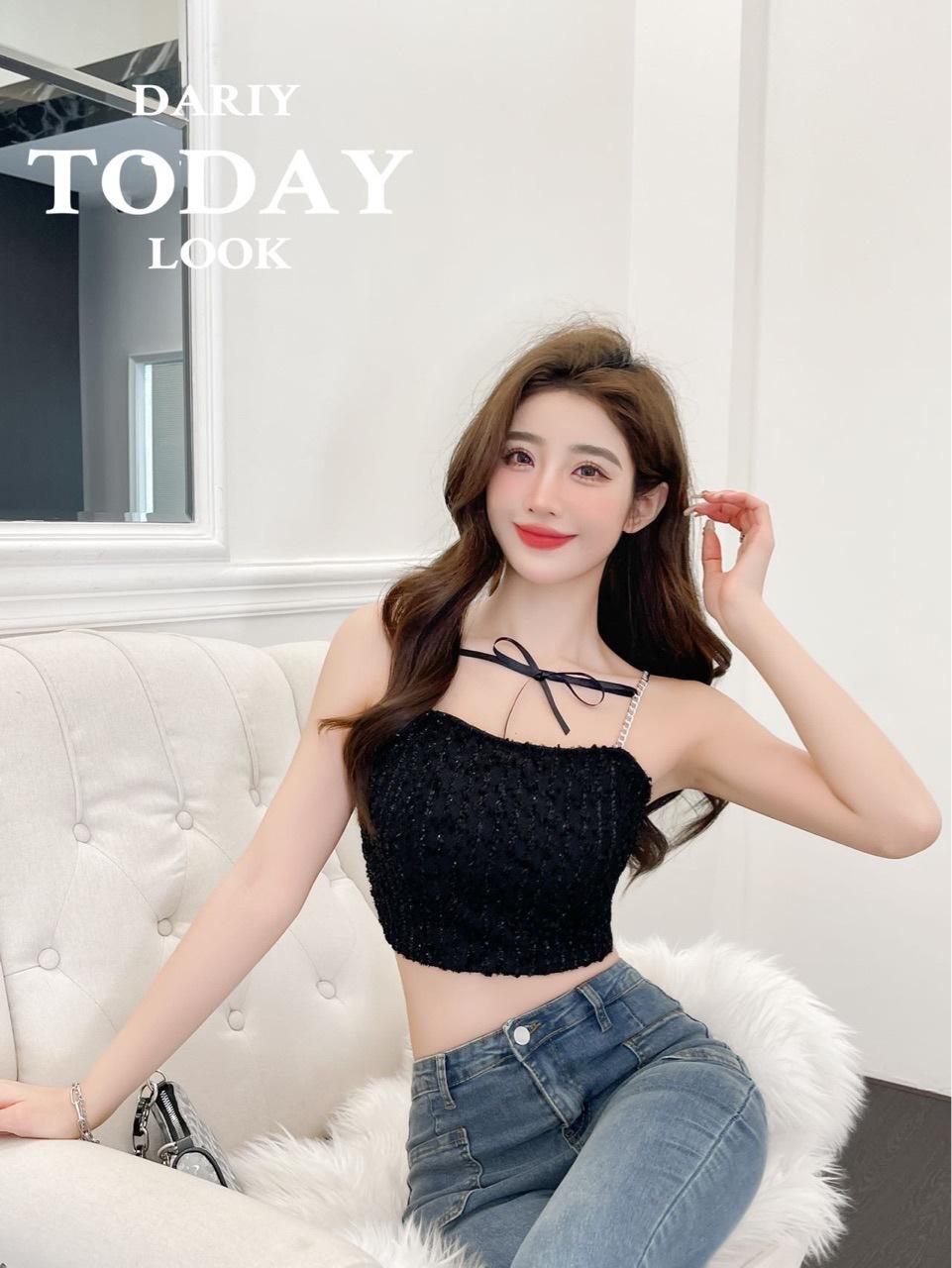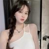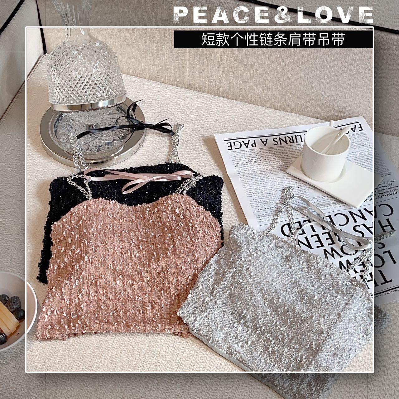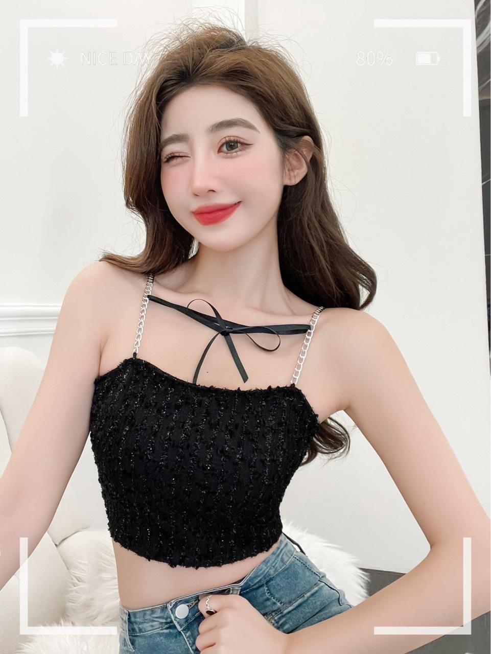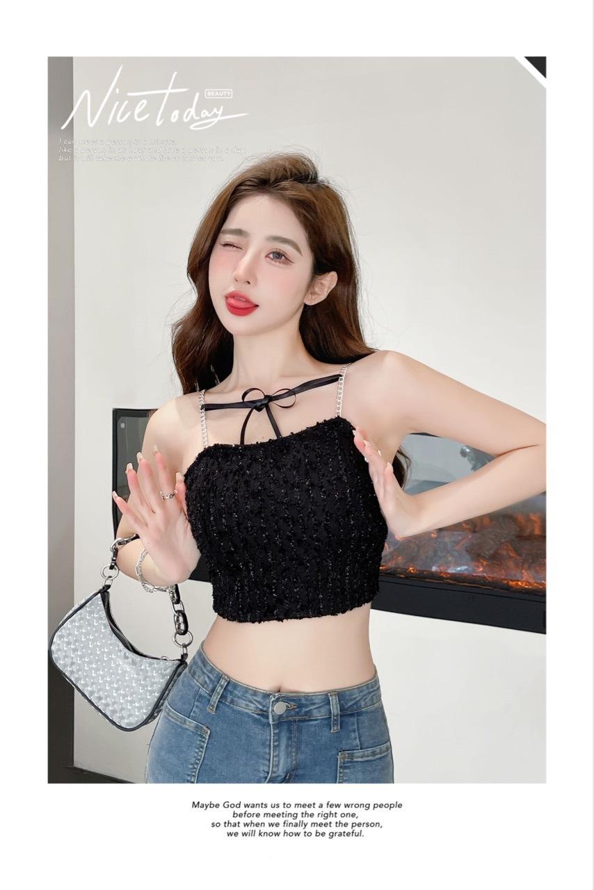 Top Camisola Sexy de Encaje con Cadena Estilo Francés para Mujer con Almohadillas en el Pecho, Se Puede Usar como Capa Interior o Exterior, Top Camisola, Estilo Bandeau