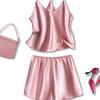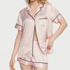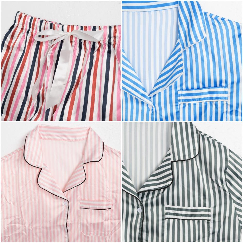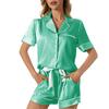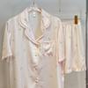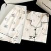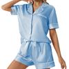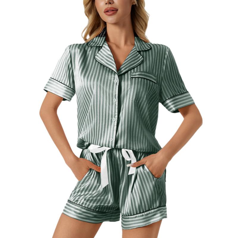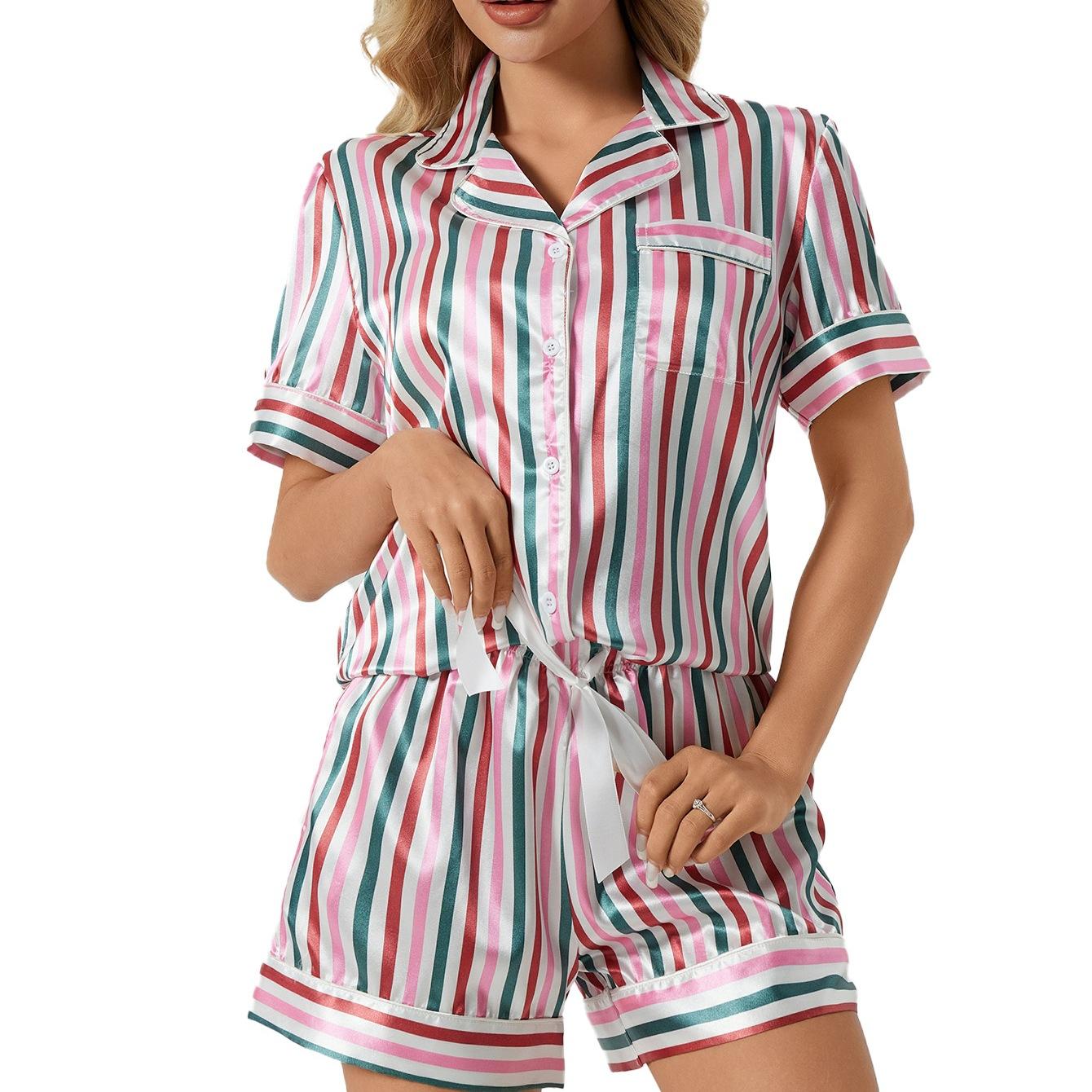 Pijamas de Verano para Mujer 2025 Nuevo Traje de Pantalones Cortos de Manga Corta de Seda Helada para Exterior Ropa para el Hogar Rayada de Seda Imitación