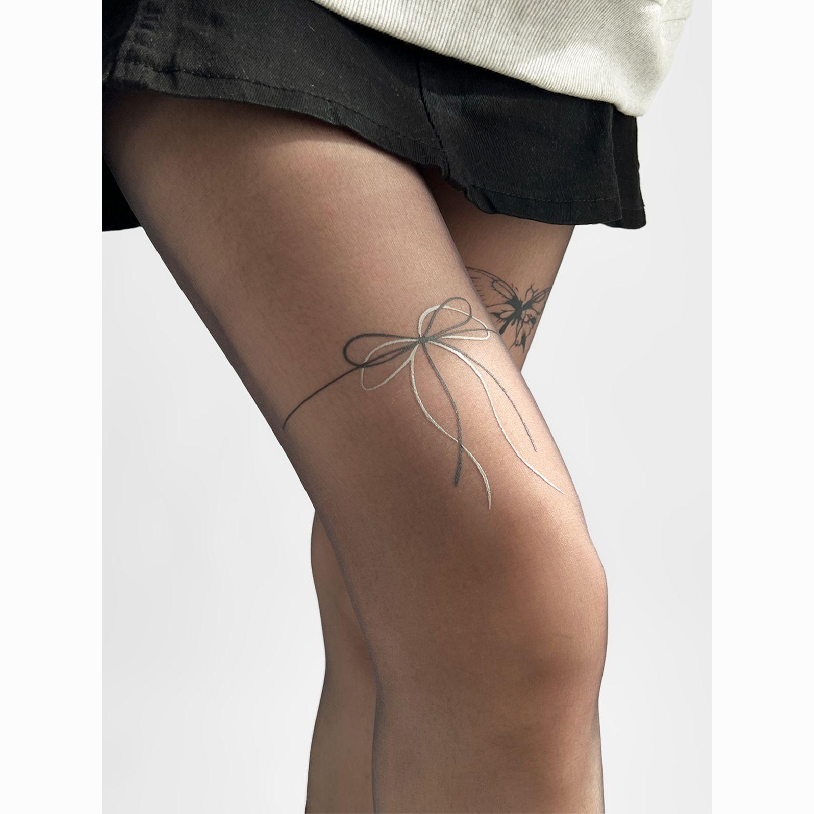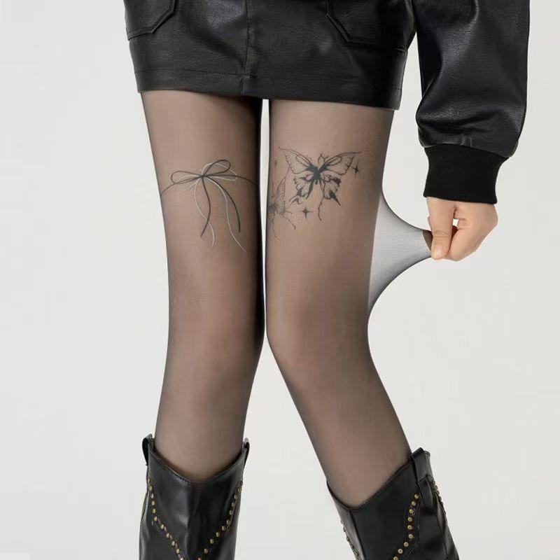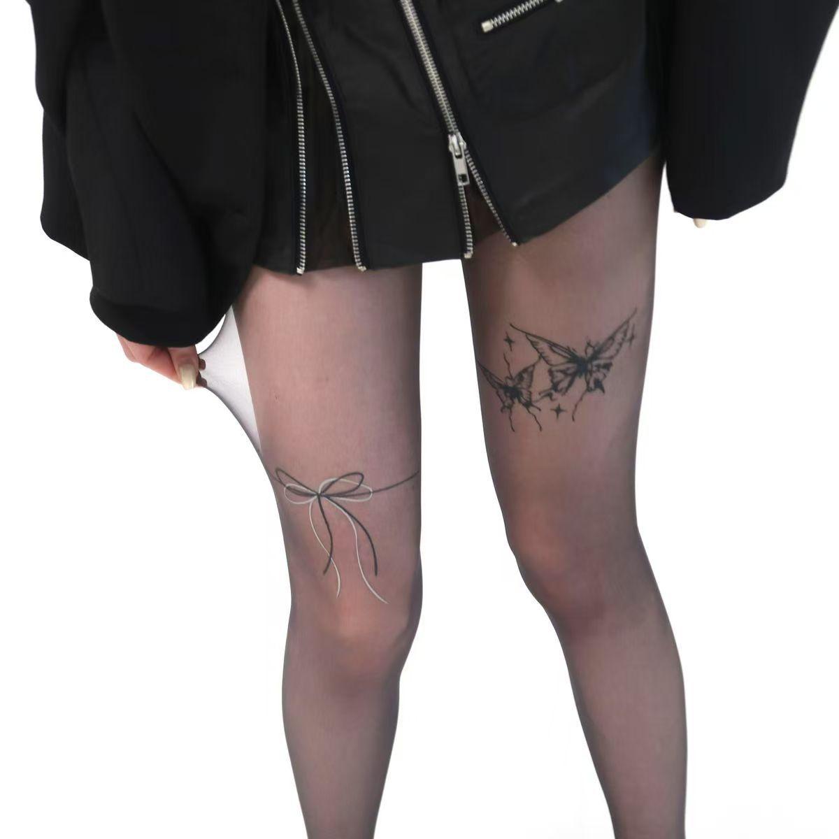 Medias de Seda Estilo Tatuaje Dulce y Picante Mariposa Pura Primavera y Otoño Medias de Seda Anti-gancho para Mujer Medias Panty de Seda Negra Mariposa Primavera