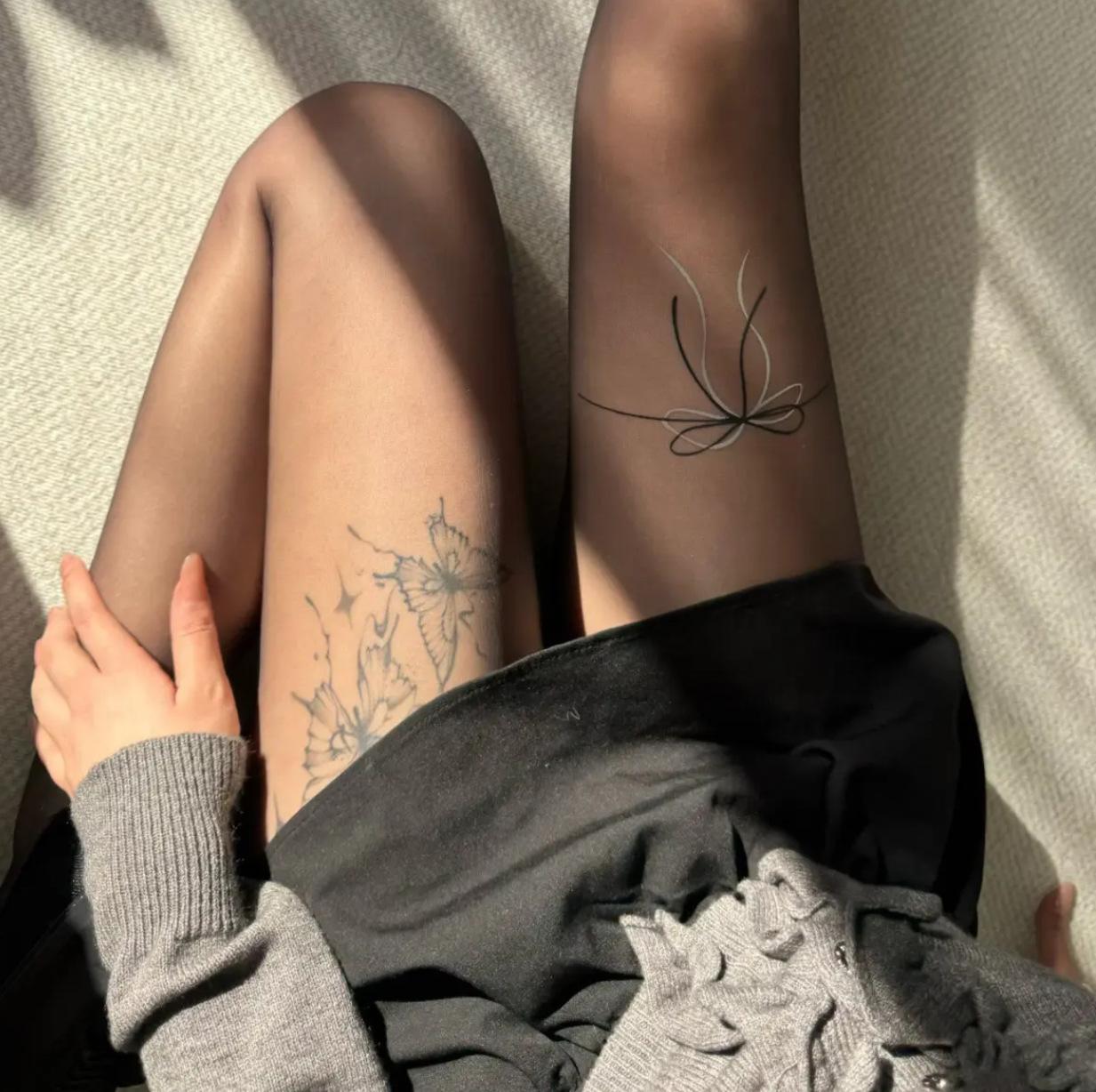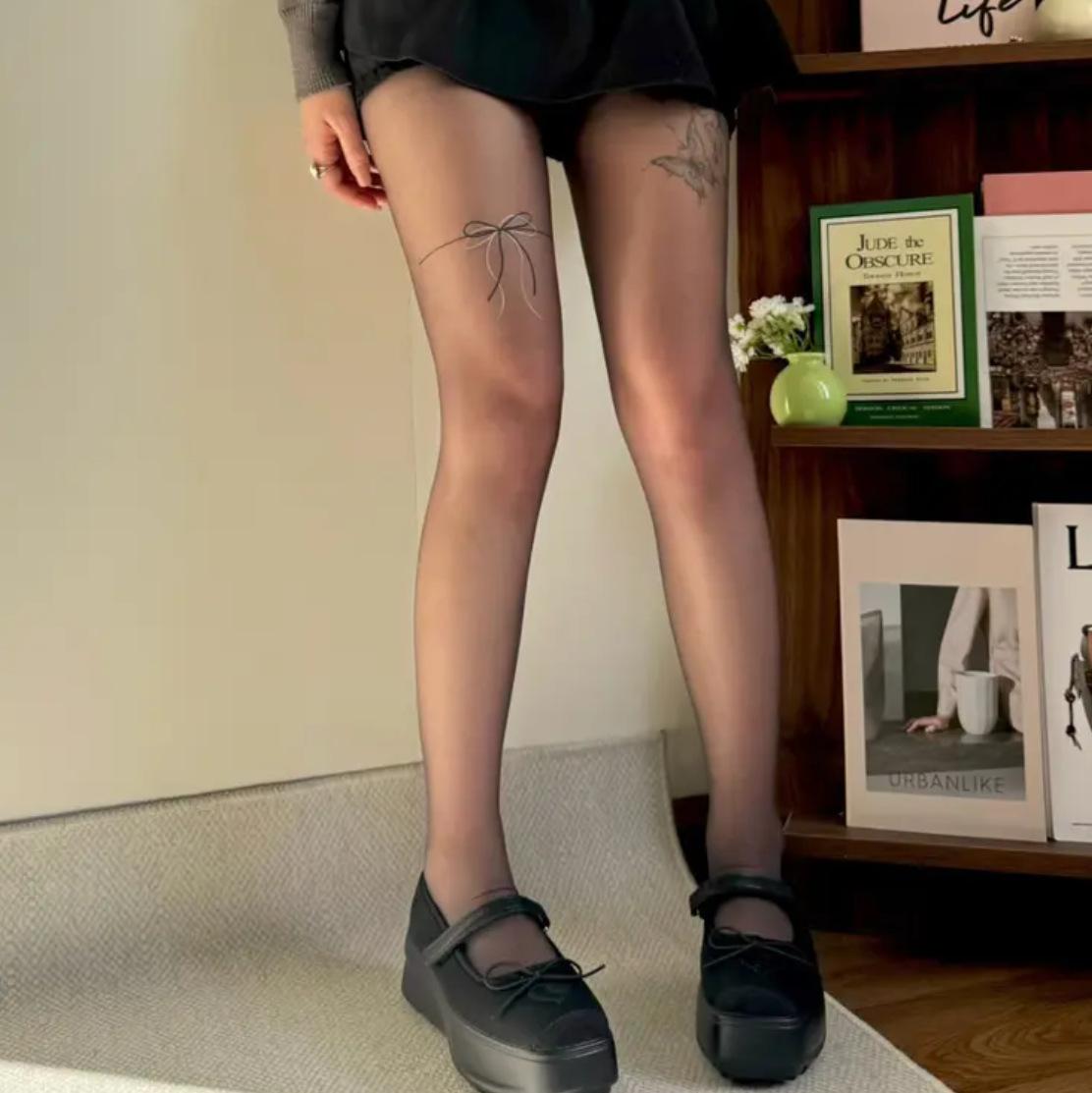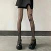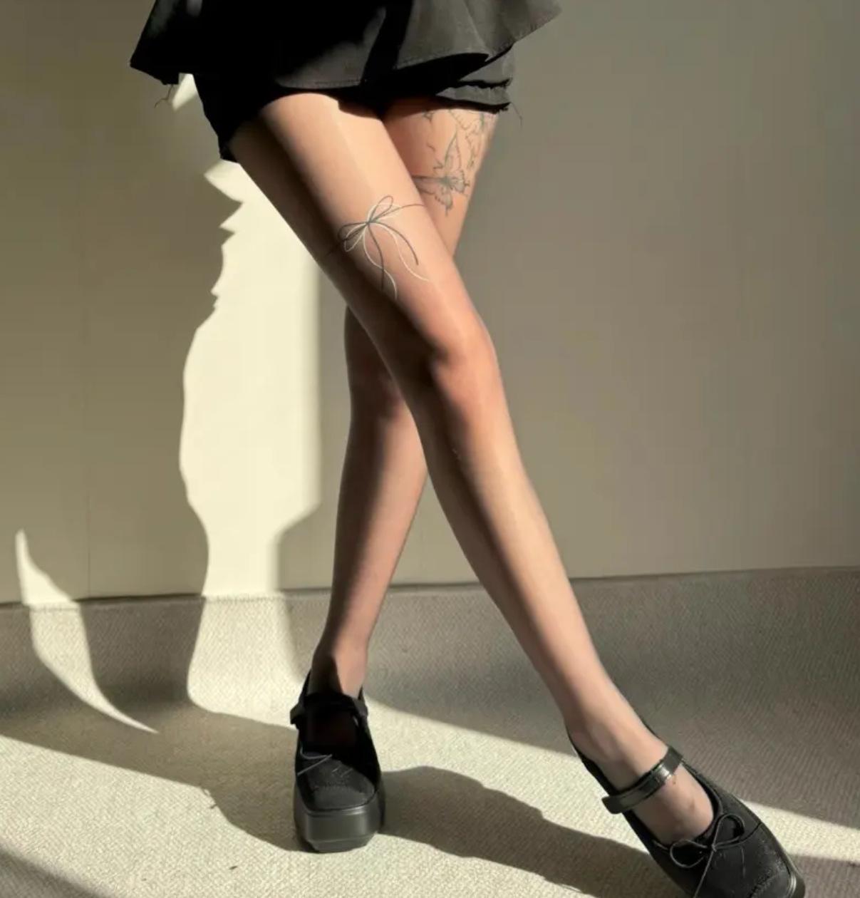 Medias de Seda Estilo Tatuaje Dulce y Picante Mariposa Pura Primavera y Otoño Medias de Seda Anti-gancho para Mujer Medias Panty de Seda Negra Mariposa Primavera