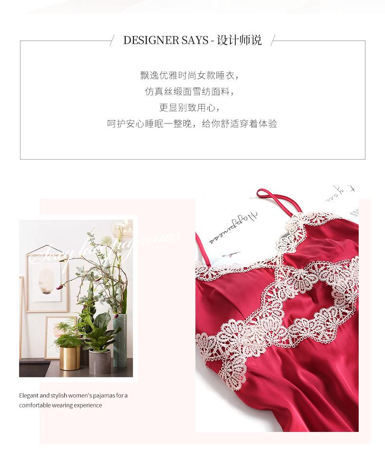 Ropa de Casa Sexy para Mujer de Primavera y Verano Conjunto de Pijama de Dos Piezas Tipo Seda Cómodo Camisón con Tirantes Ropa de Casa
