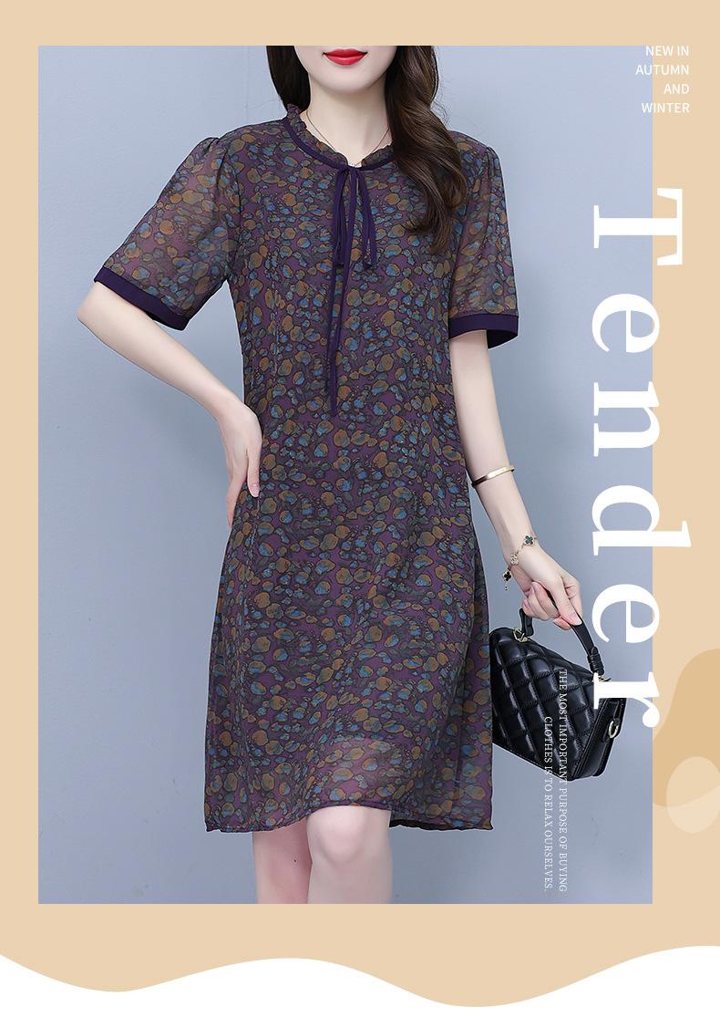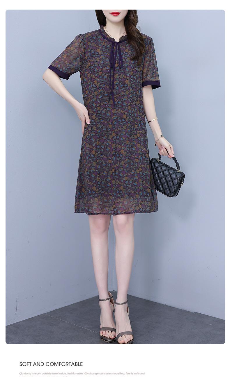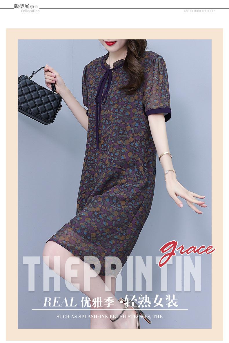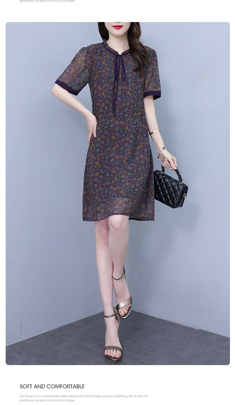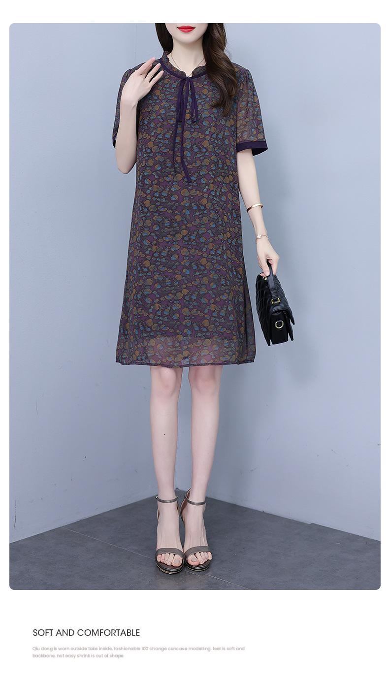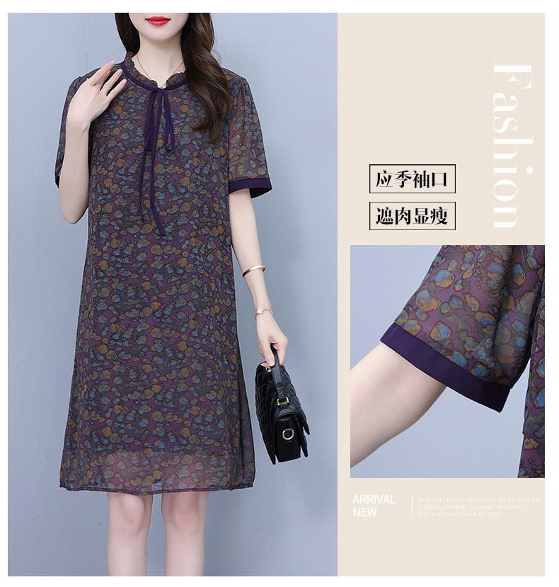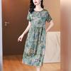 Vestido Elegante de Alta Calidad Cubriendo la Carne Madre de Mediana Edad Seda de Morera Verano Nuevo Suelto Talla Grande Vestido Floral