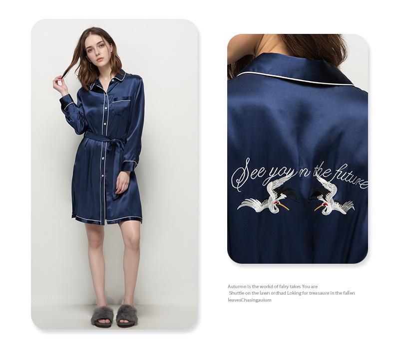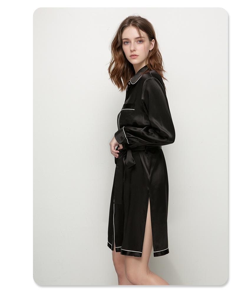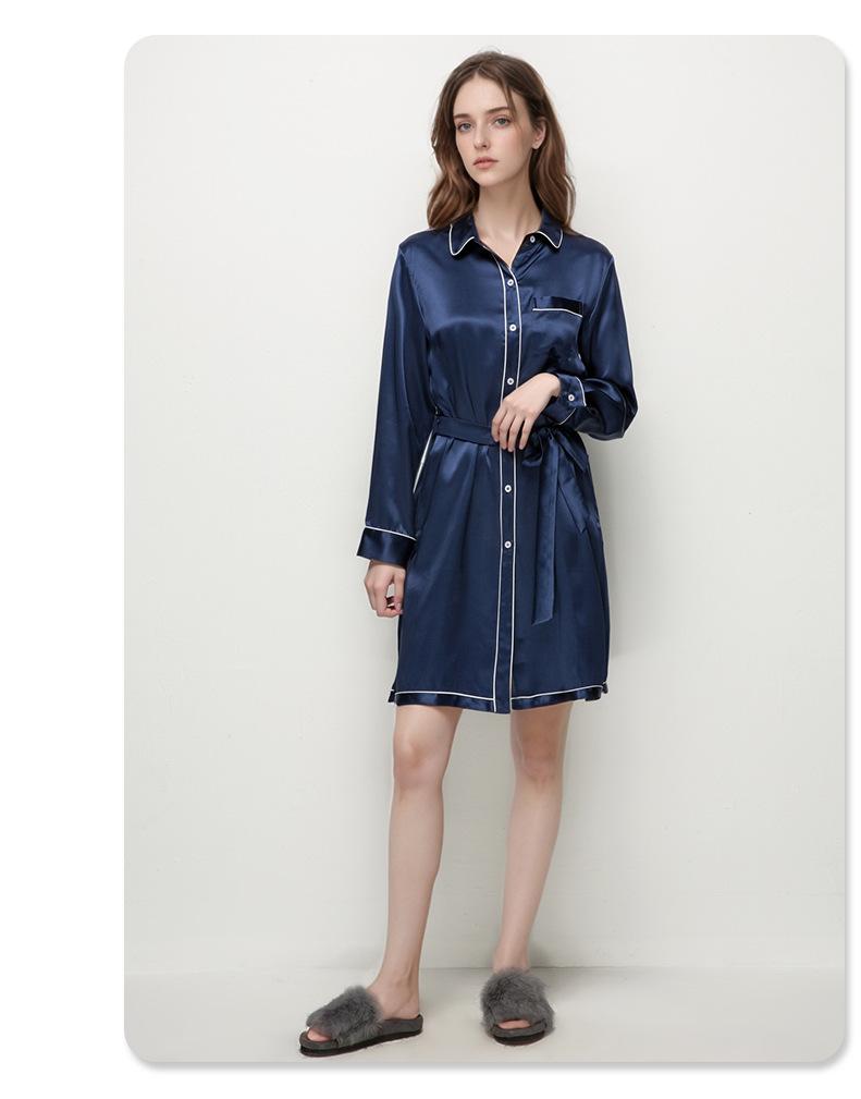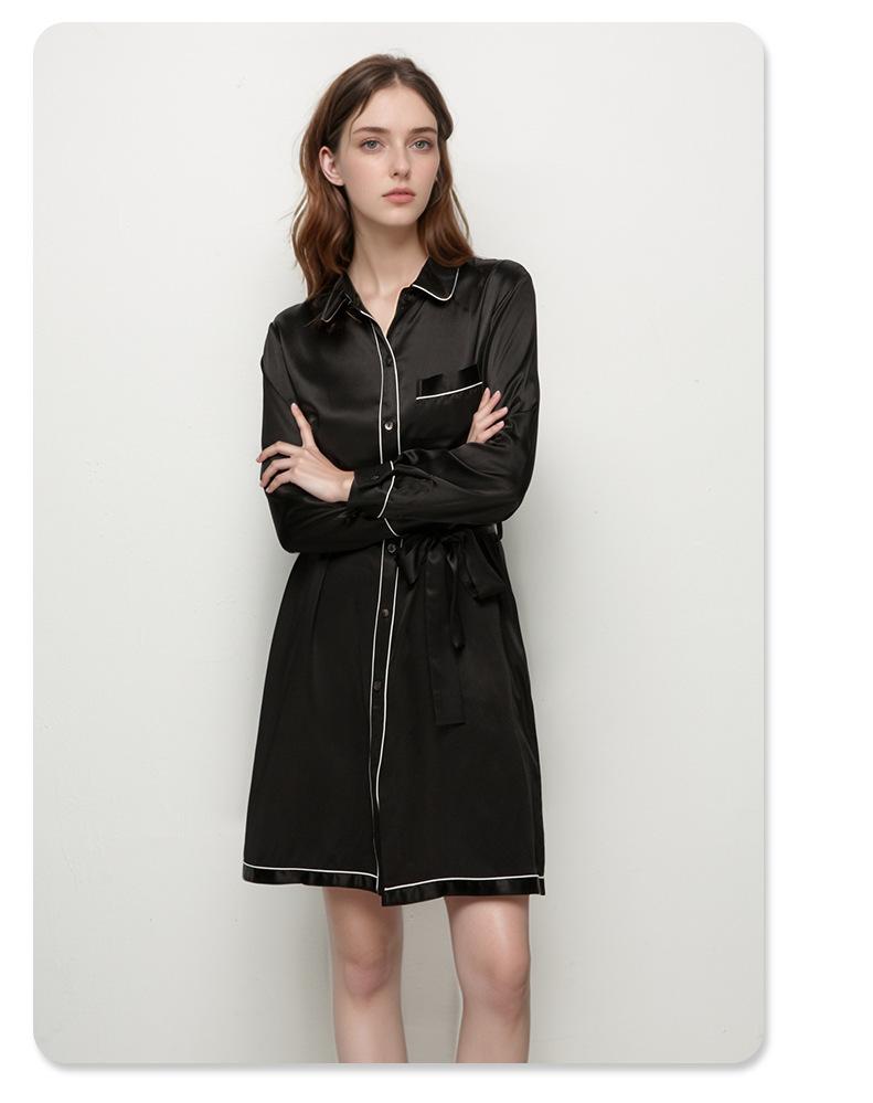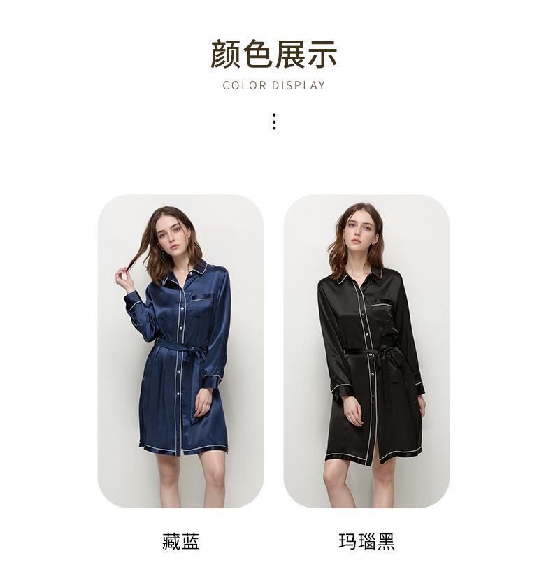 2025 Nuevo Camisón de Seda de Verano para Mujer 100% Seda de Morera Manga Larga Solapa Ropa para el Hogar Cárdigan Camisa Vestido