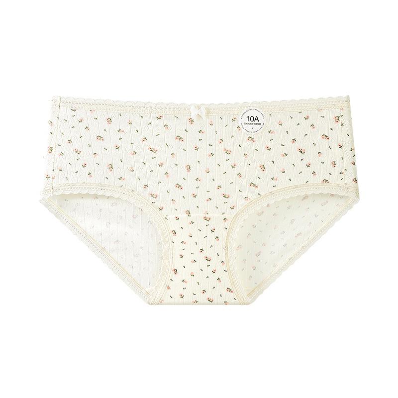 Ropa Interior de Algodón Puro con Estampado Floral Fresco para Mujer 10A Antibacteriana Entrepierna Extendida Transpirable y Cómoda Elástica Cubridora de Cadera Ropa Interior para Niña