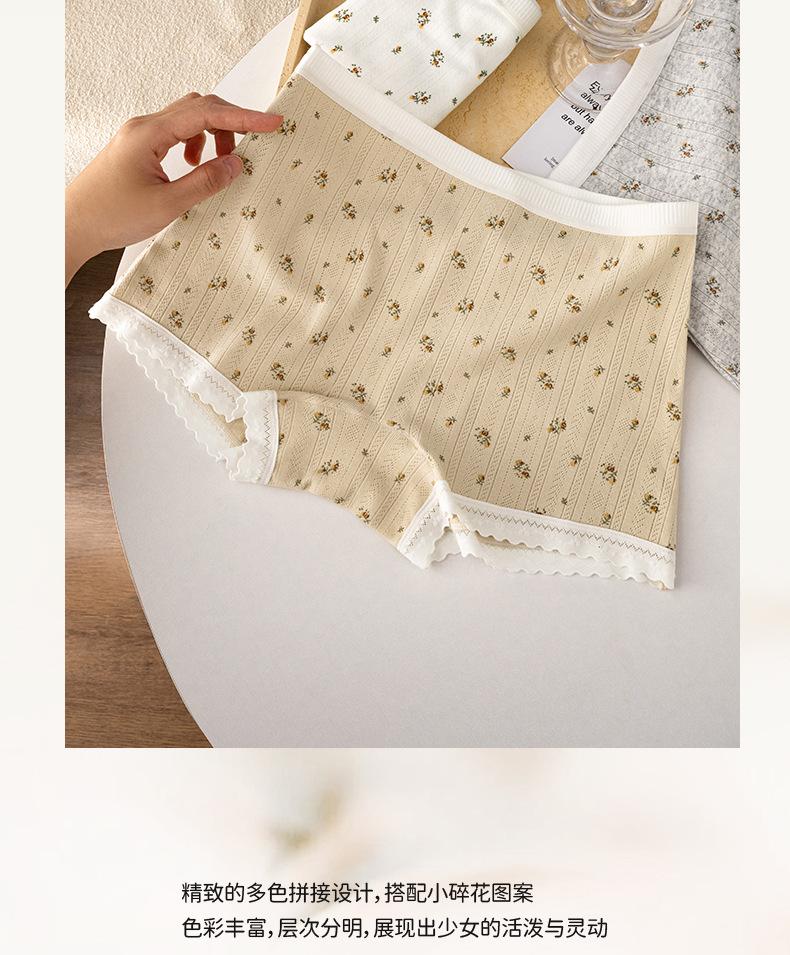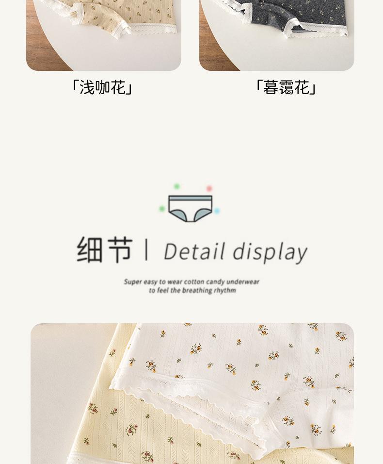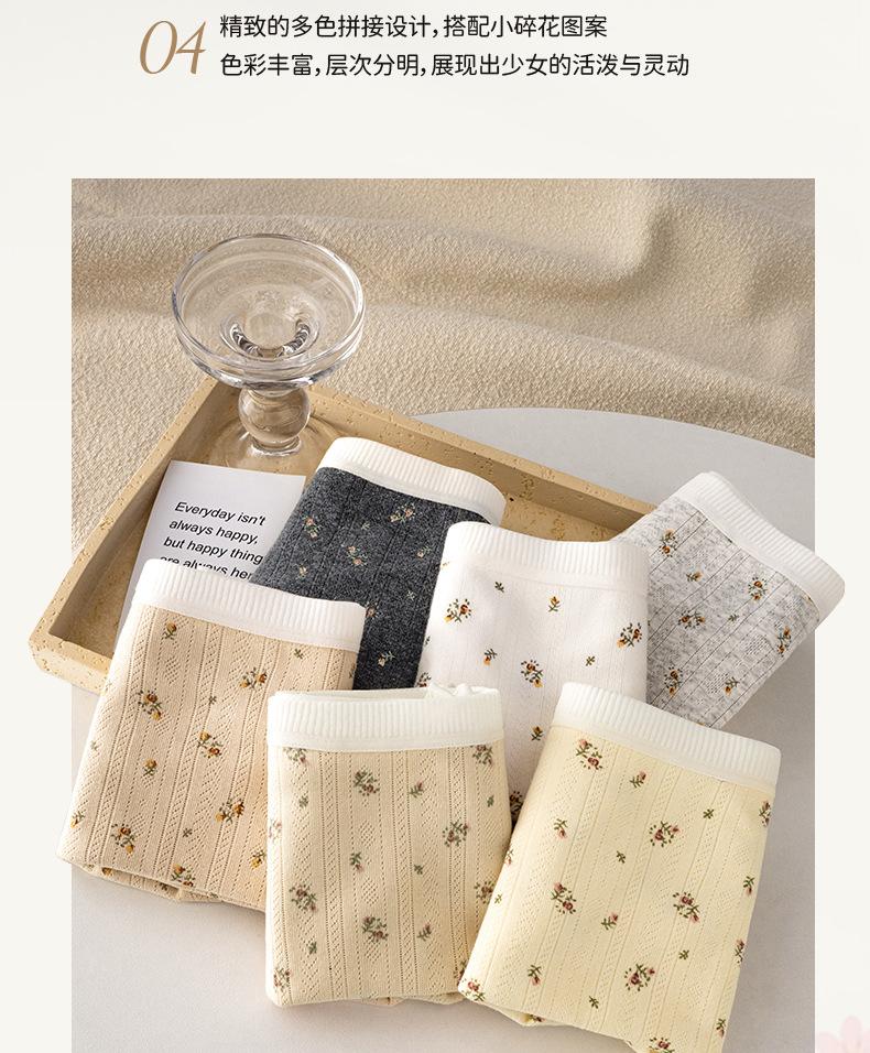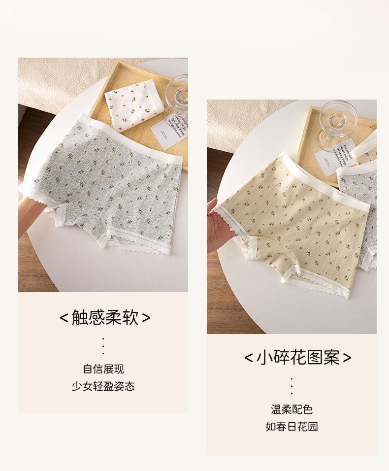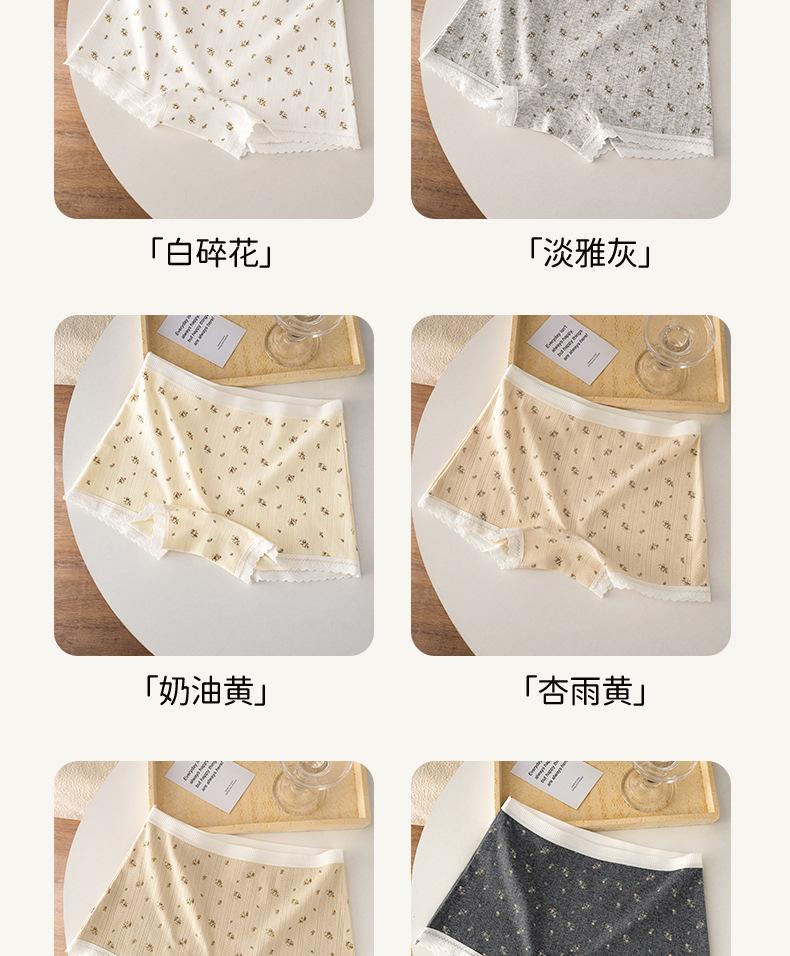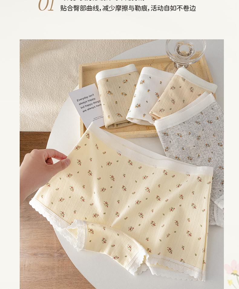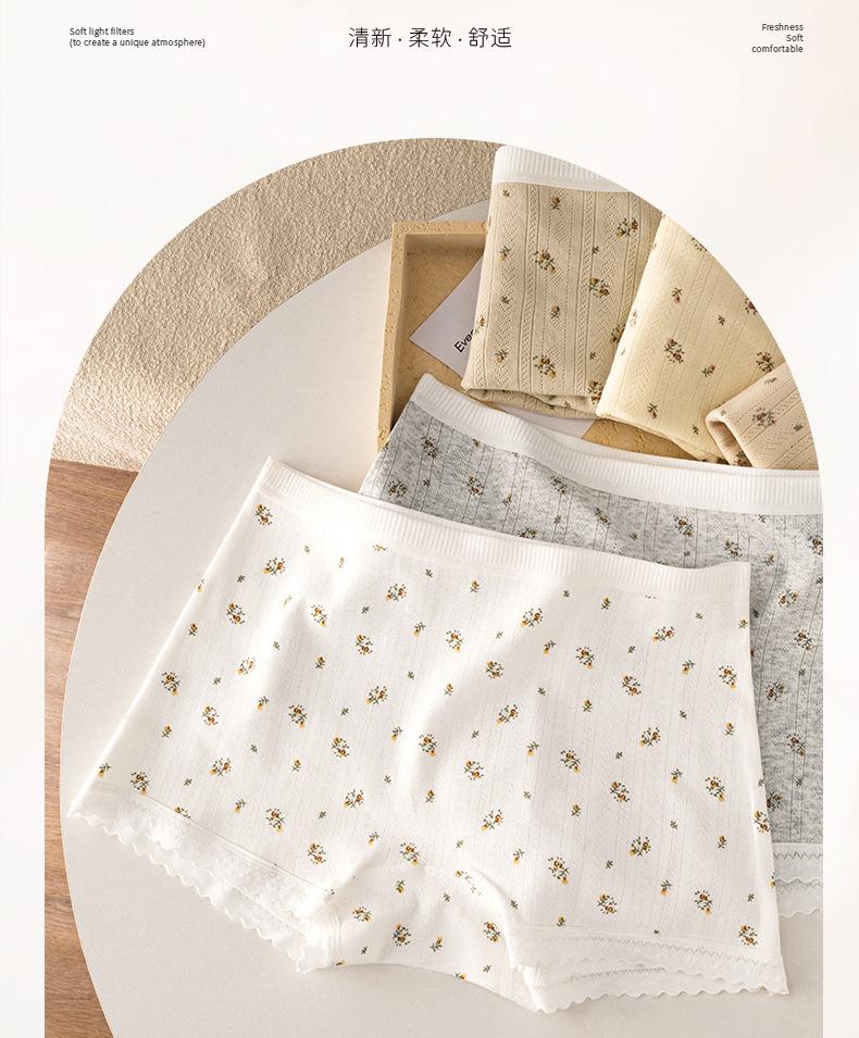 Ropa Interior de Verano de Algodón Puro con Entrepierna Dos en Uno Cómoda Ropa Interior de Algodón Boxer Briefs Femeninos Florales de Bosque para Mujer