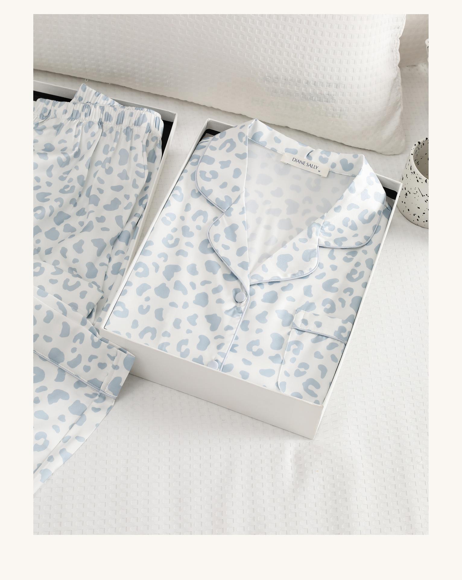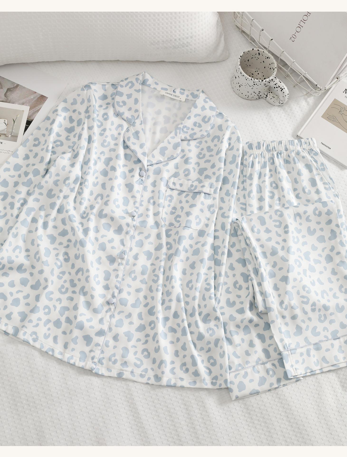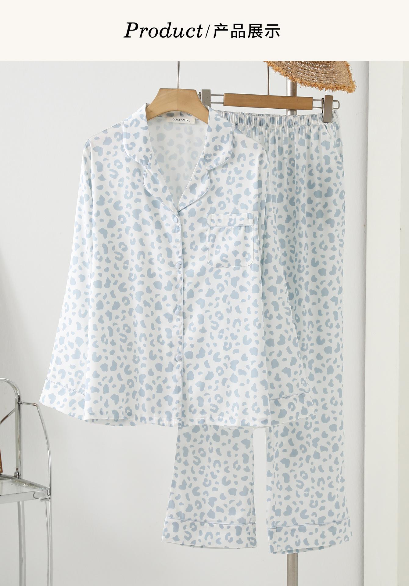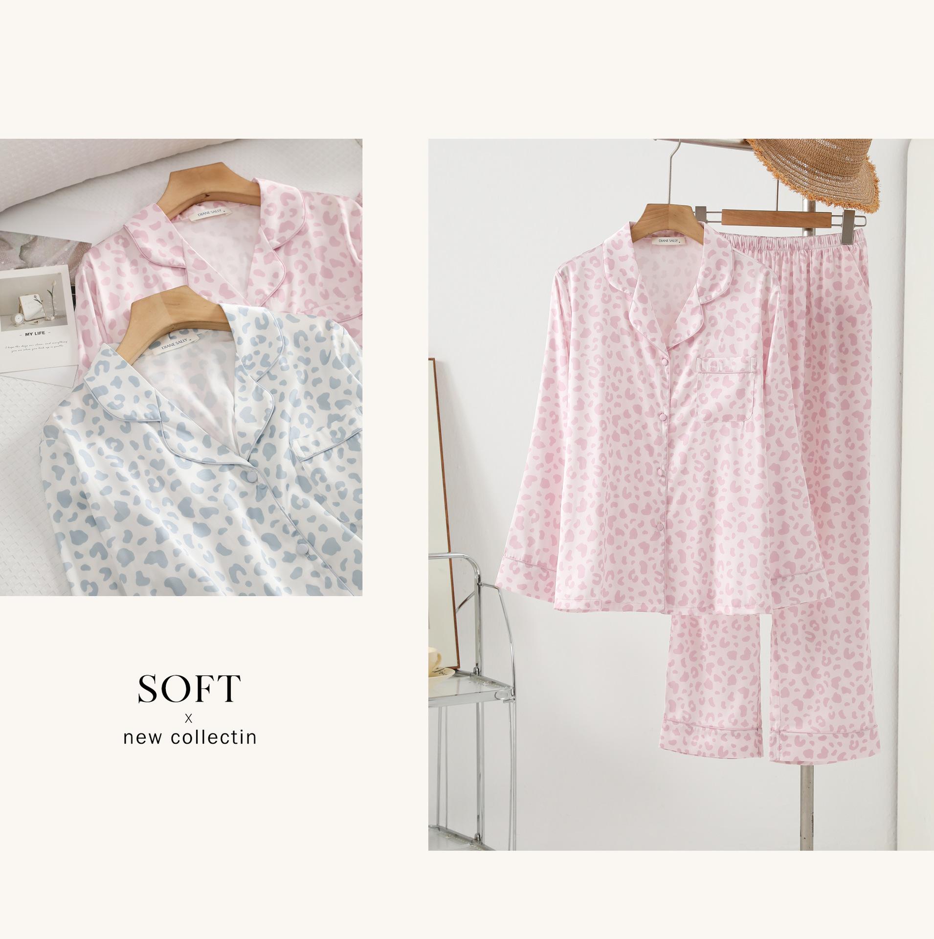 [Personalización de Pijama] Pijama de Estampado de Leopardo Rosa para Mujer de Seda Helada Fina de Manga Larga de Dos Piezas Tipo Seda Traje de Ropa para el Hogar