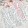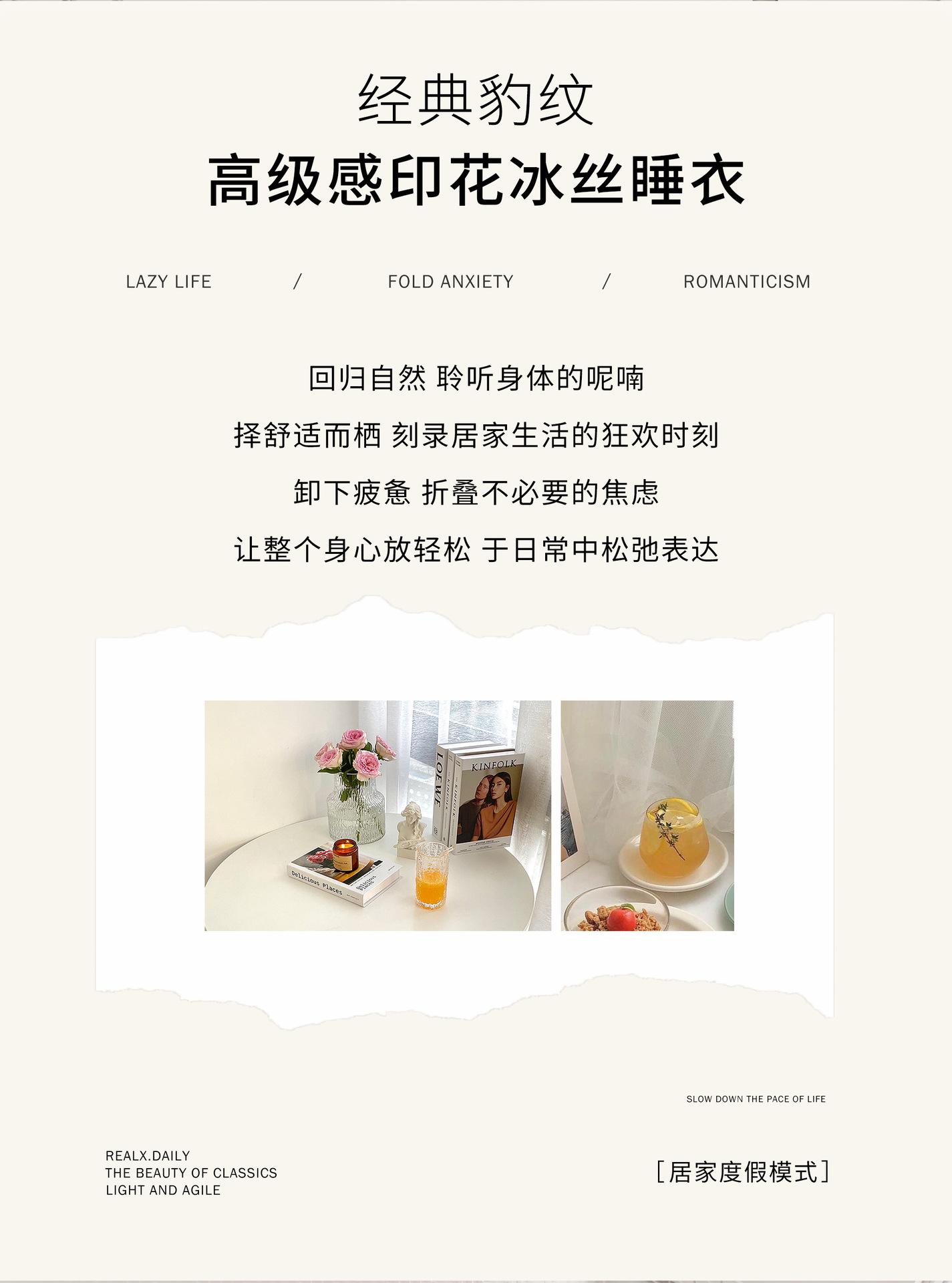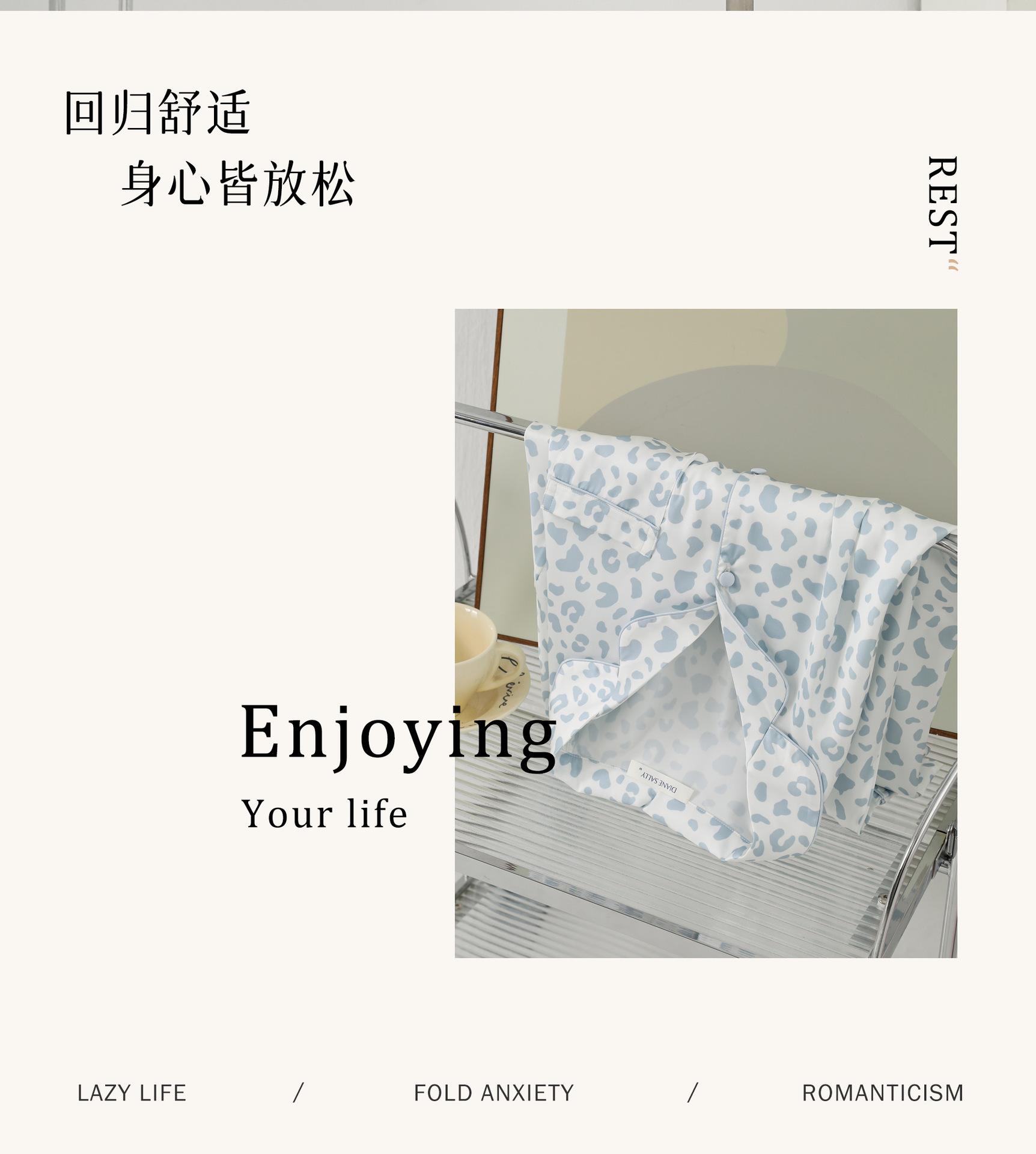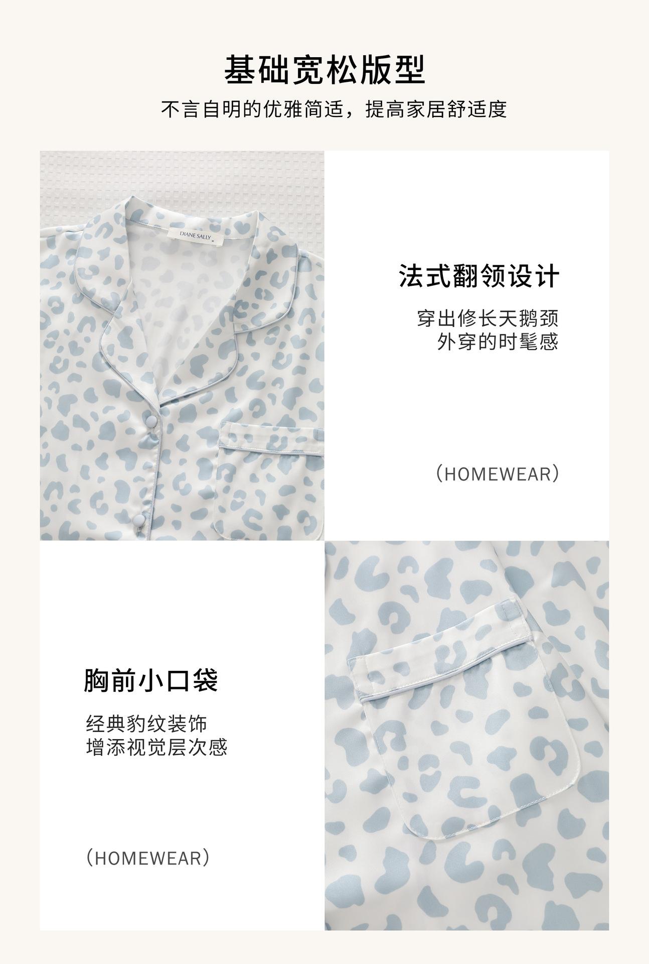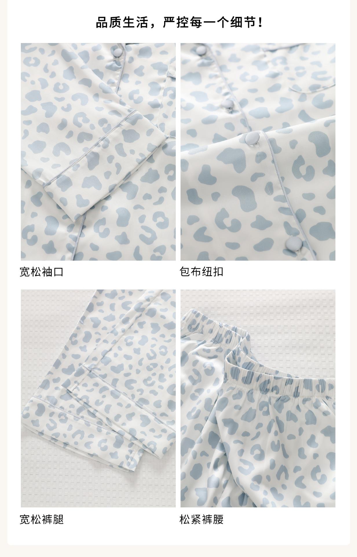 [Personalización de Pijama] Pijama de Estampado de Leopardo Rosa para Mujer de Seda Helada Fina de Manga Larga de Dos Piezas Tipo Seda Traje de Ropa para el Hogar