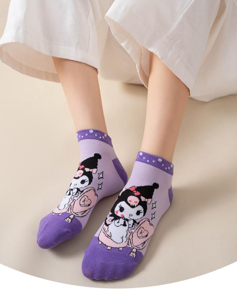 Calcetines de dibujos animados japoneses para mujer calcetines morados lindos coolomi Calcetines de barco para mujer calcetines de algodón transpirables cómodos calcetines para niña