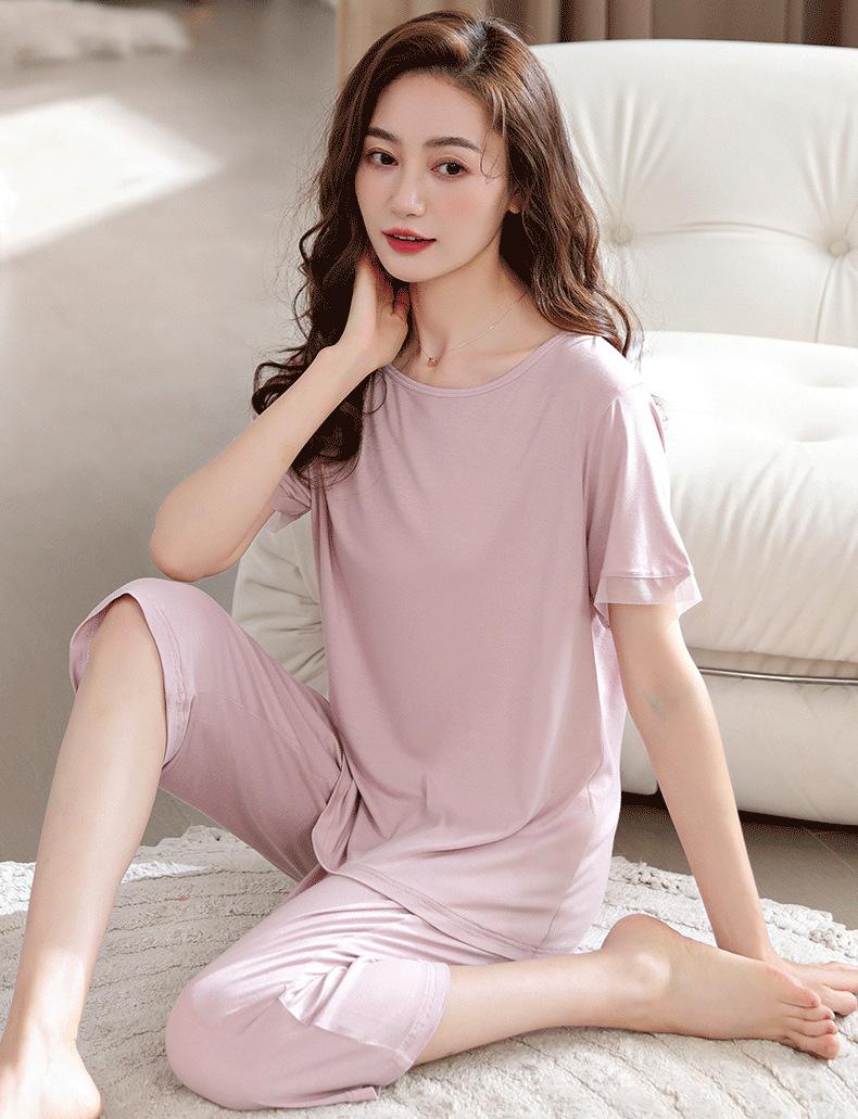 Pijamas Frescos para Mujer Verano Modal Algodón Seda Manga Corta Pantalones Cortos Ropa para el Hogar Mujer Verano Traje Delgado de Seda de Hielo