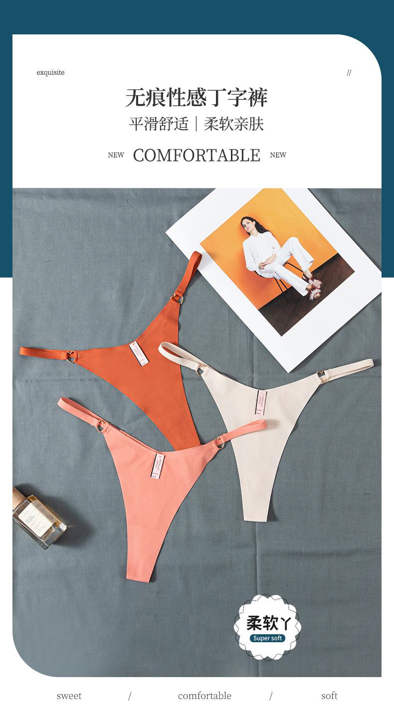 Tanga Sexy Sin Costuras Nude de Seda de Hielo de Cintura Baja Europea y Americana Sexy Caliente en Forma de T Deportes Yoga Calzoncillos Invisibles